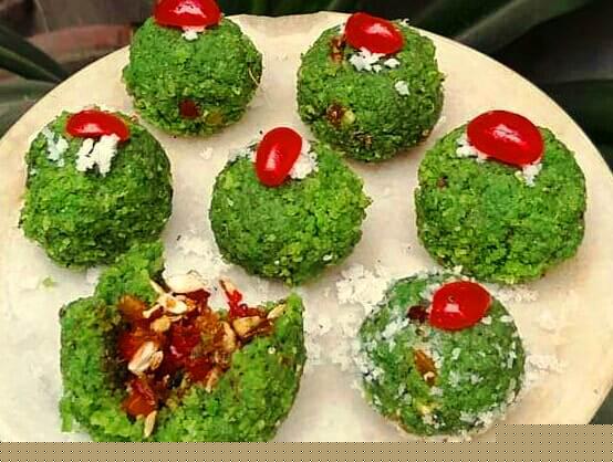 In a kneading bowl mix all purpose flour,spinach paste,carom seeds,onion seeds salt and clarified butter.