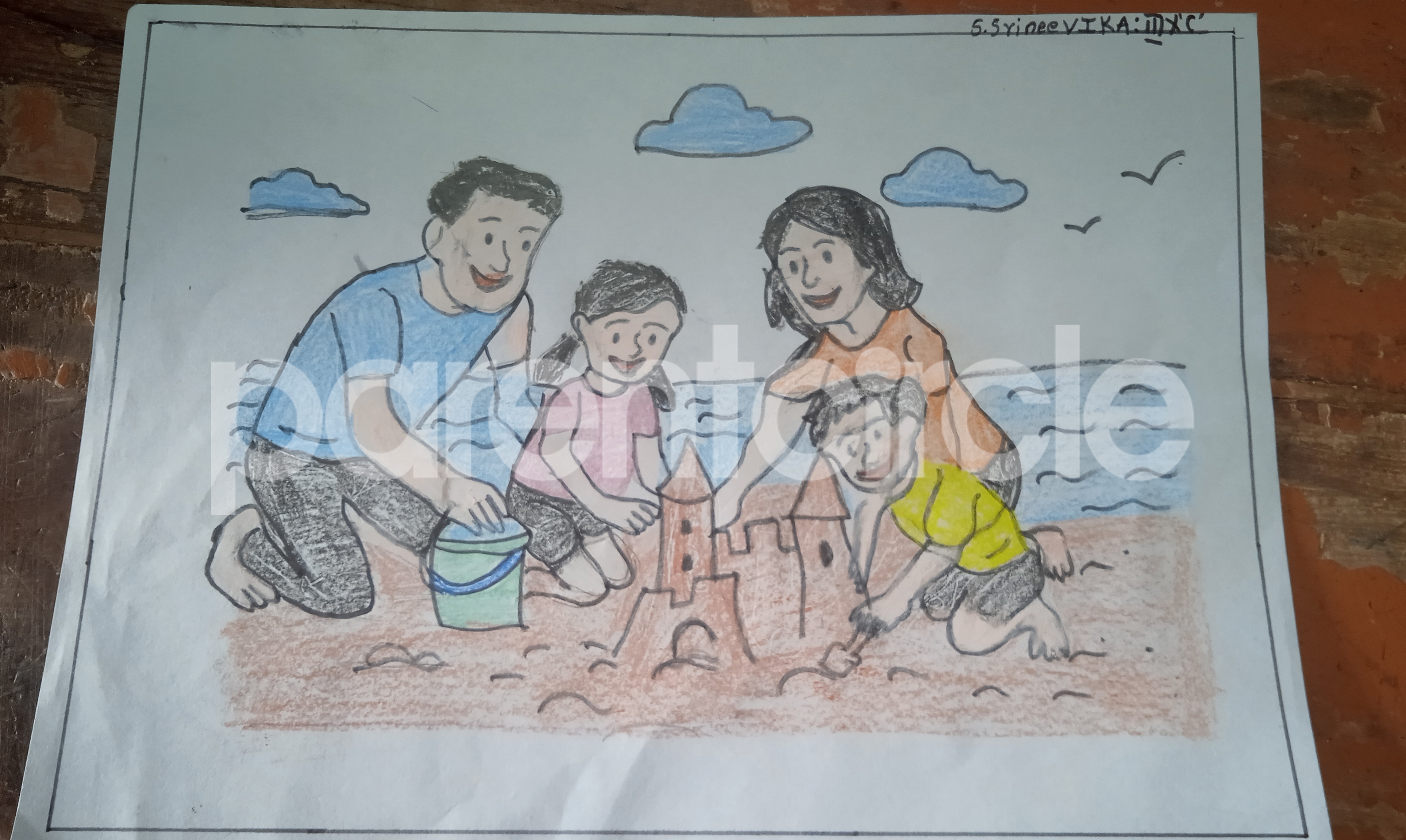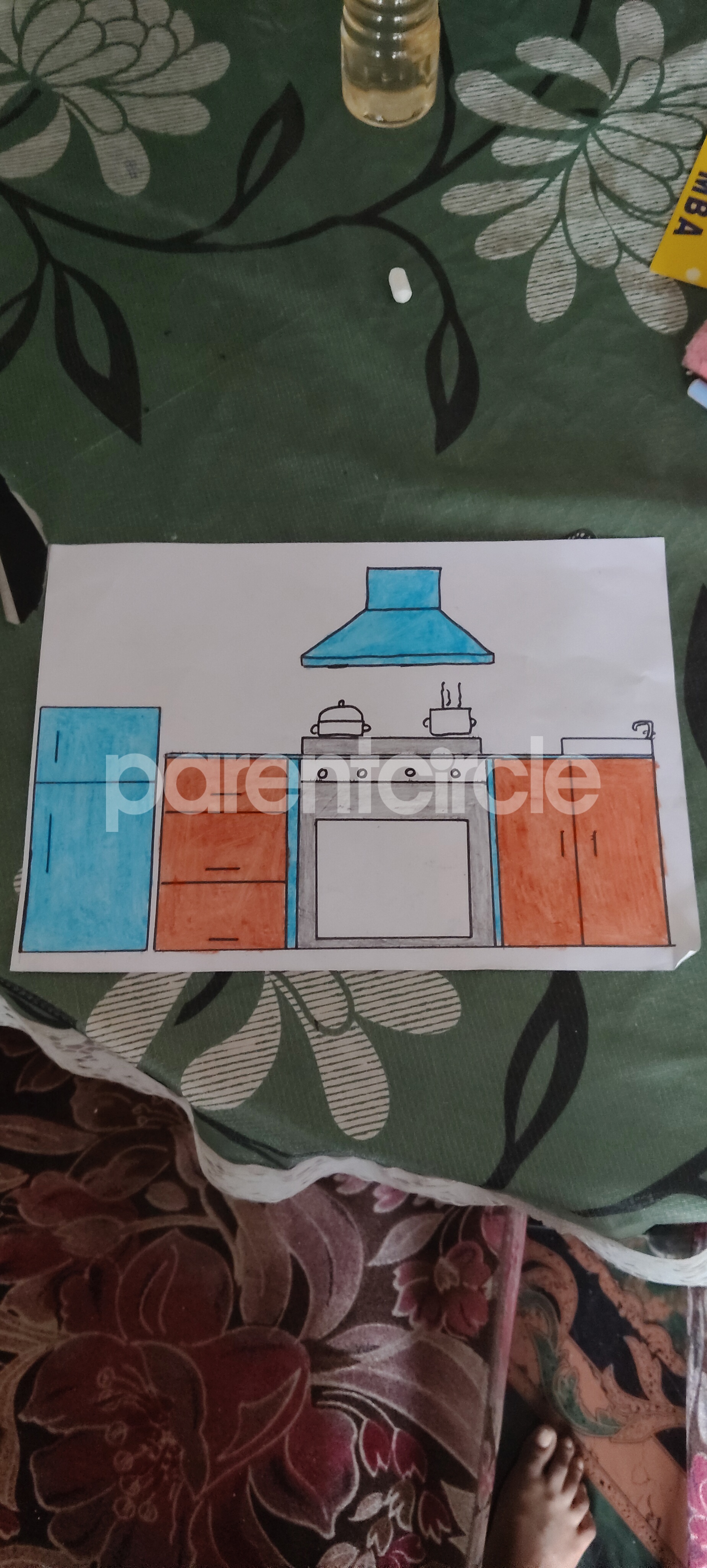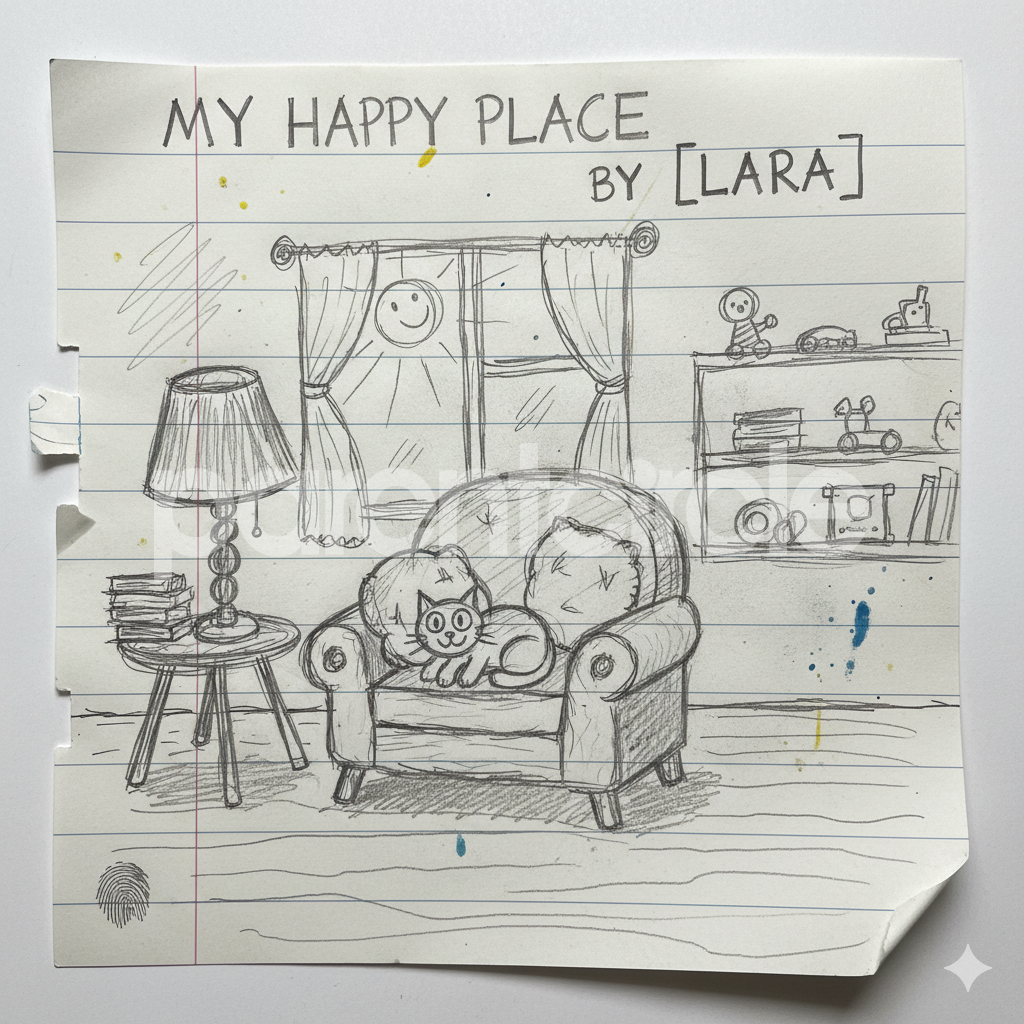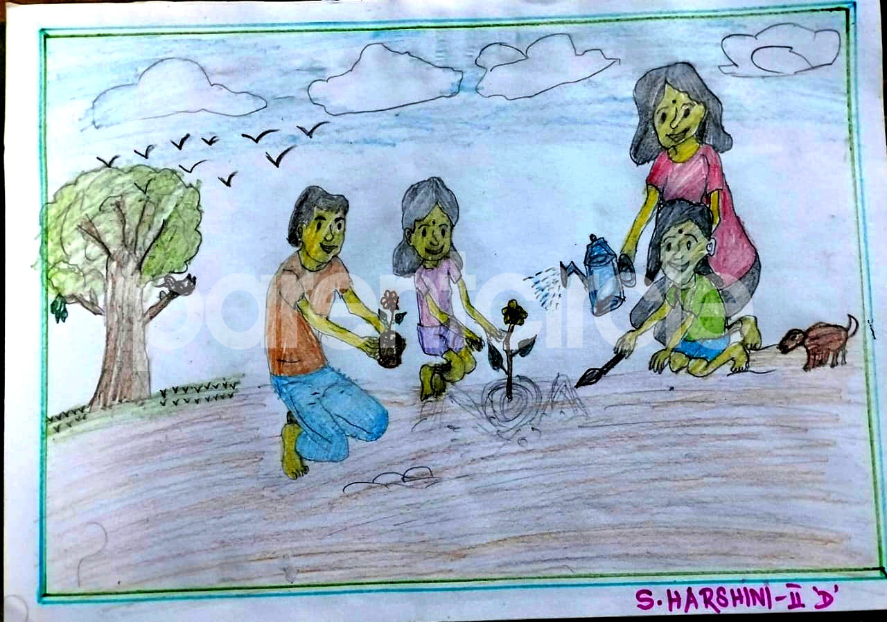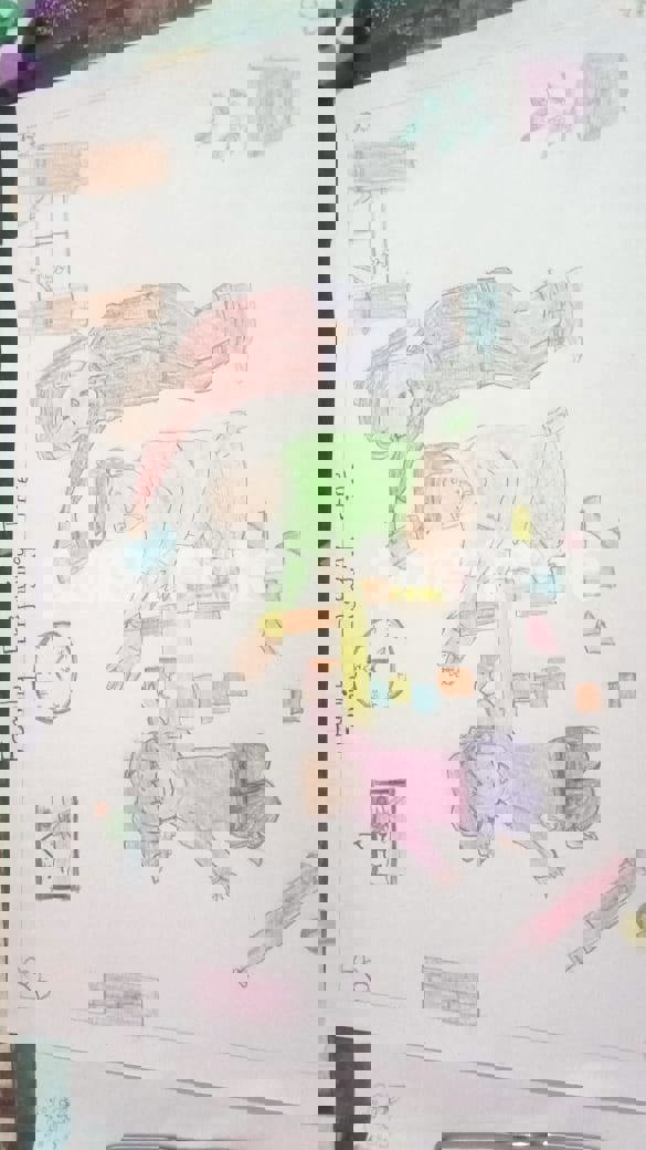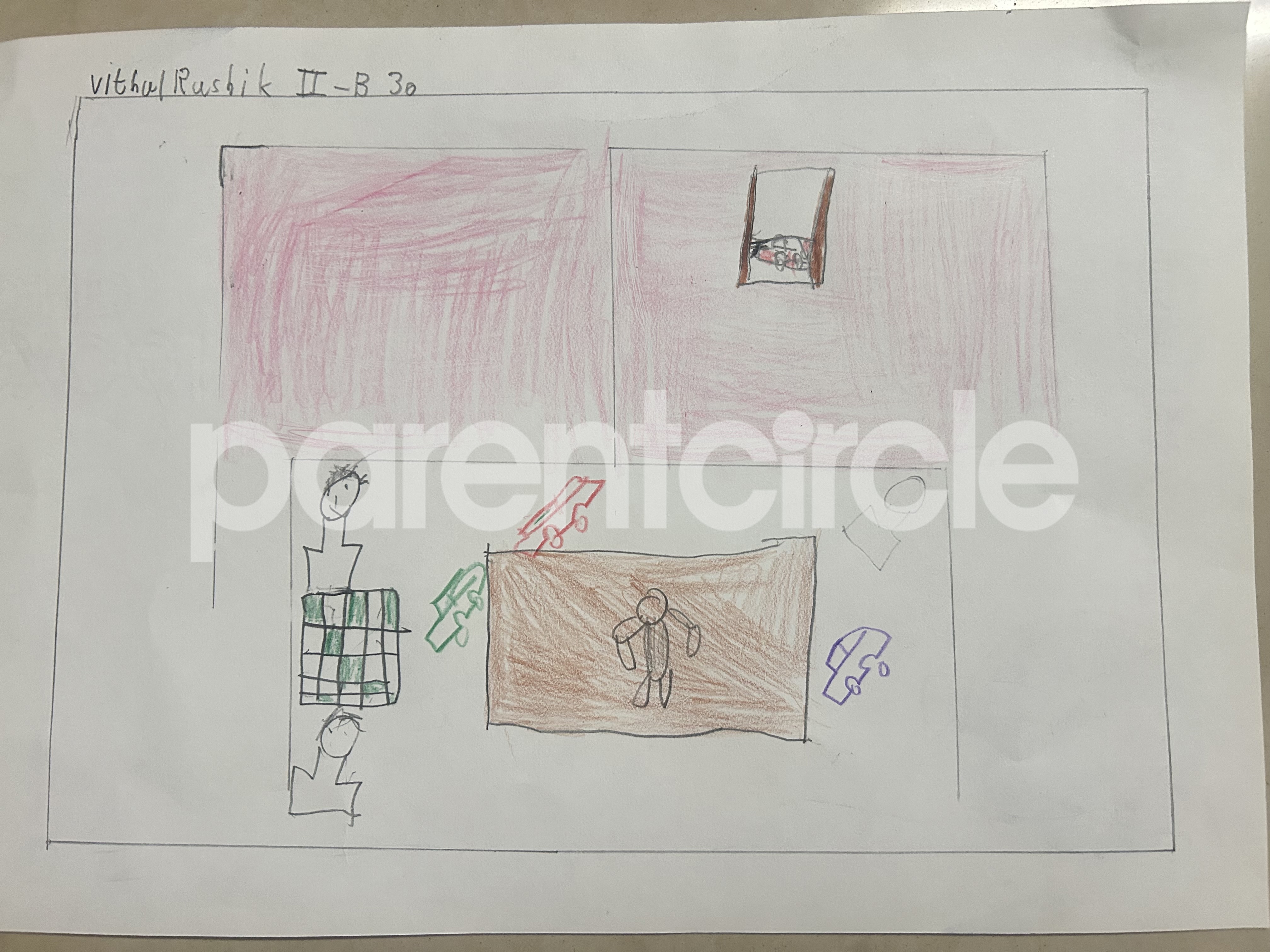 Diya has more than one favourite corner at home. The above drawing shows Study table along with her ART and CRAFT hanging, watching TV by sating on the Couch and finally her small garden in the balcony