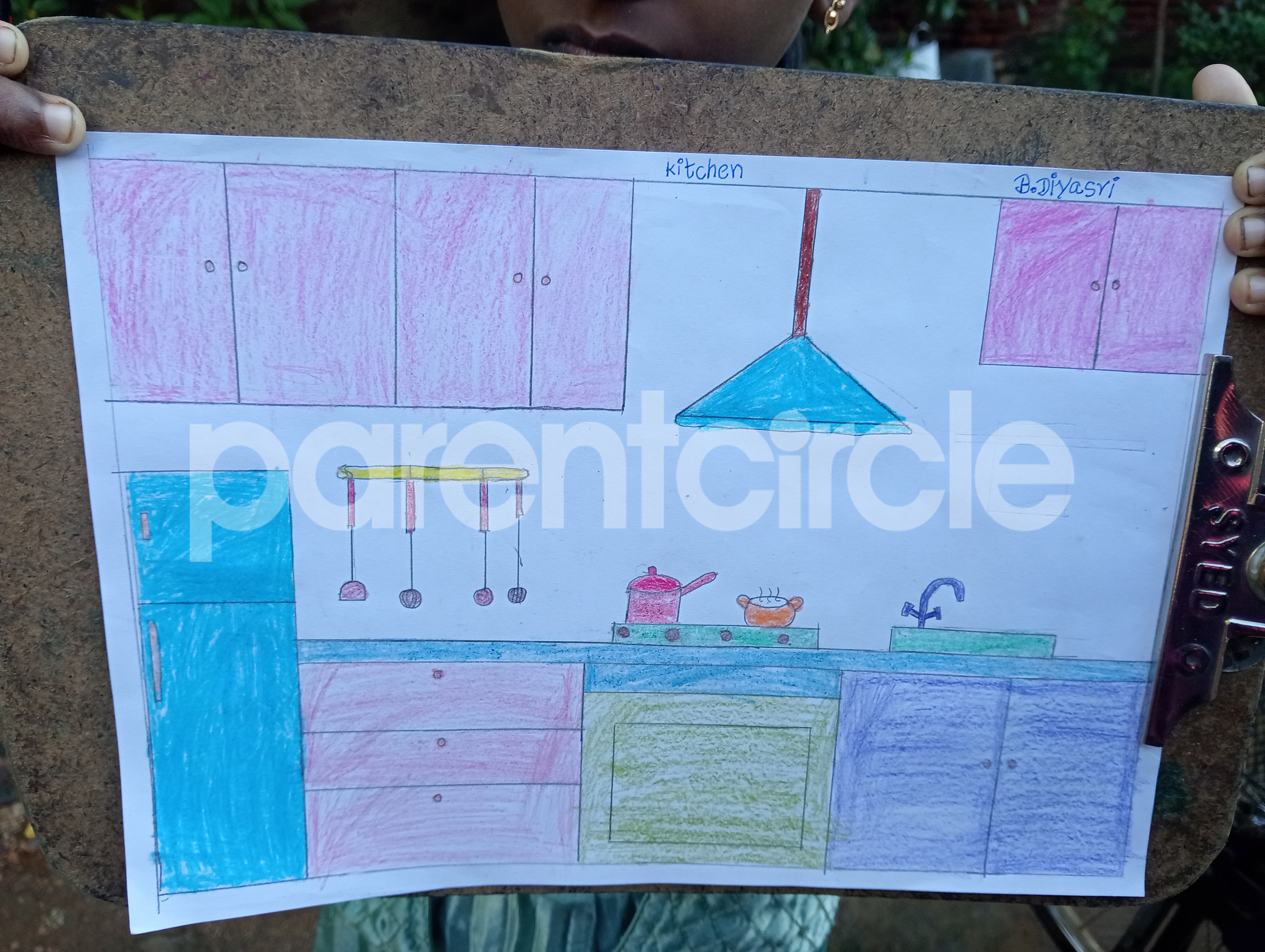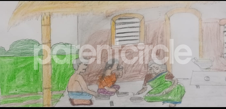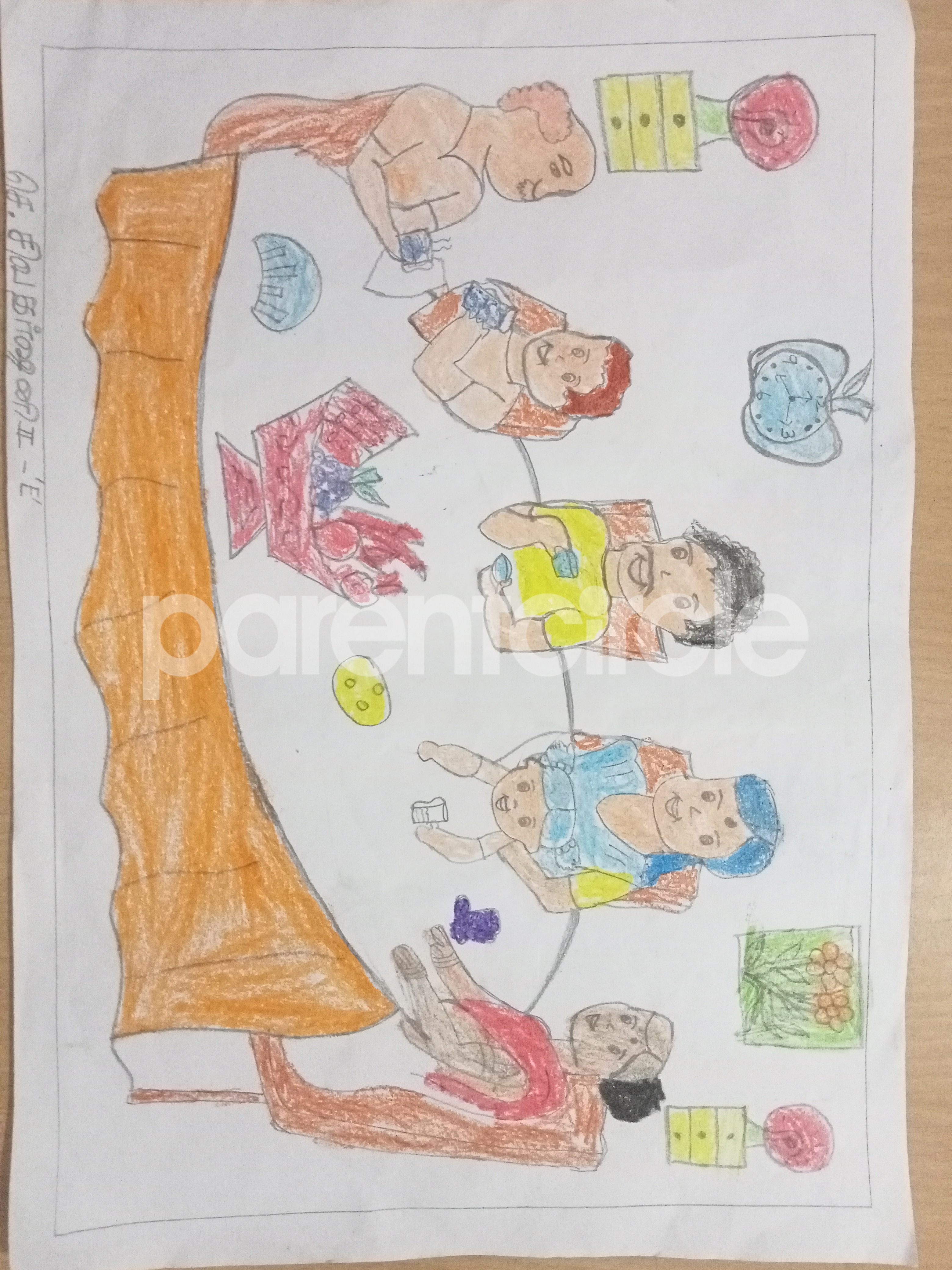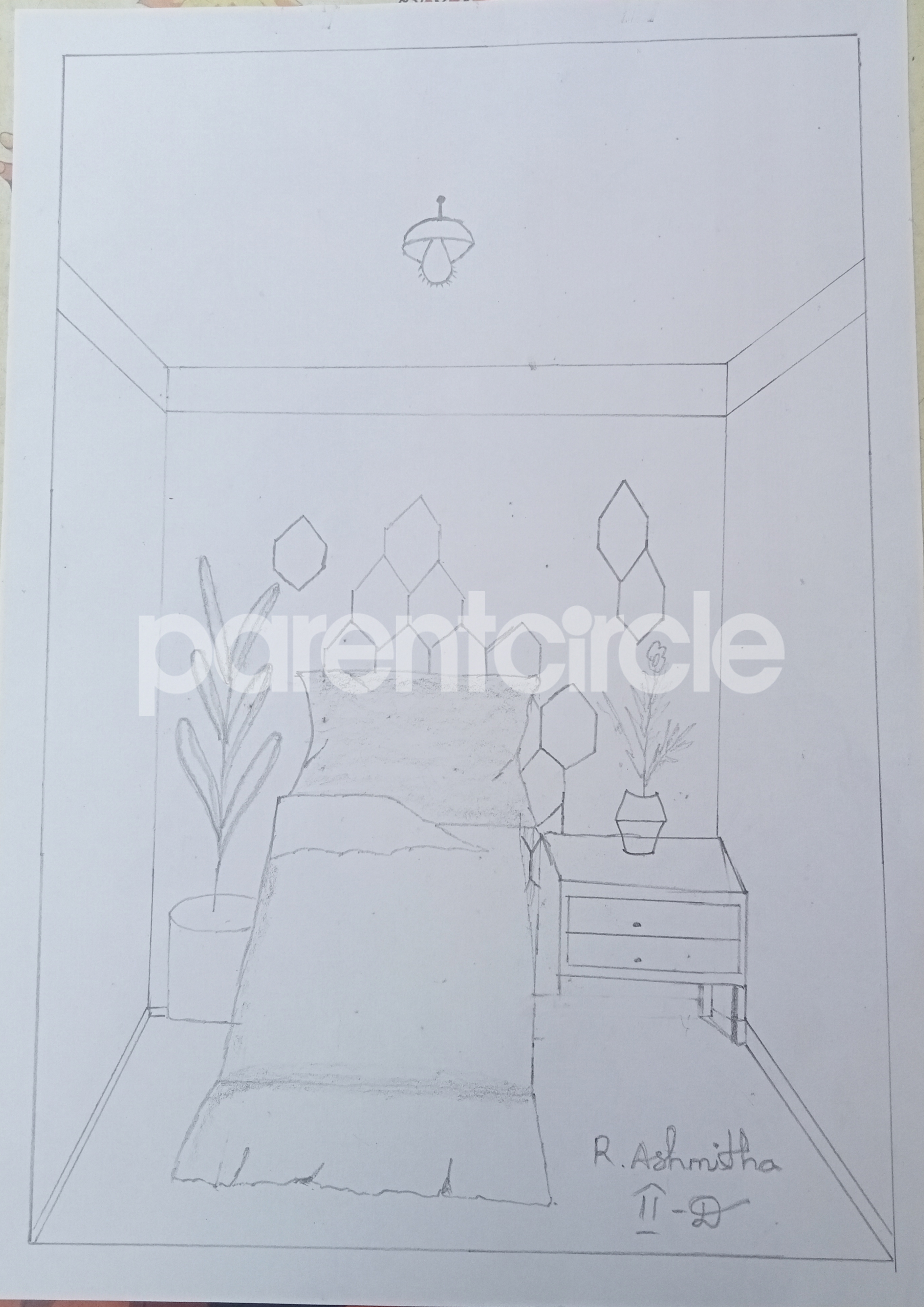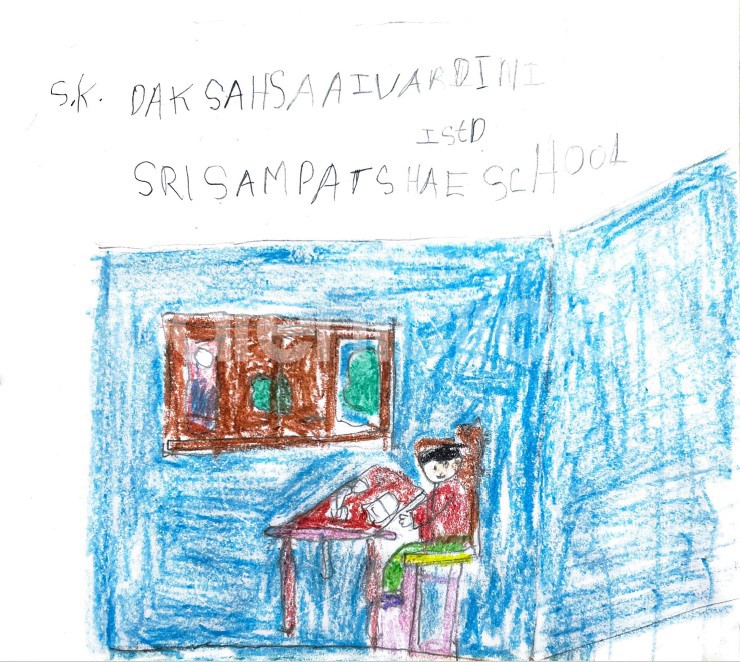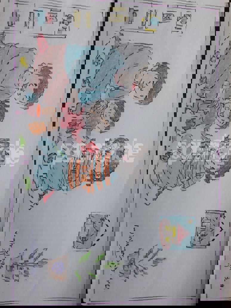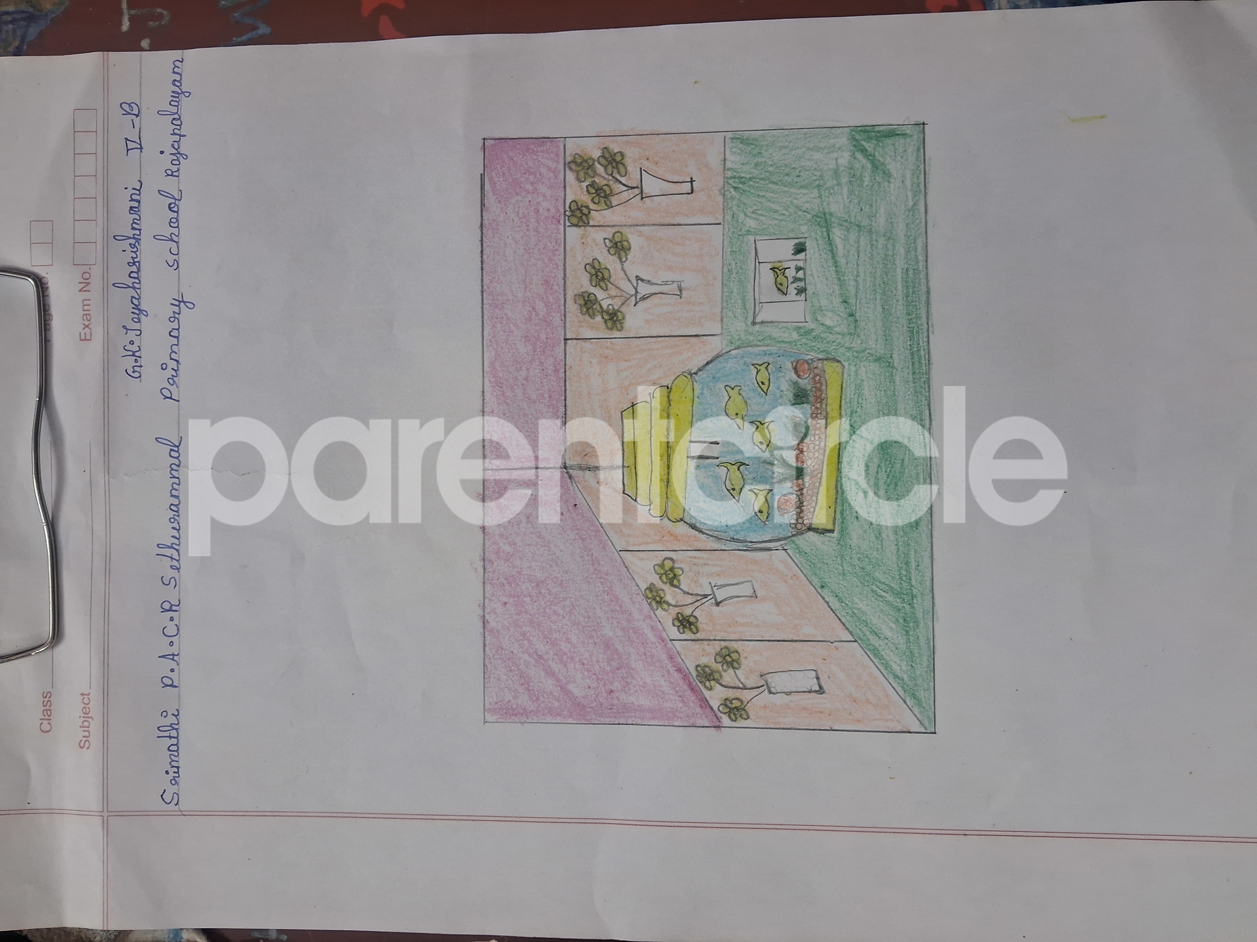 Diya has more than one favourite corner at home. The above drawing shows Study table along with her ART and CRAFT hanging, watching TV by sating on the Couch and finally her small garden in the balcony