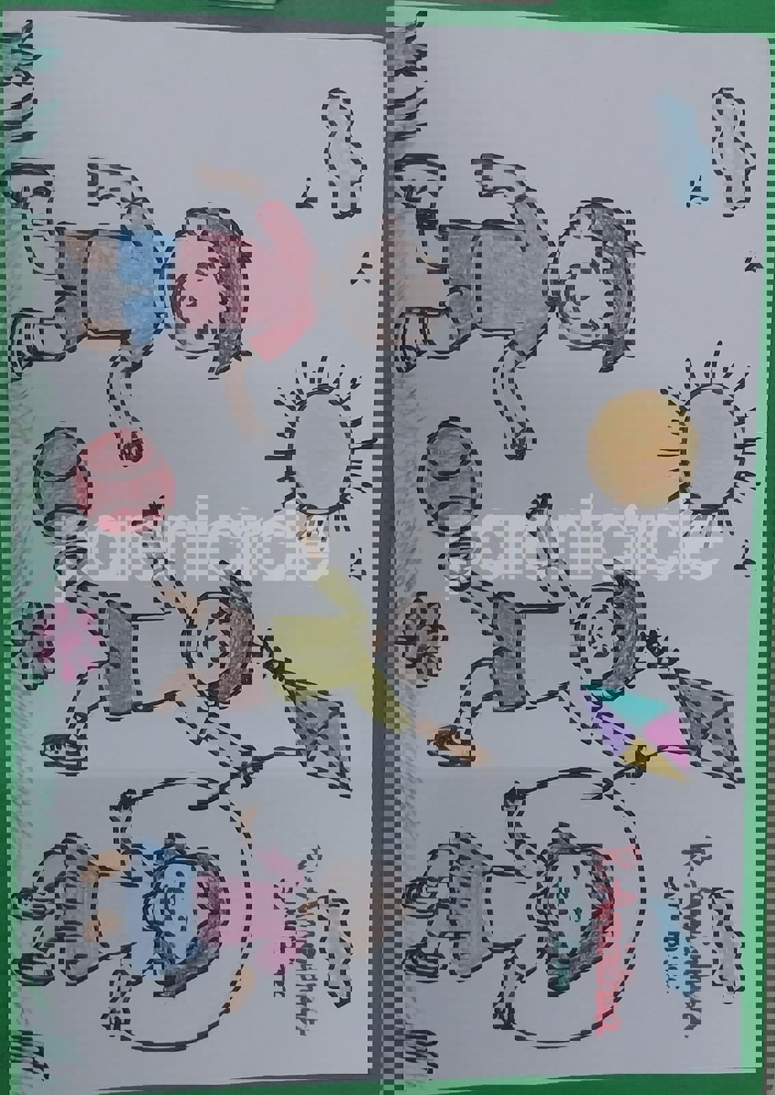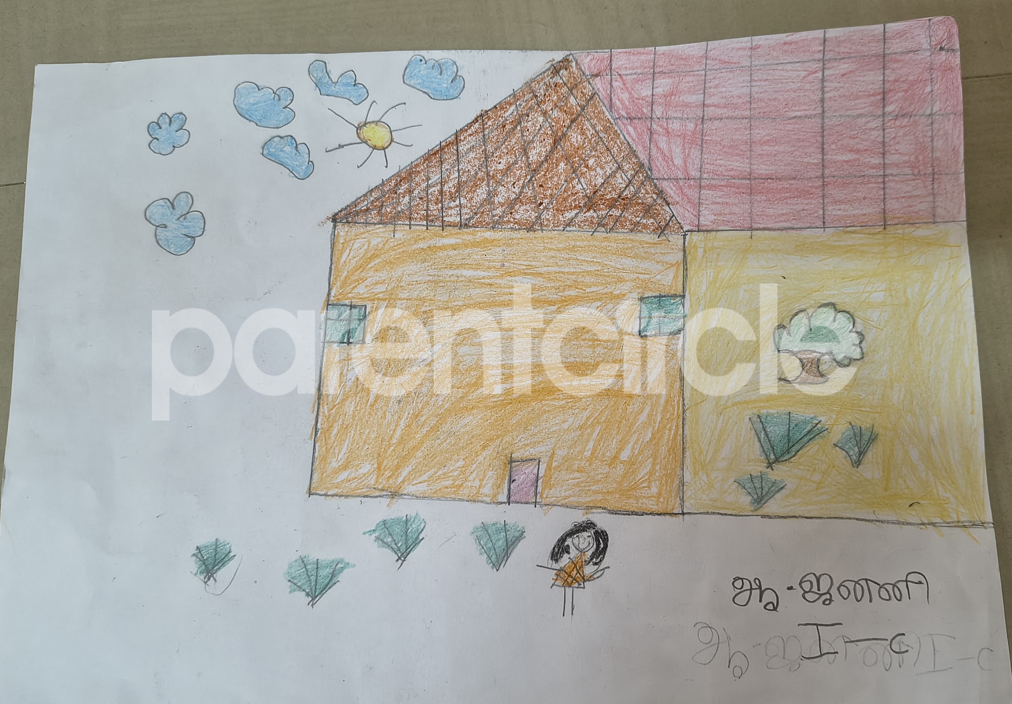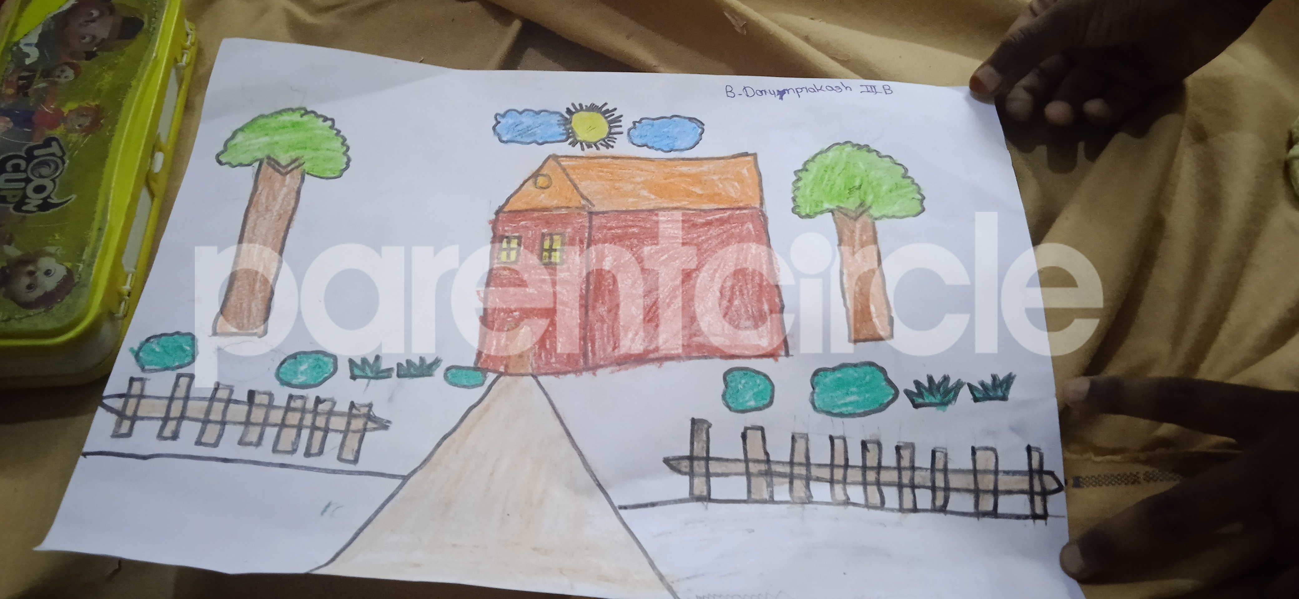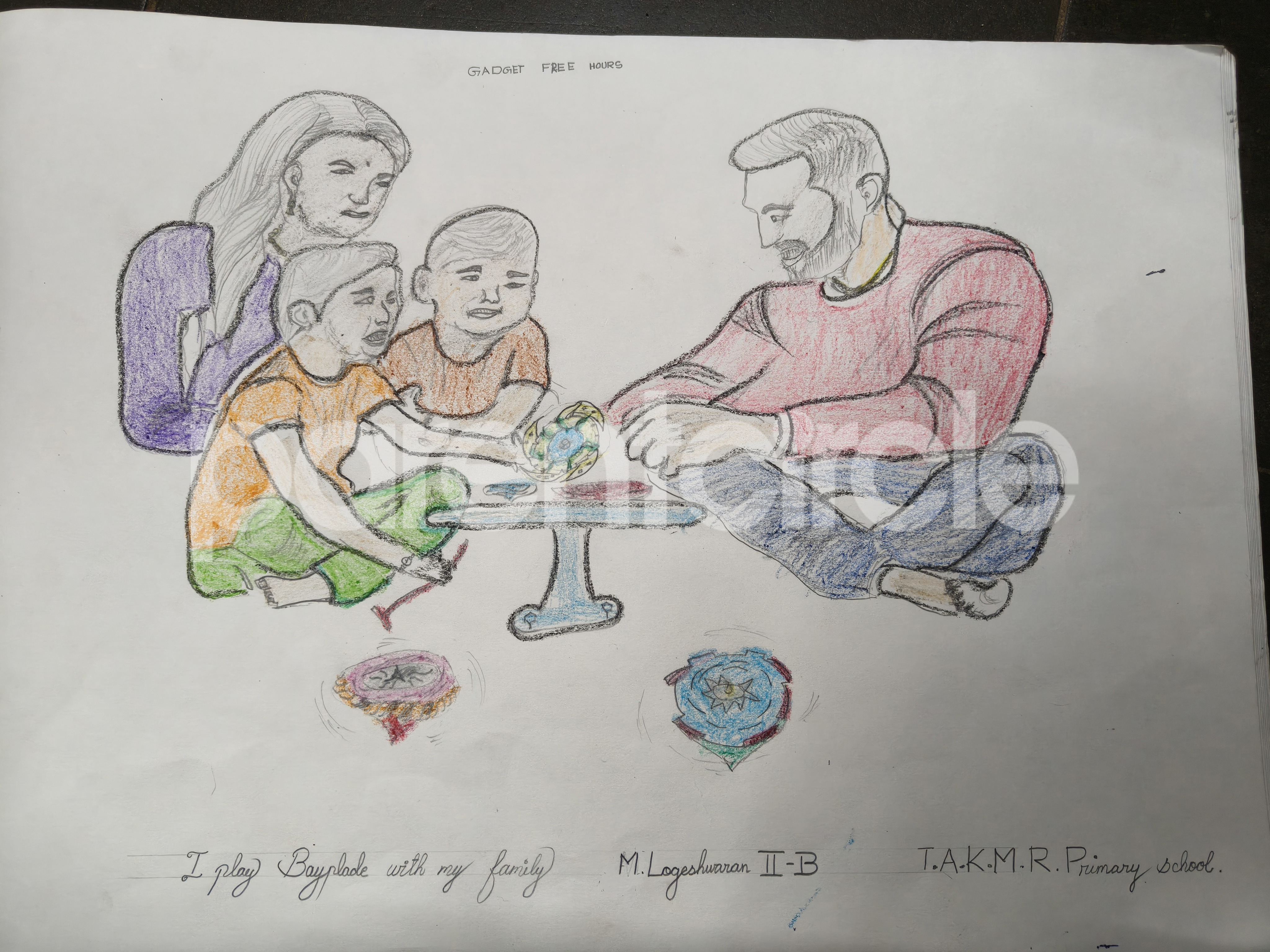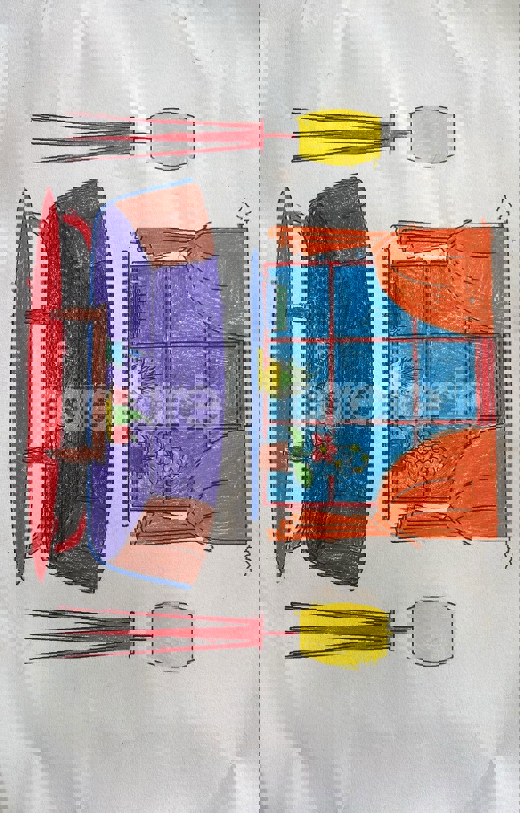 Diya has more than one favourite corner at home. The above drawing shows Study table along with her ART and CRAFT hanging, watching TV by sating on the Couch and finally her small garden in the balcony
