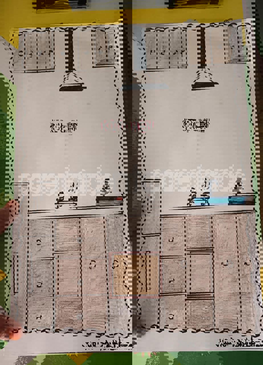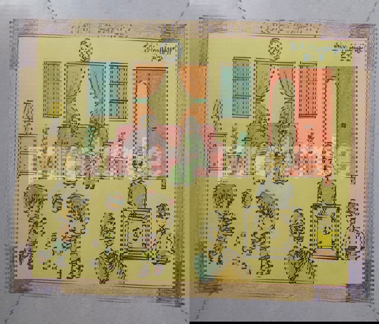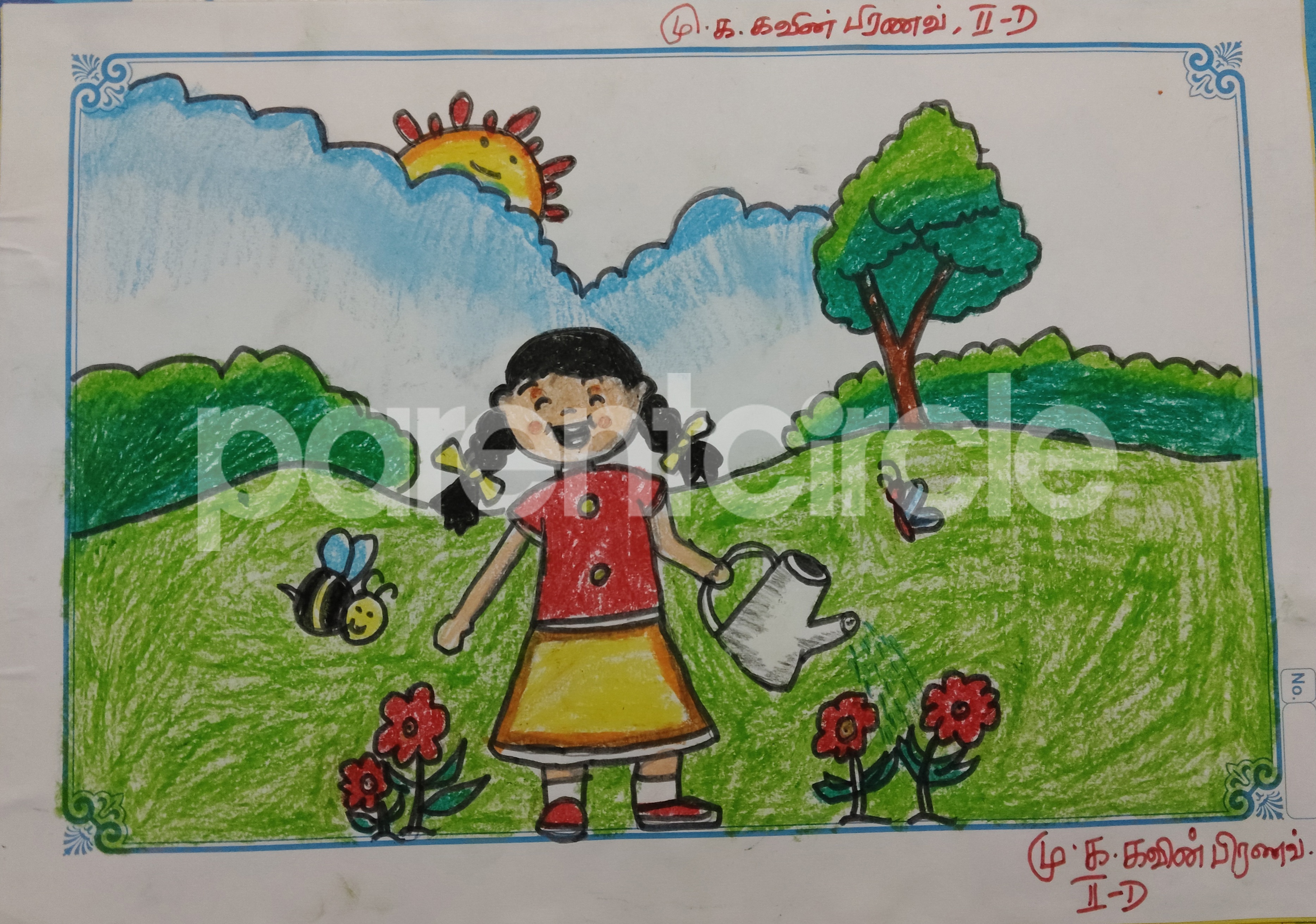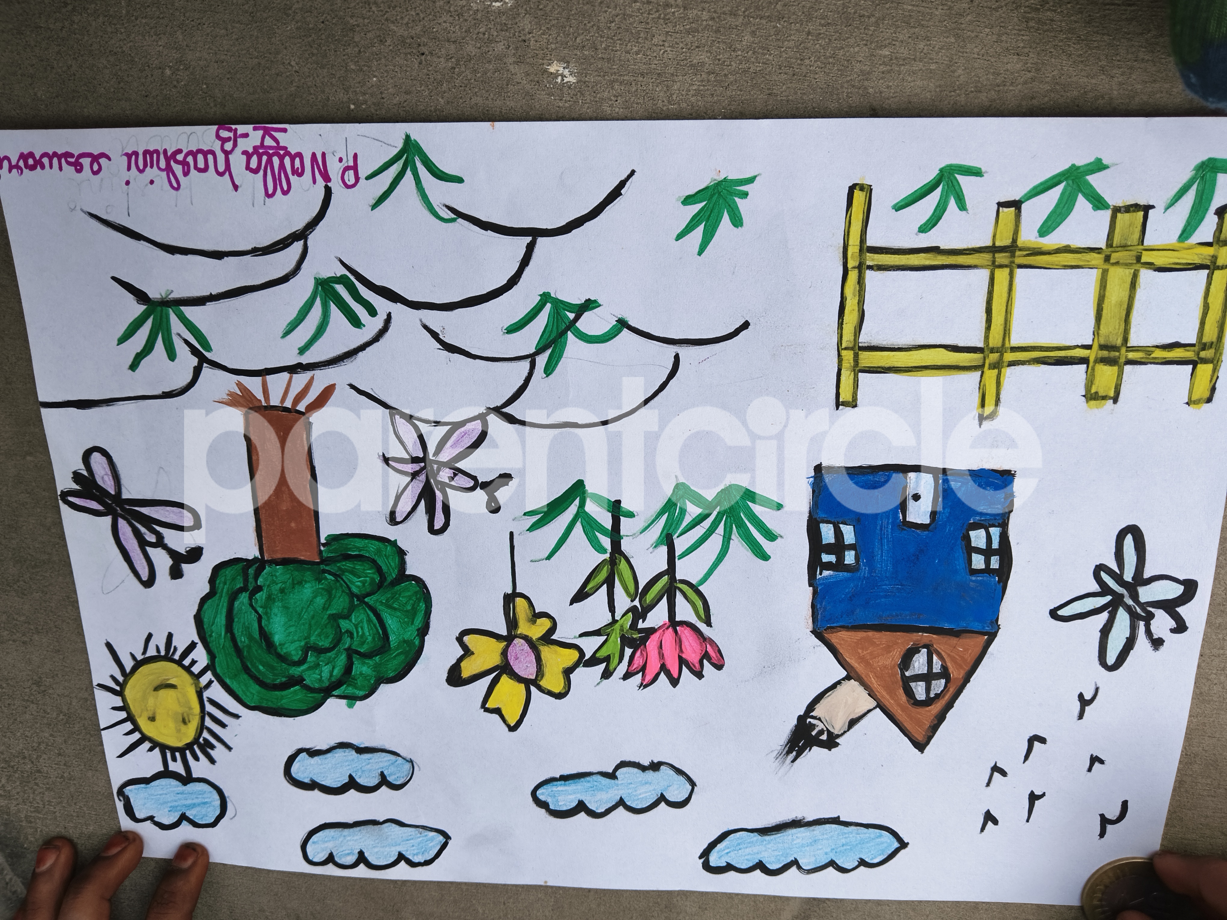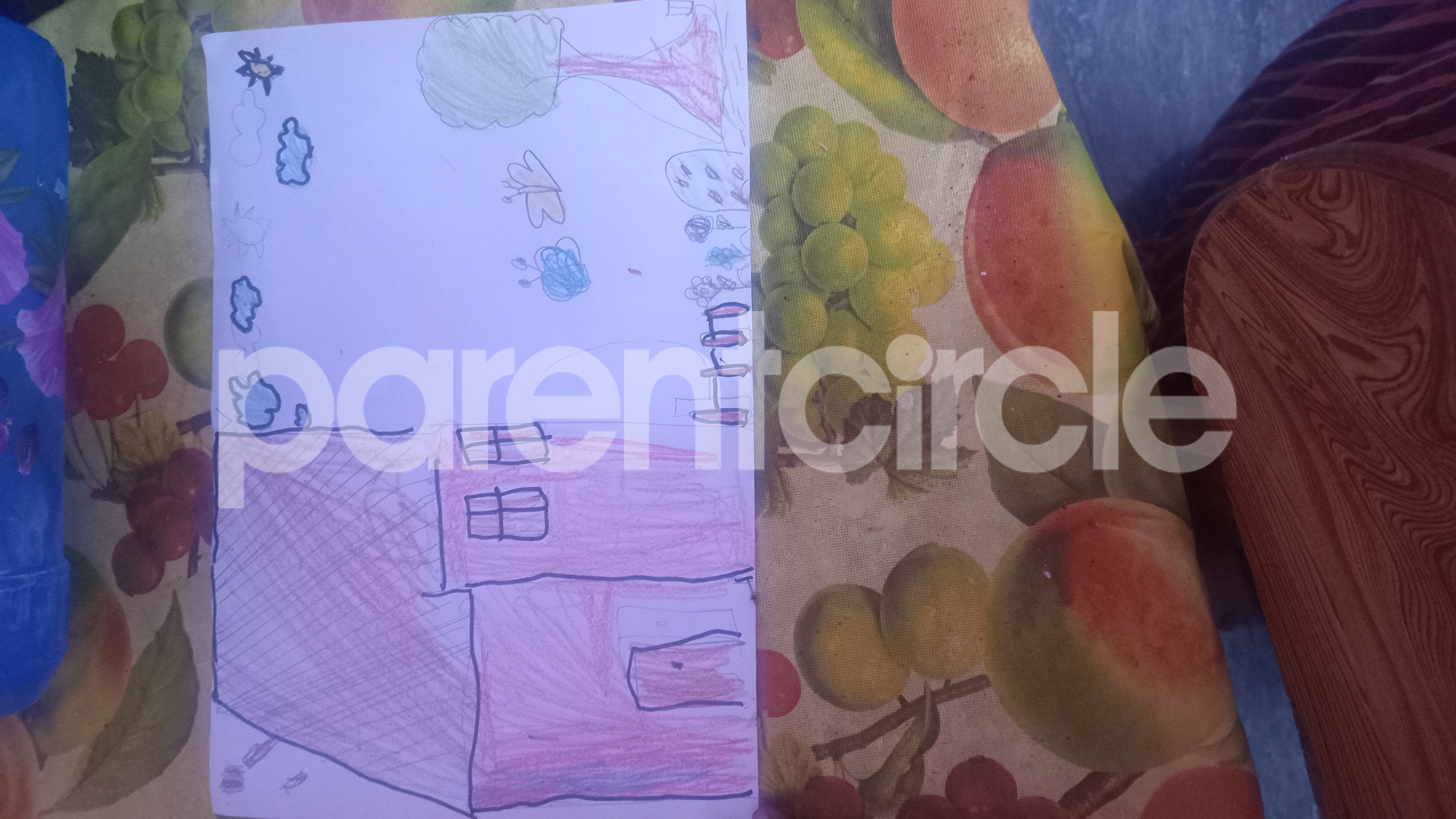 Diya has more than one favourite corner at home. The above drawing shows Study table along with her ART and CRAFT hanging, watching TV by sating on the Couch and finally her small garden in the balcony
