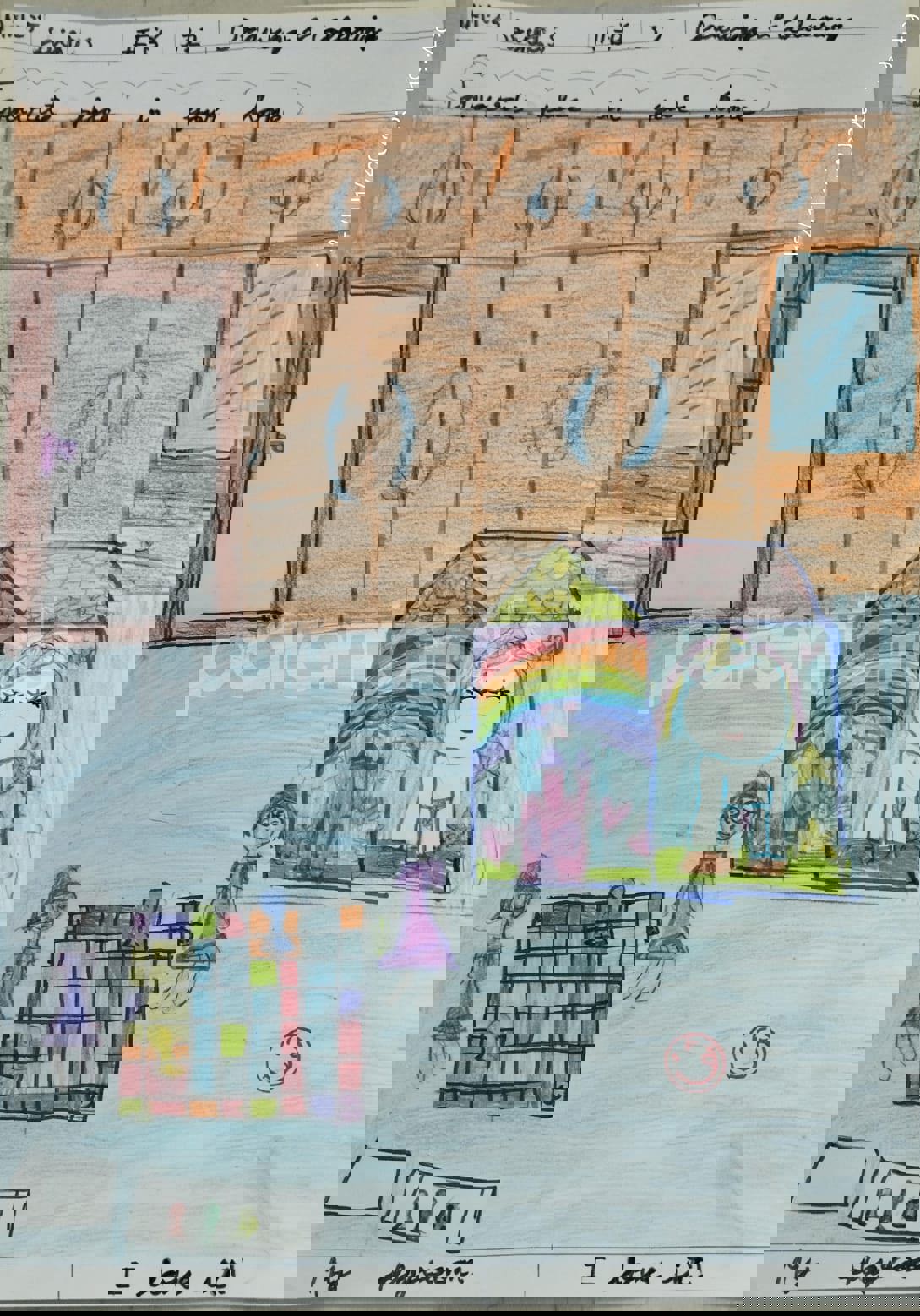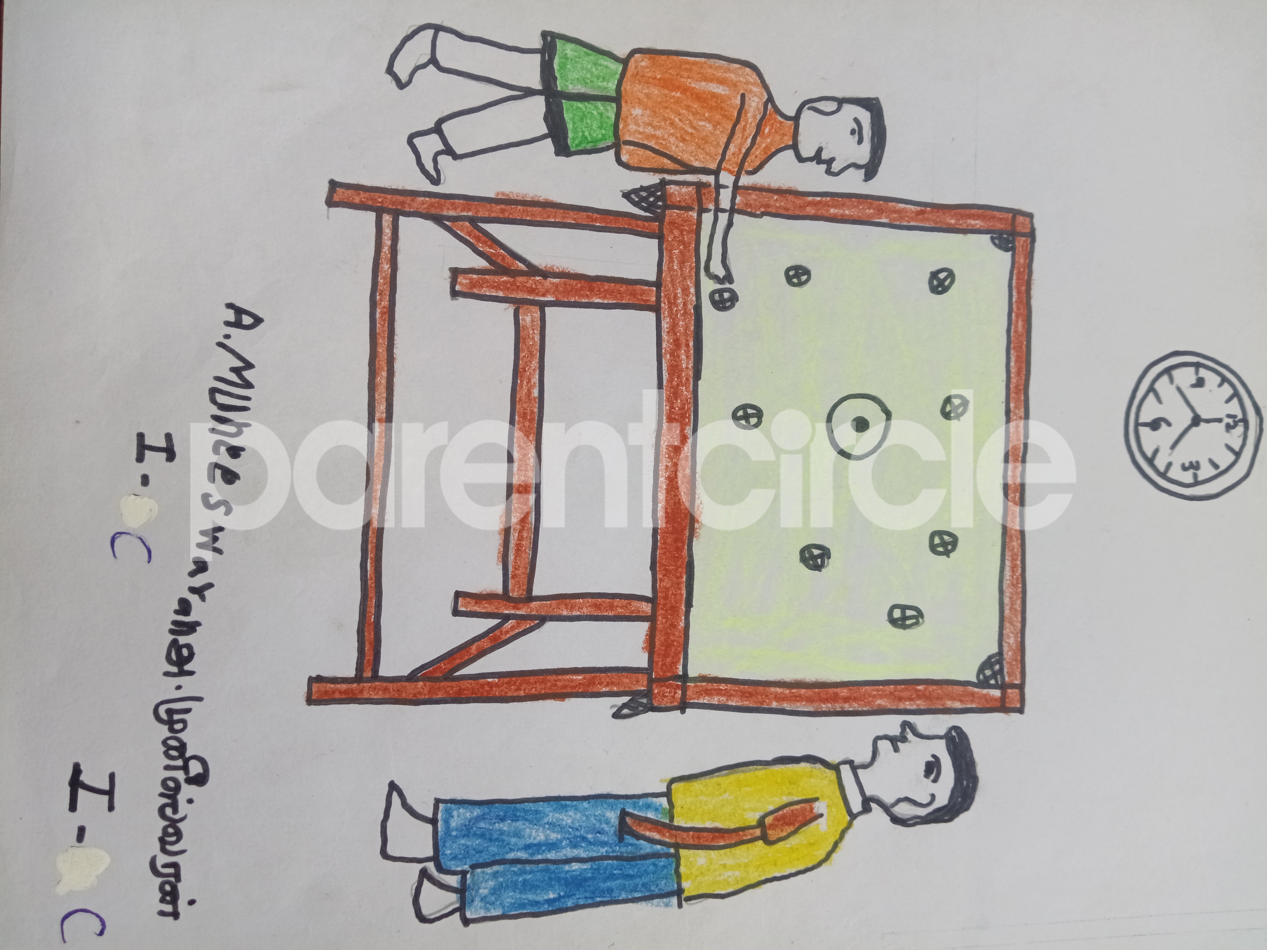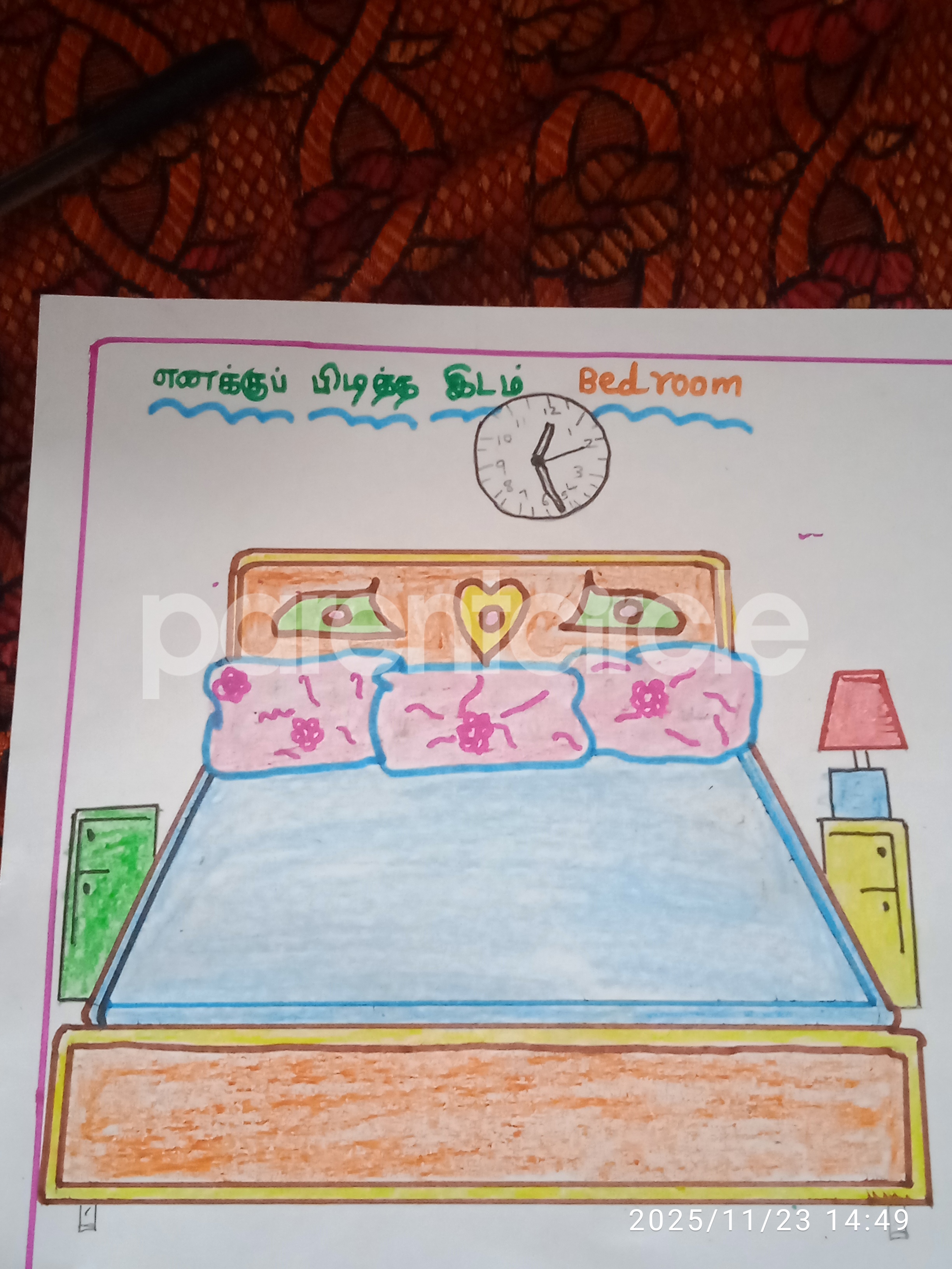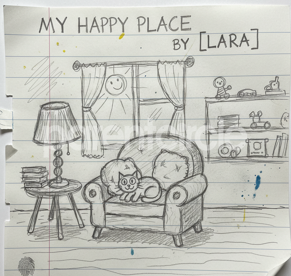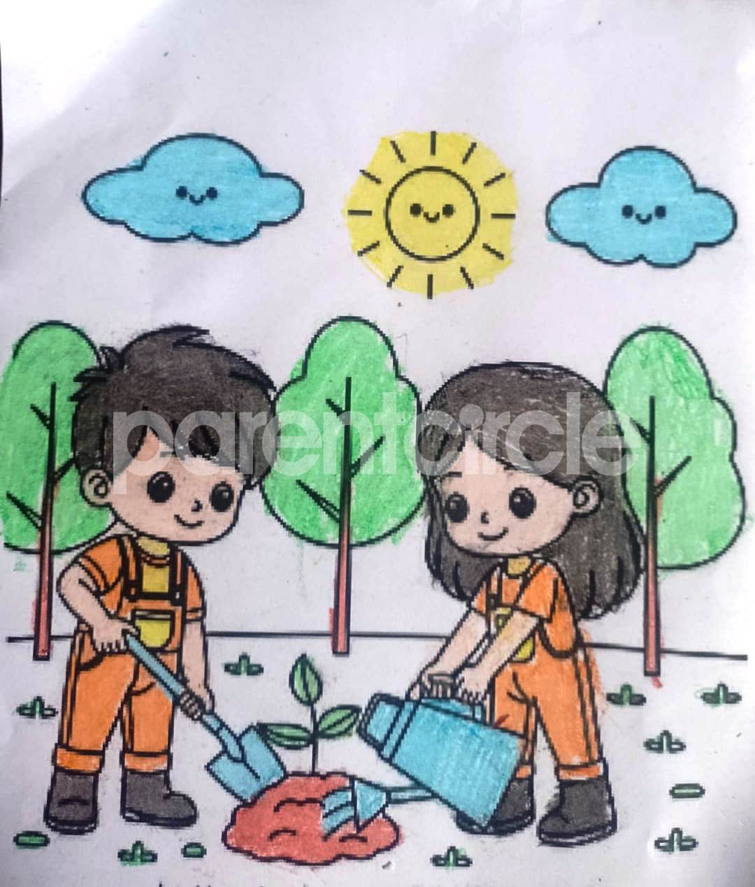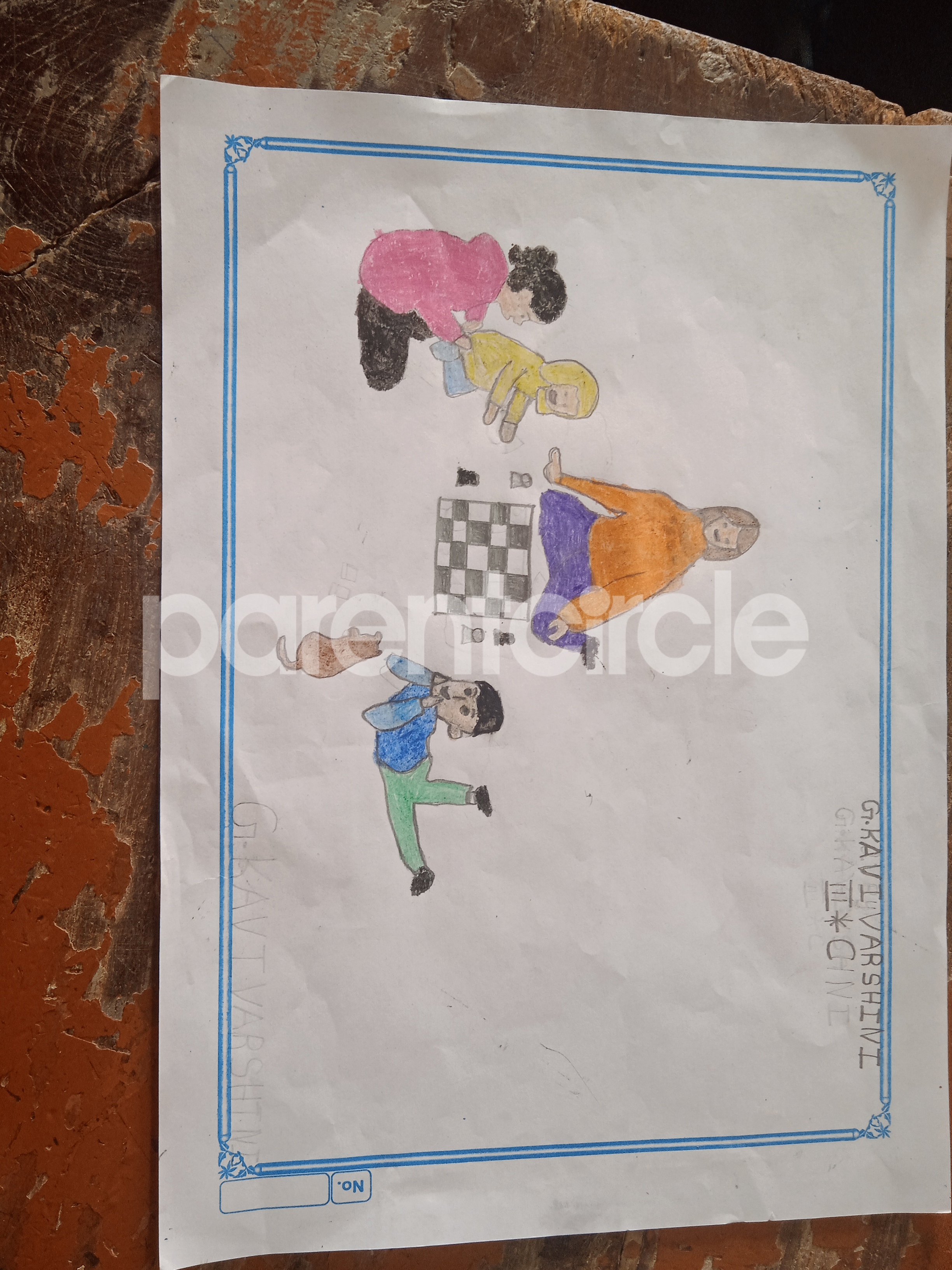 Diya has more than one favourite corner at home. The above drawing shows Study table along with her ART and CRAFT hanging, watching TV by sating on the Couch and finally her small garden in the balcony