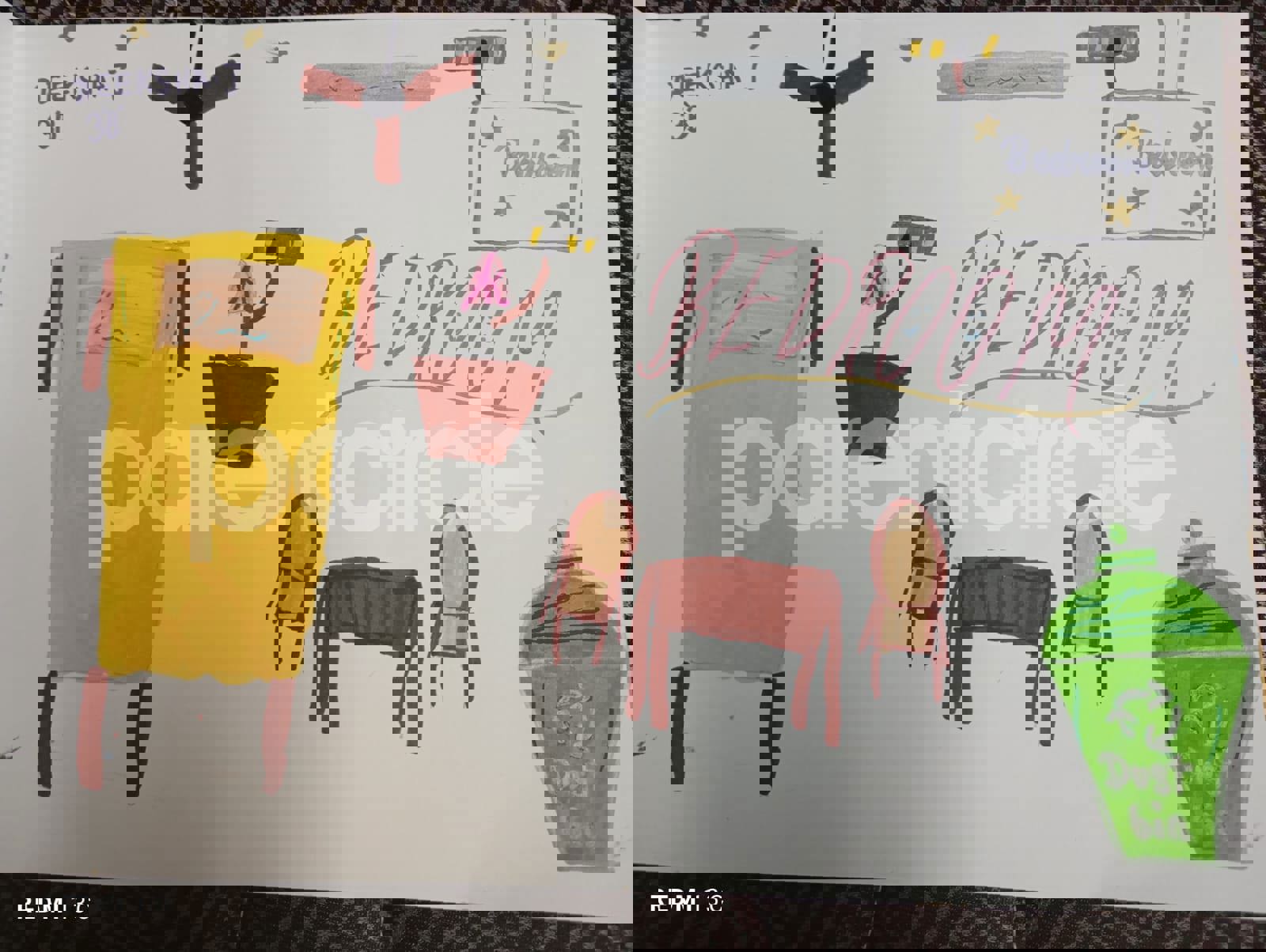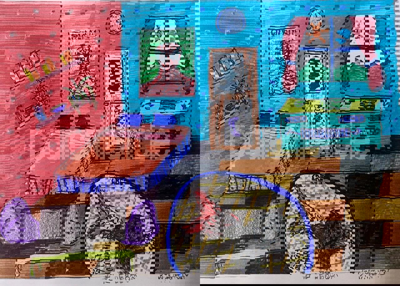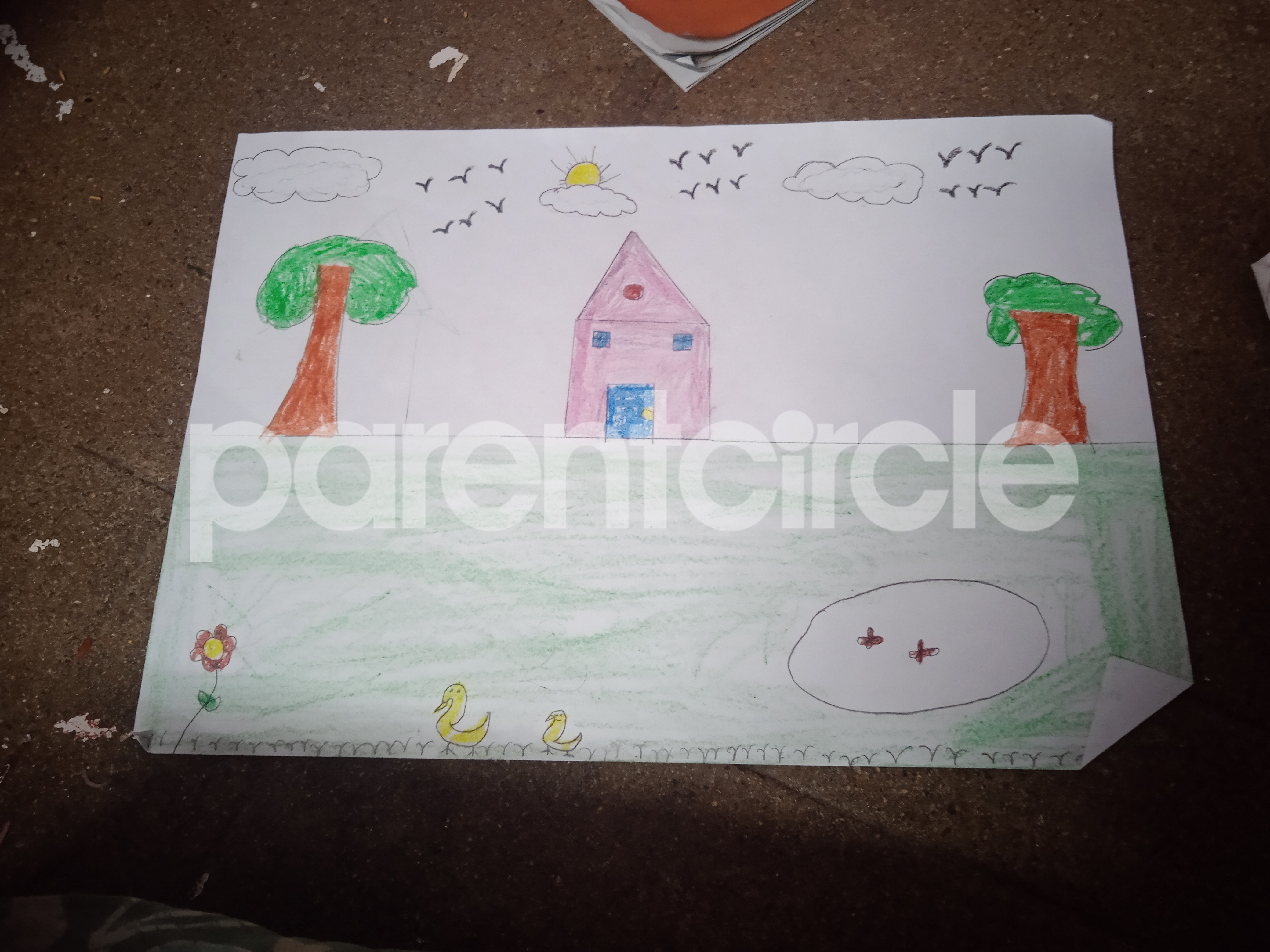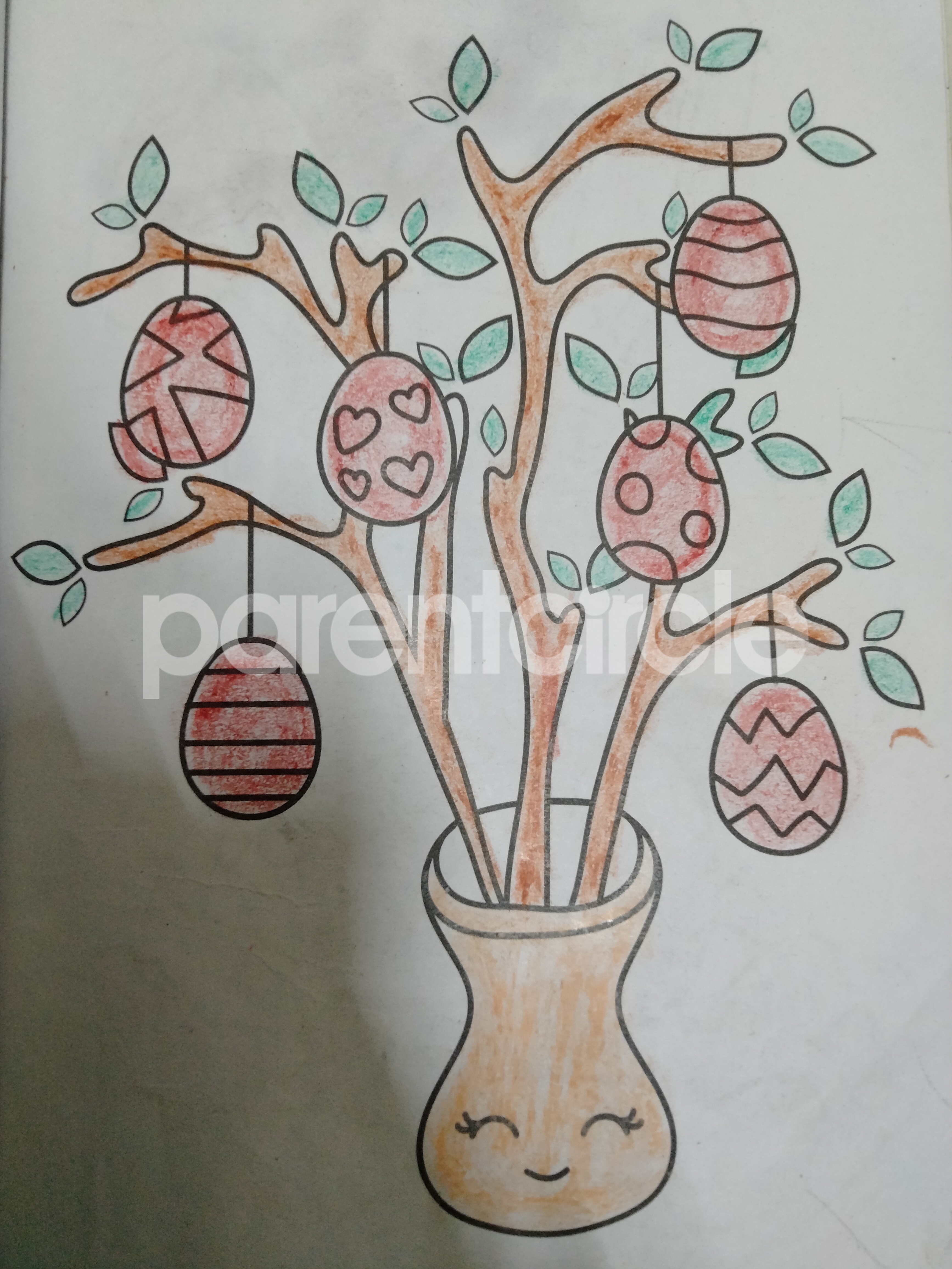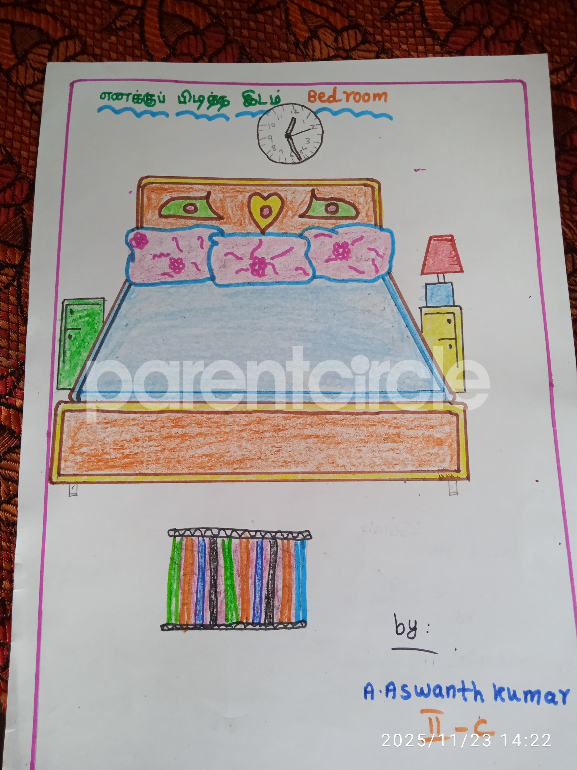 Diya has more than one favourite corner at home. The above drawing shows Study table along with her ART and CRAFT hanging, watching TV by sating on the Couch and finally her small garden in the balcony