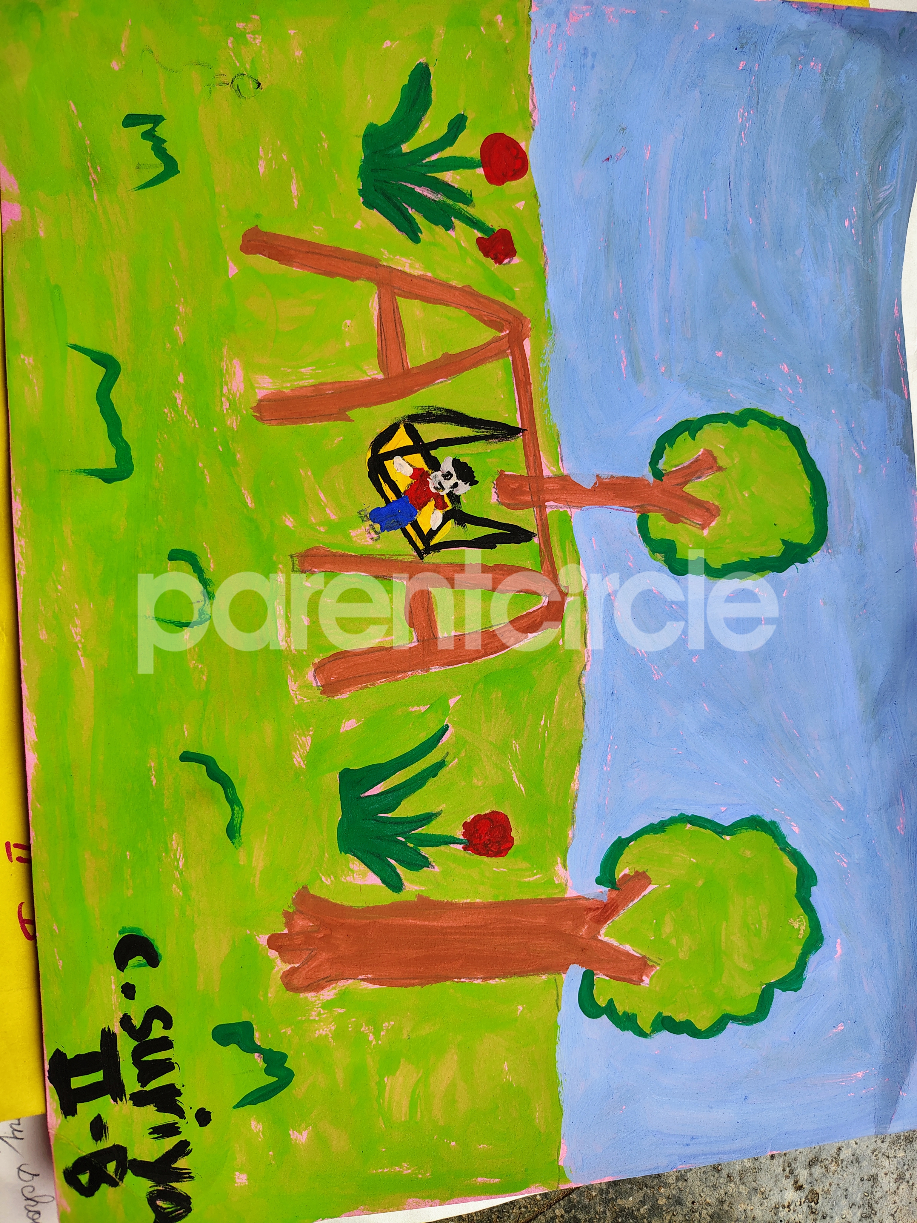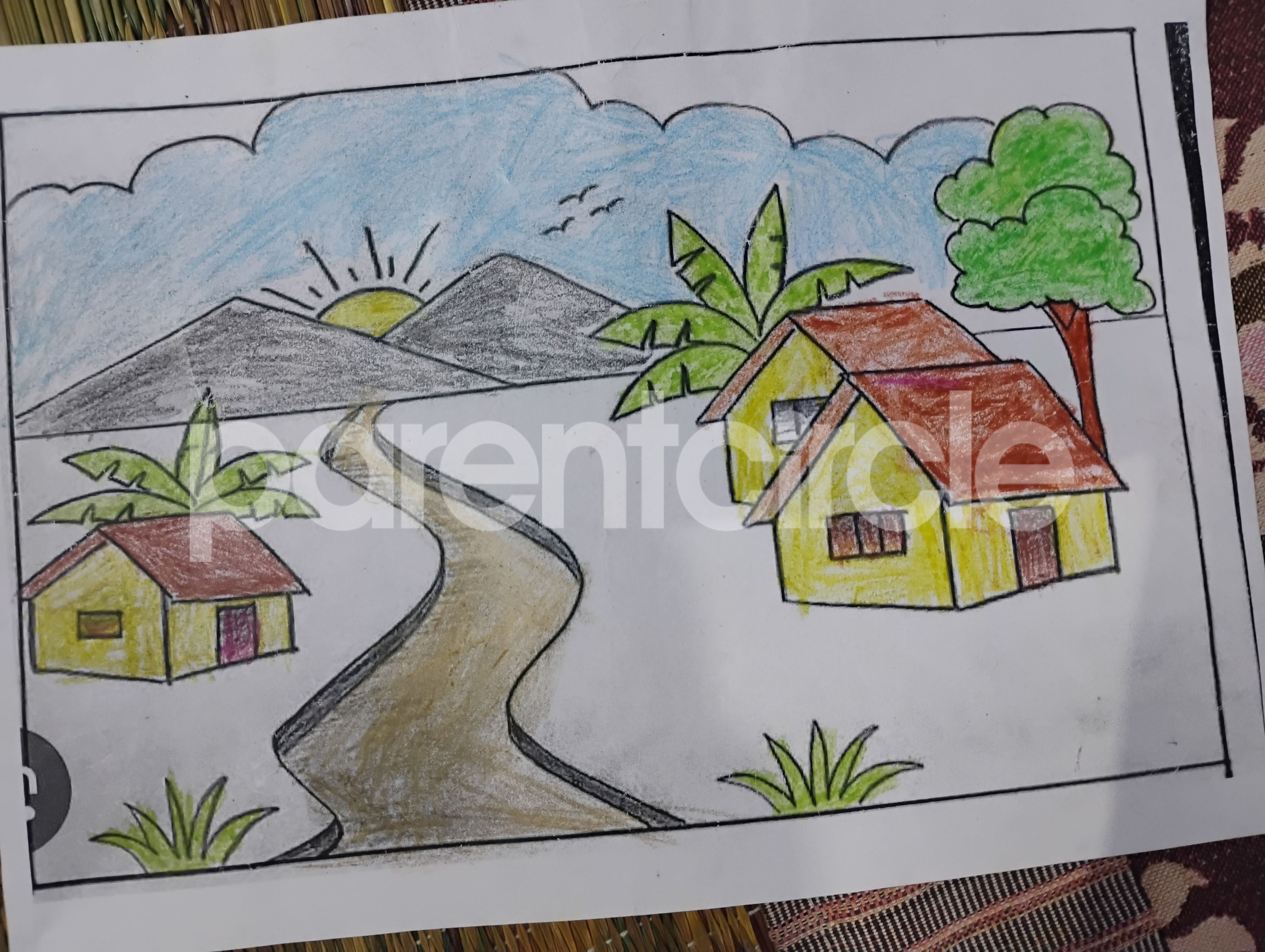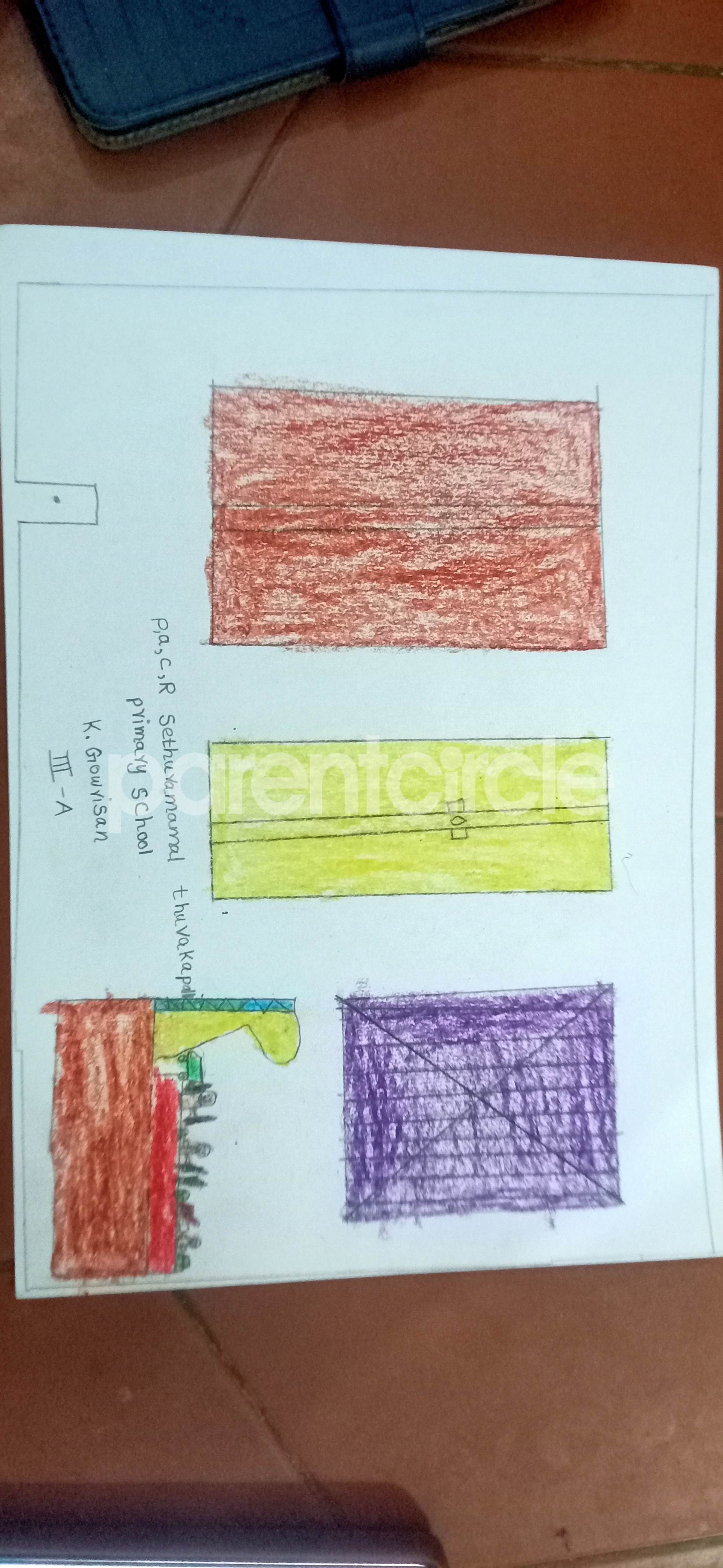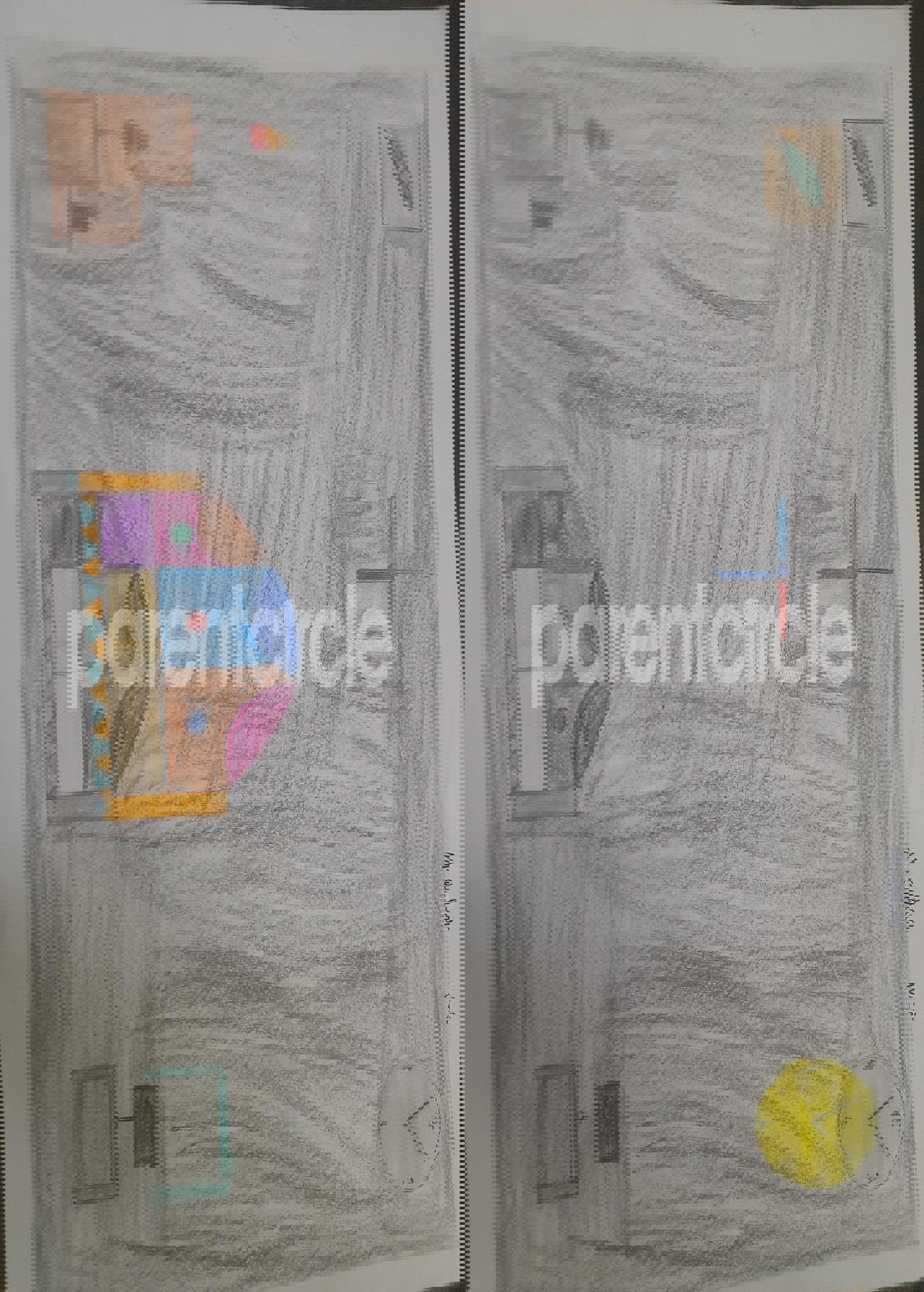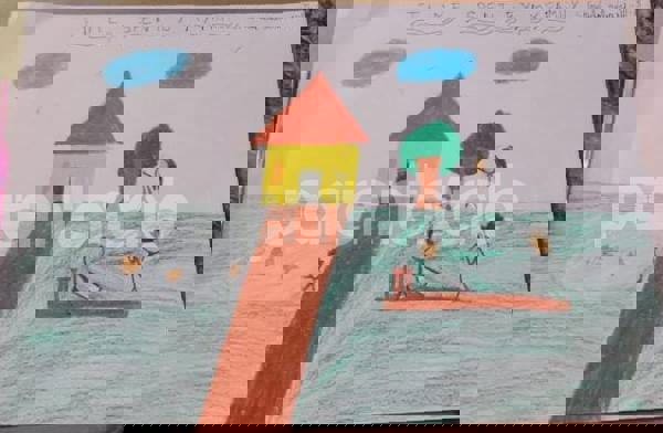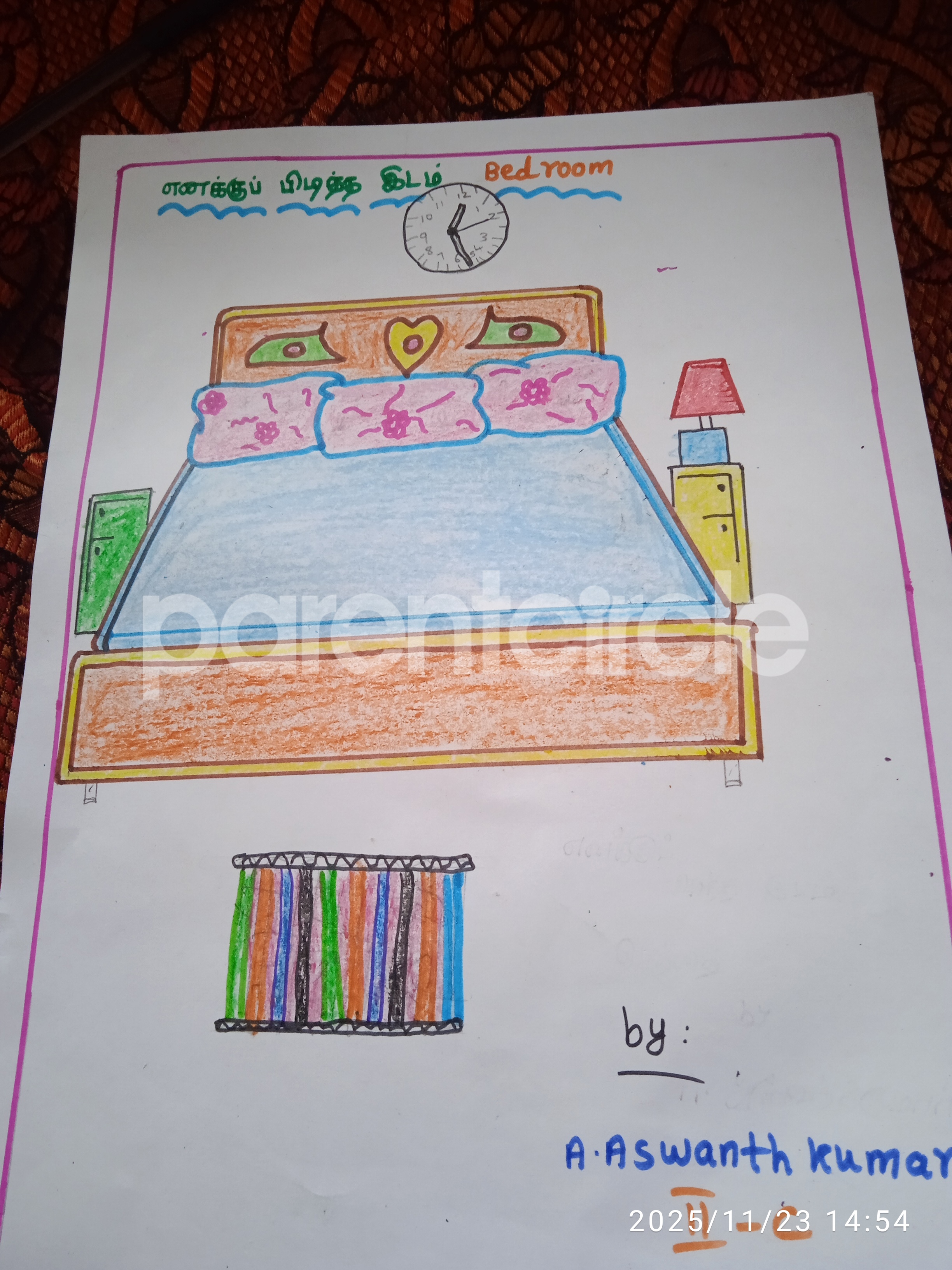 Diya has more than one favourite corner at home. The above drawing shows Study table along with her ART and CRAFT hanging, watching TV by sating on the Couch and finally her small garden in the balcony