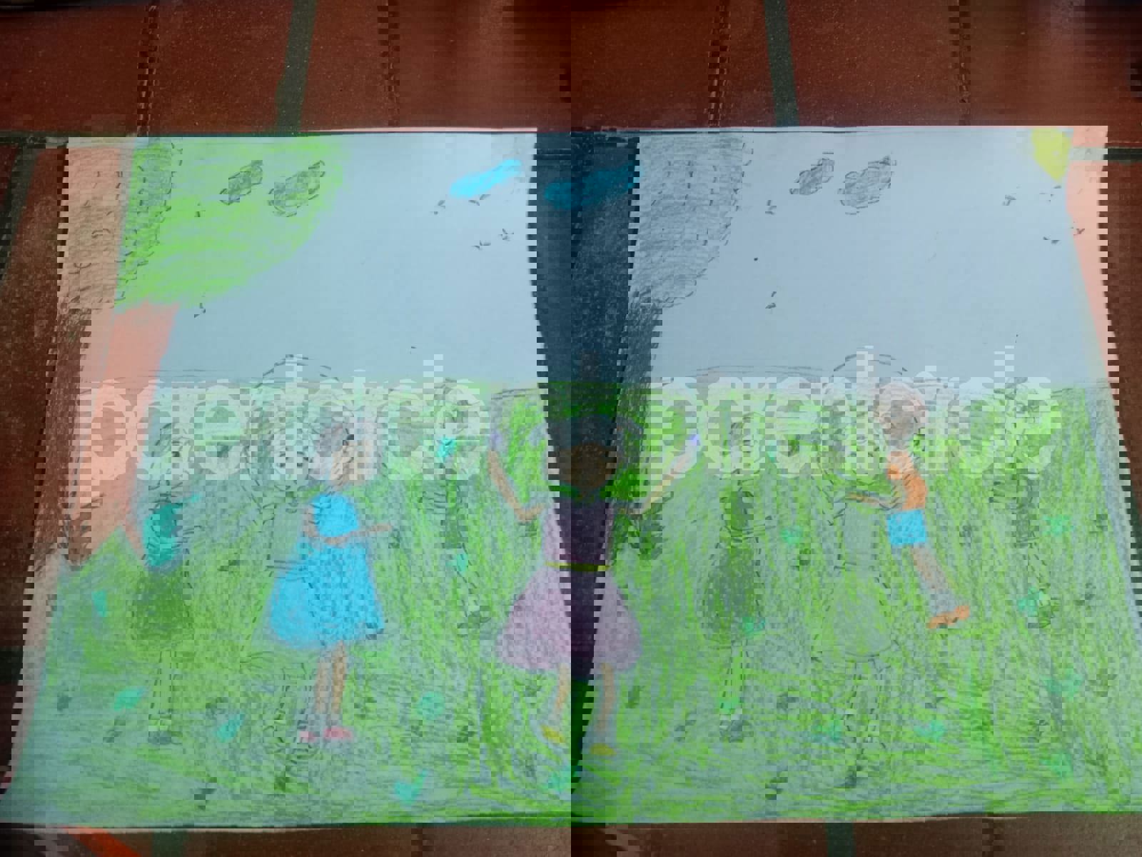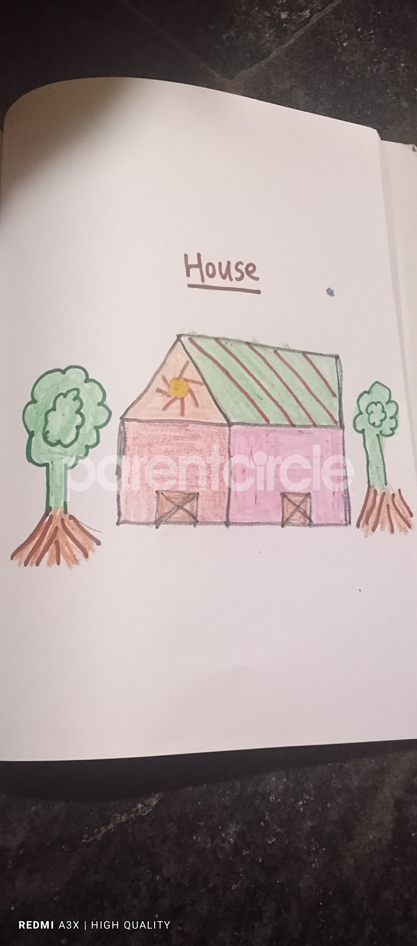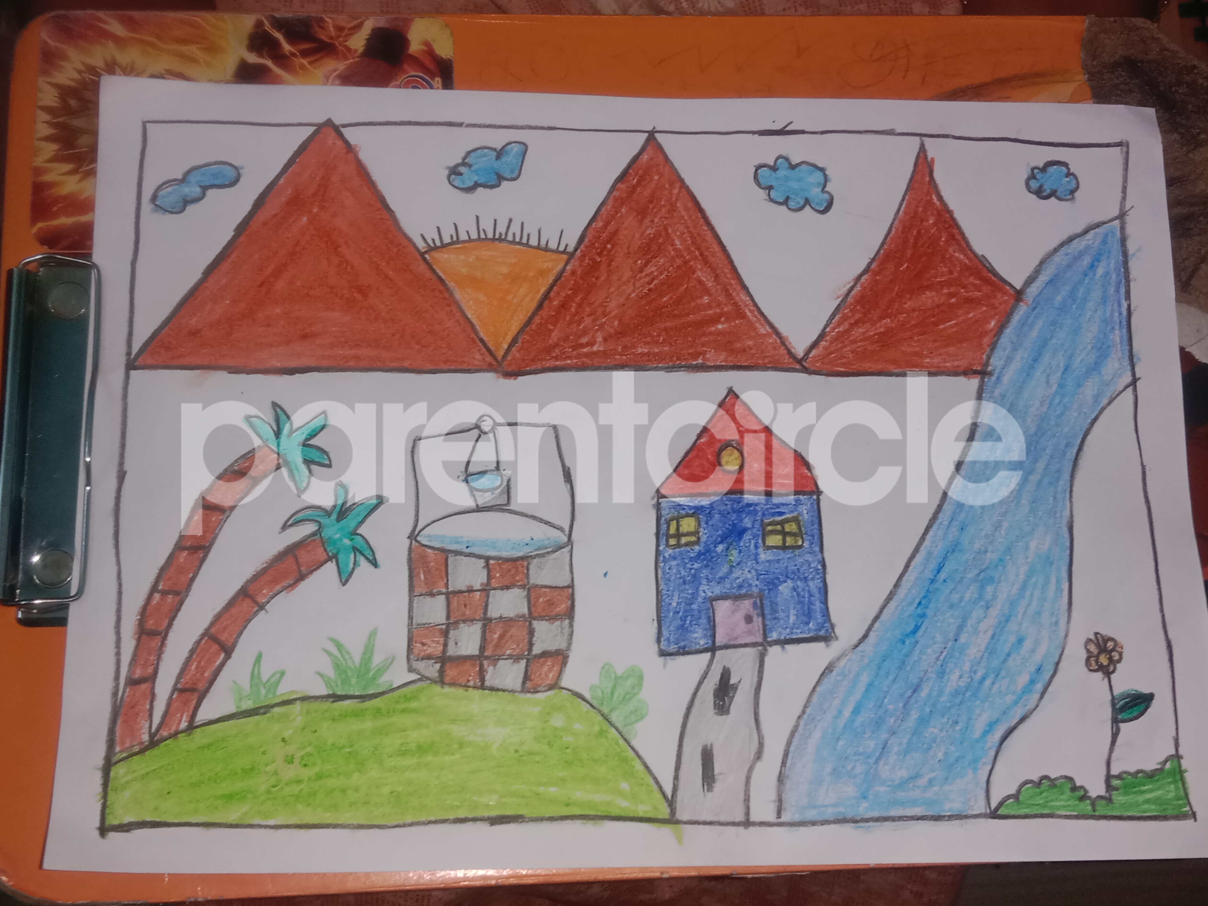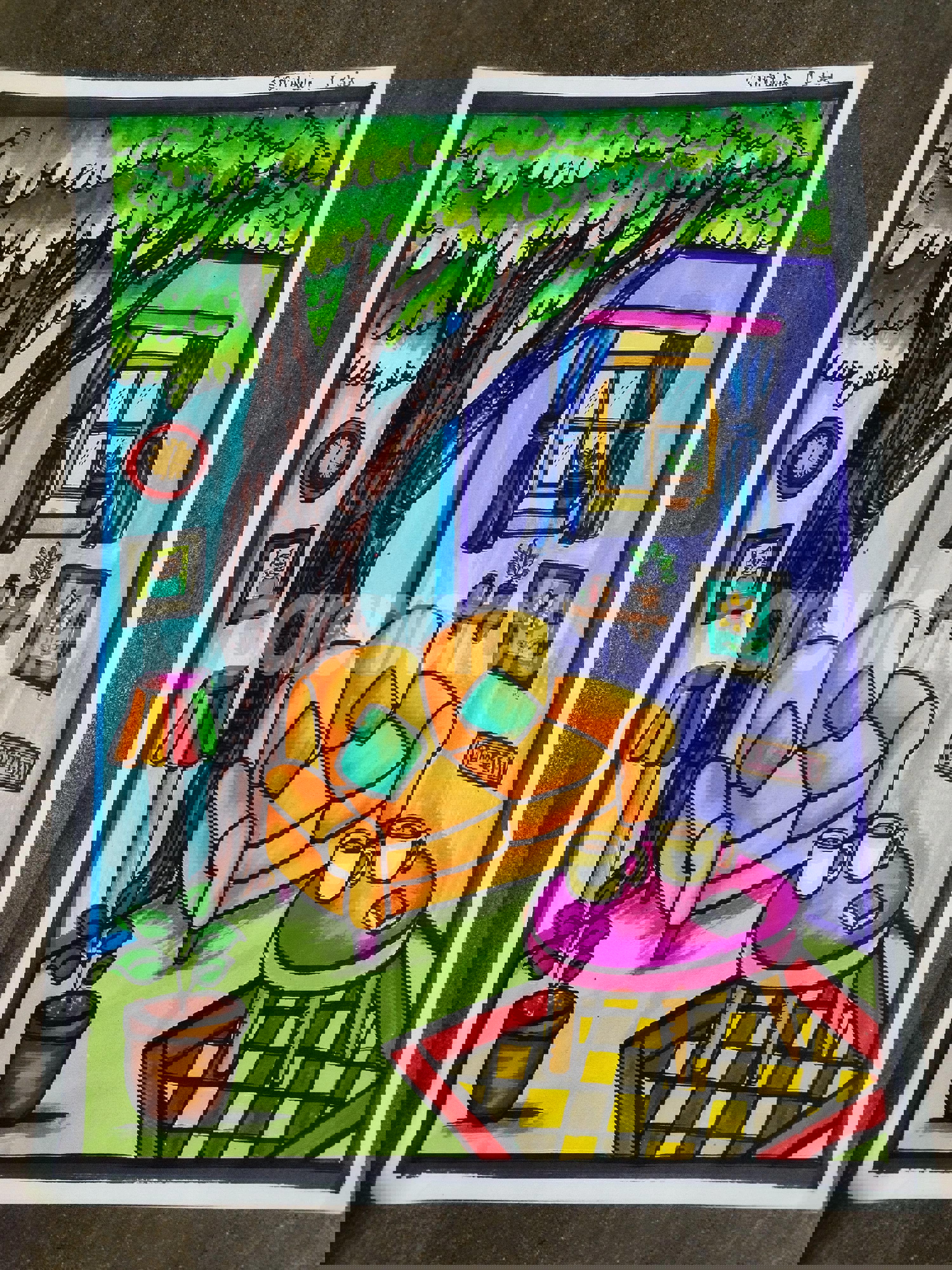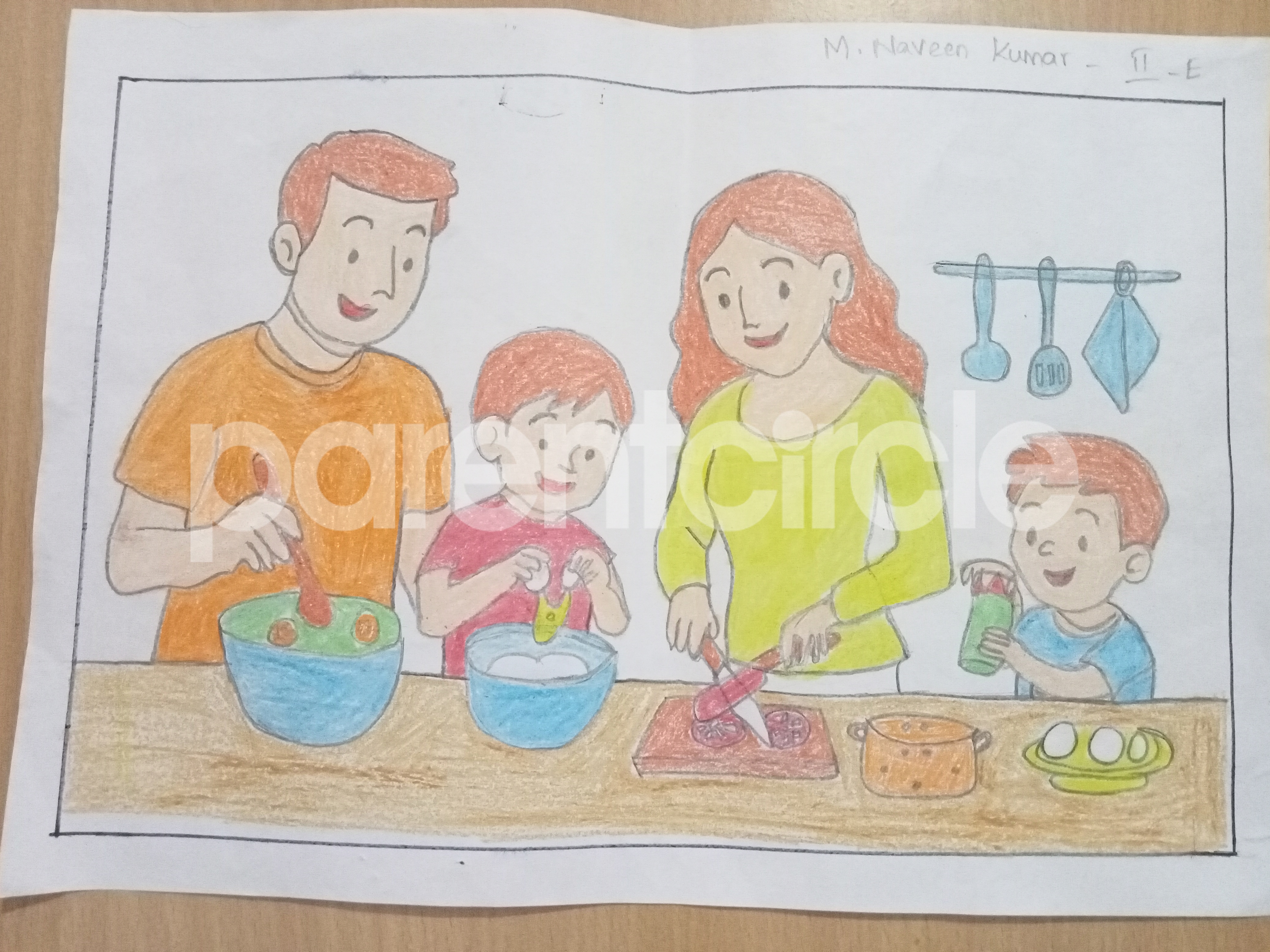 Diya has more than one favourite corner at home. The above drawing shows Study table along with her ART and CRAFT hanging, watching TV by sating on the Couch and finally her small garden in the balcony