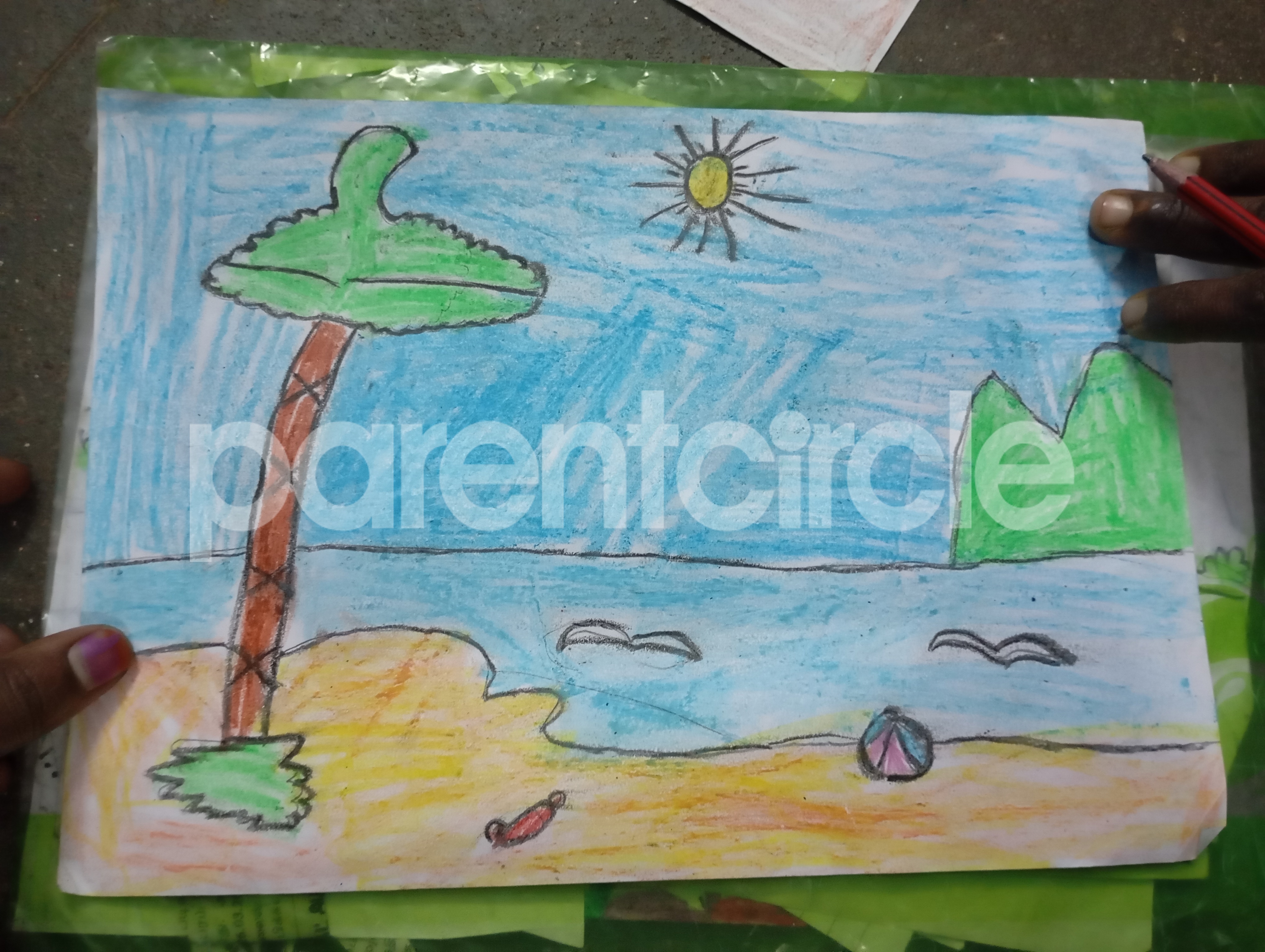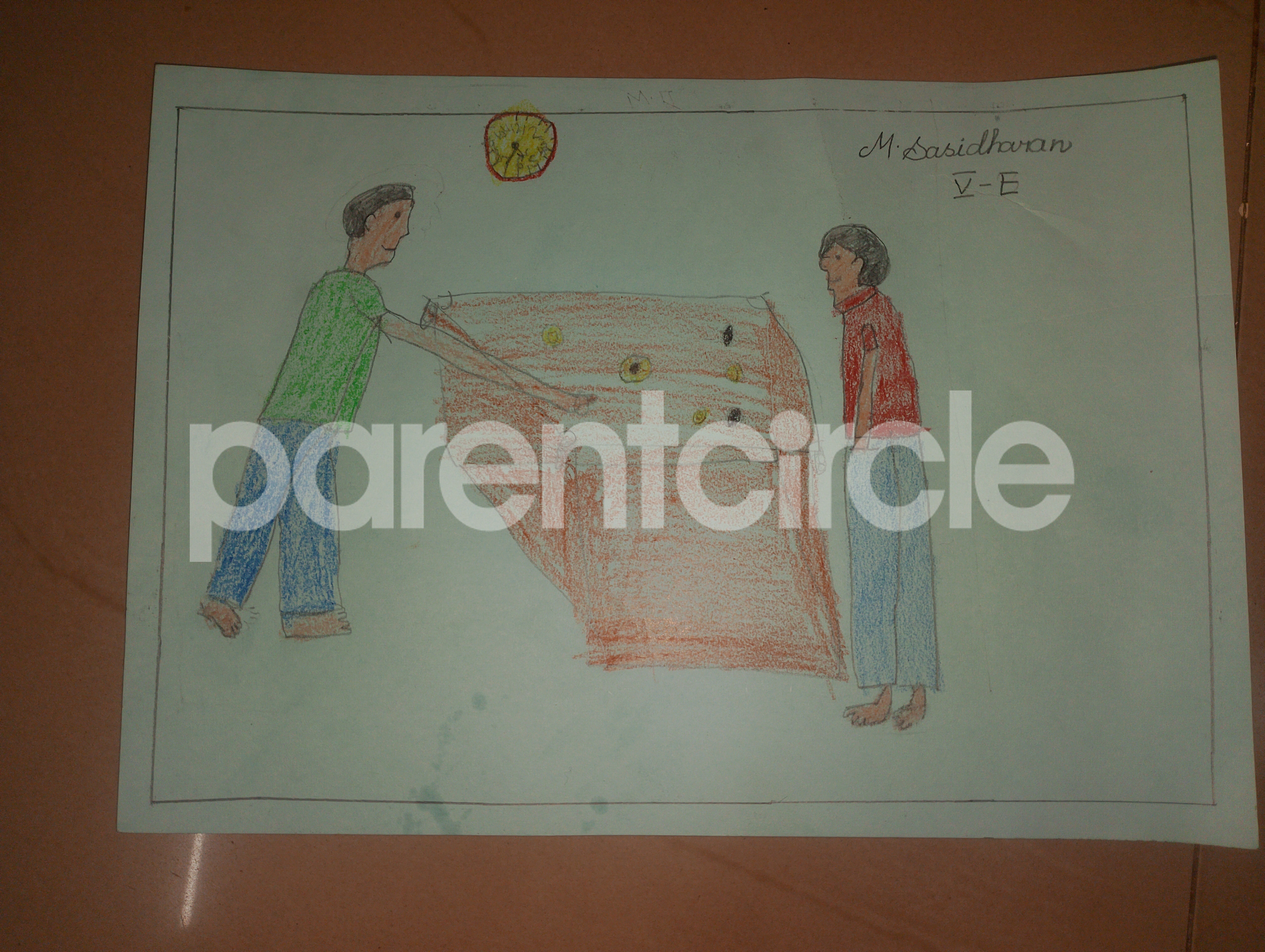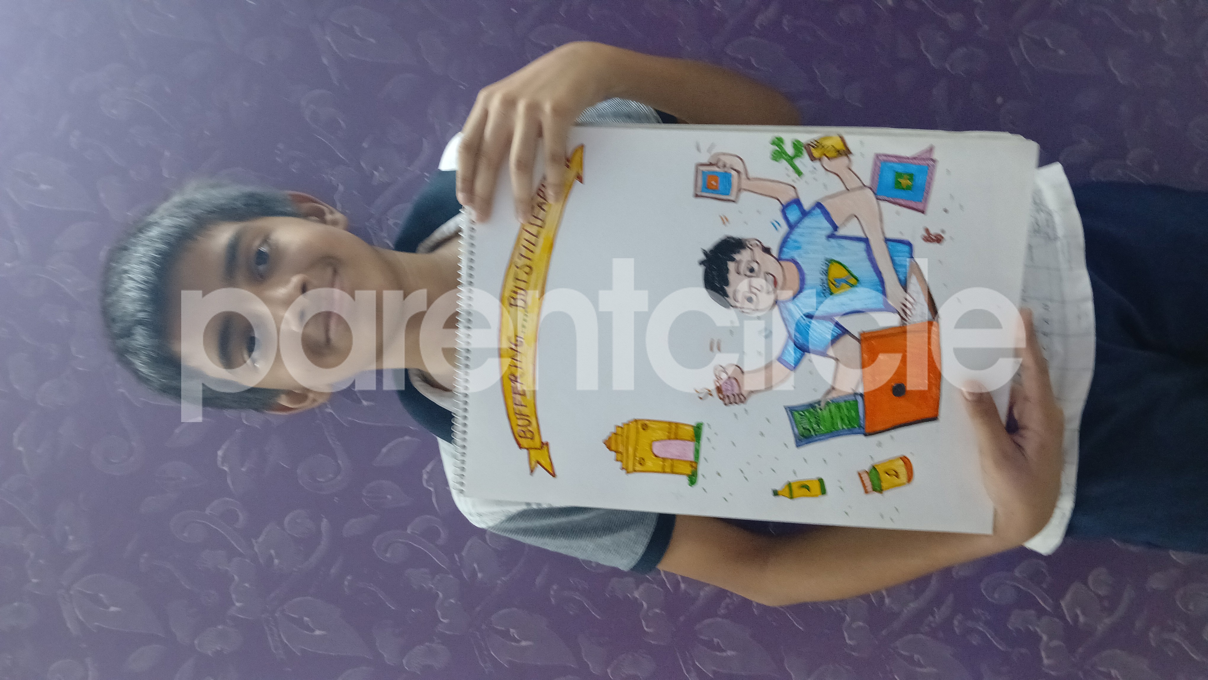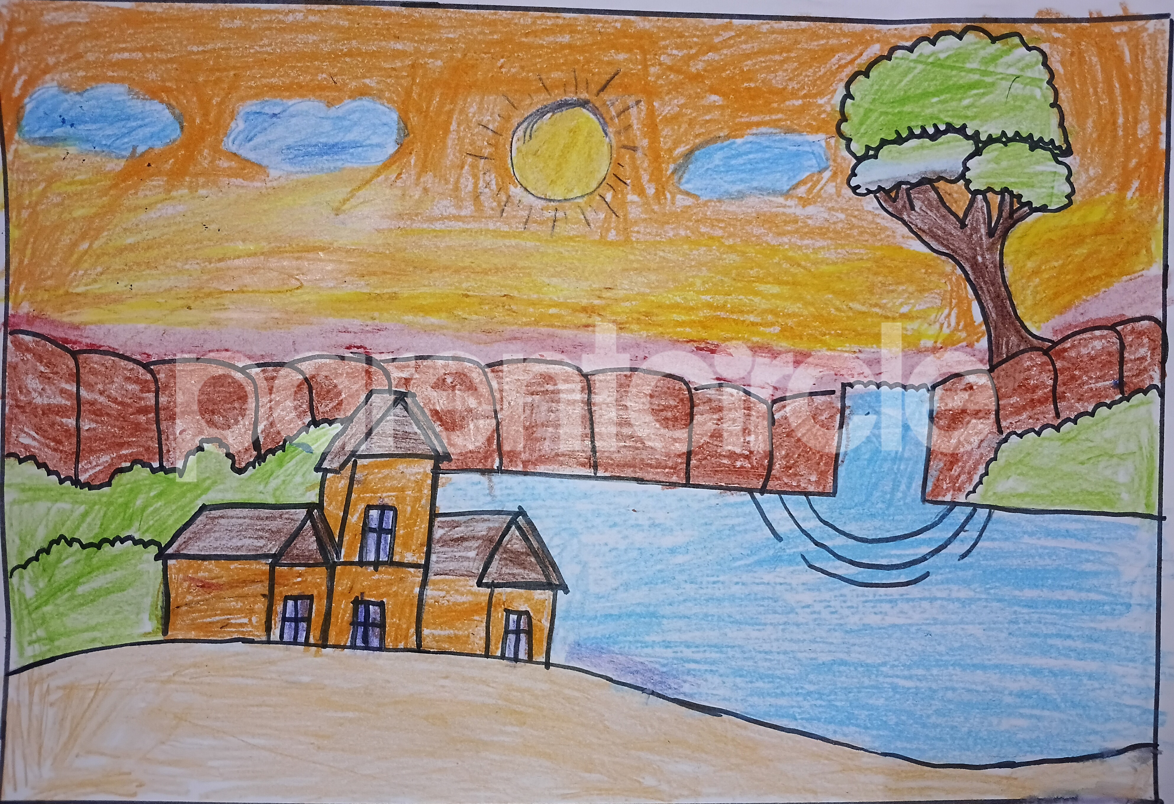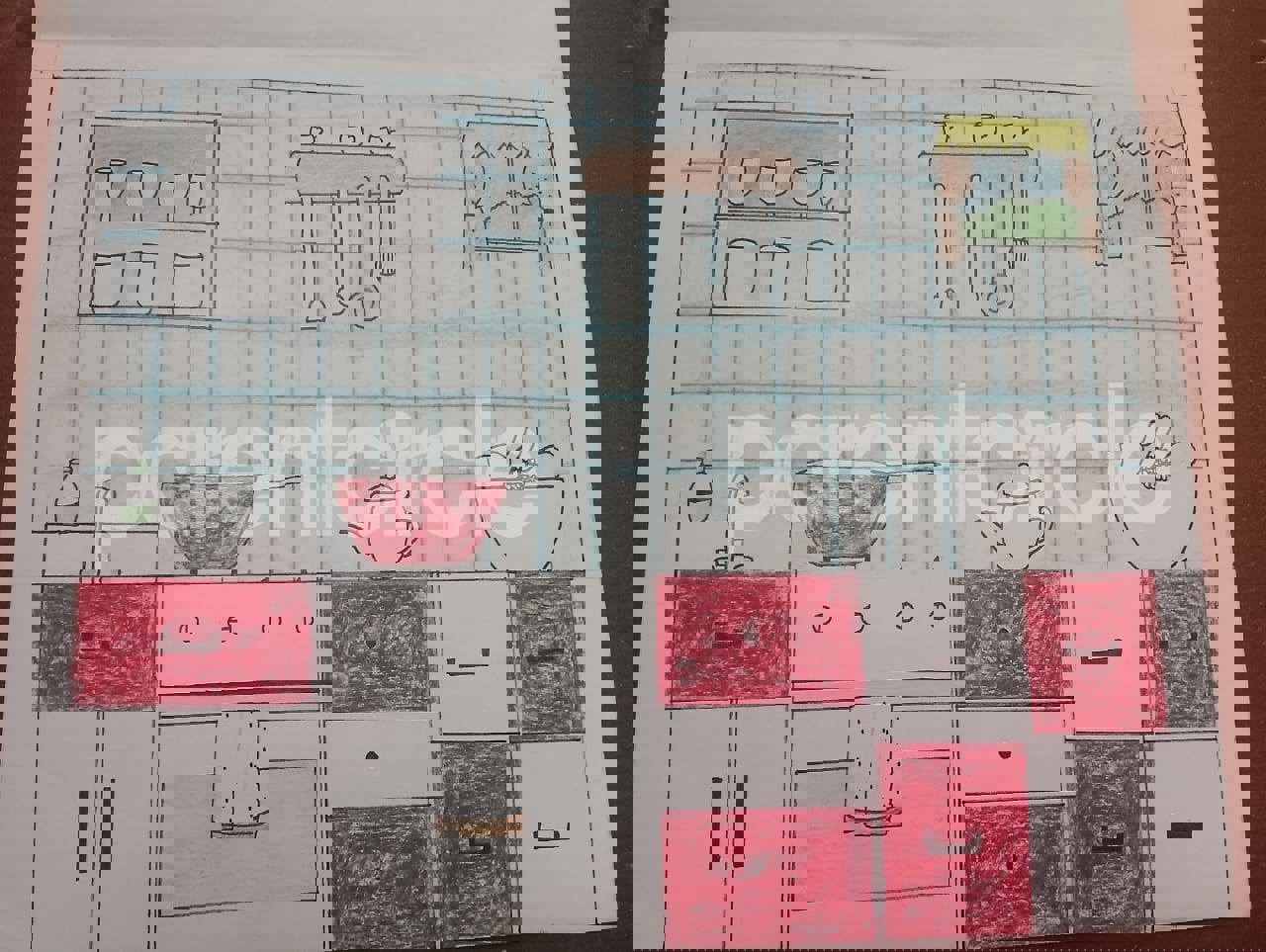 Diya has more than one favourite corner at home. The above drawing shows Study table along with her ART and CRAFT hanging, watching TV by sating on the Couch and finally her small garden in the balcony