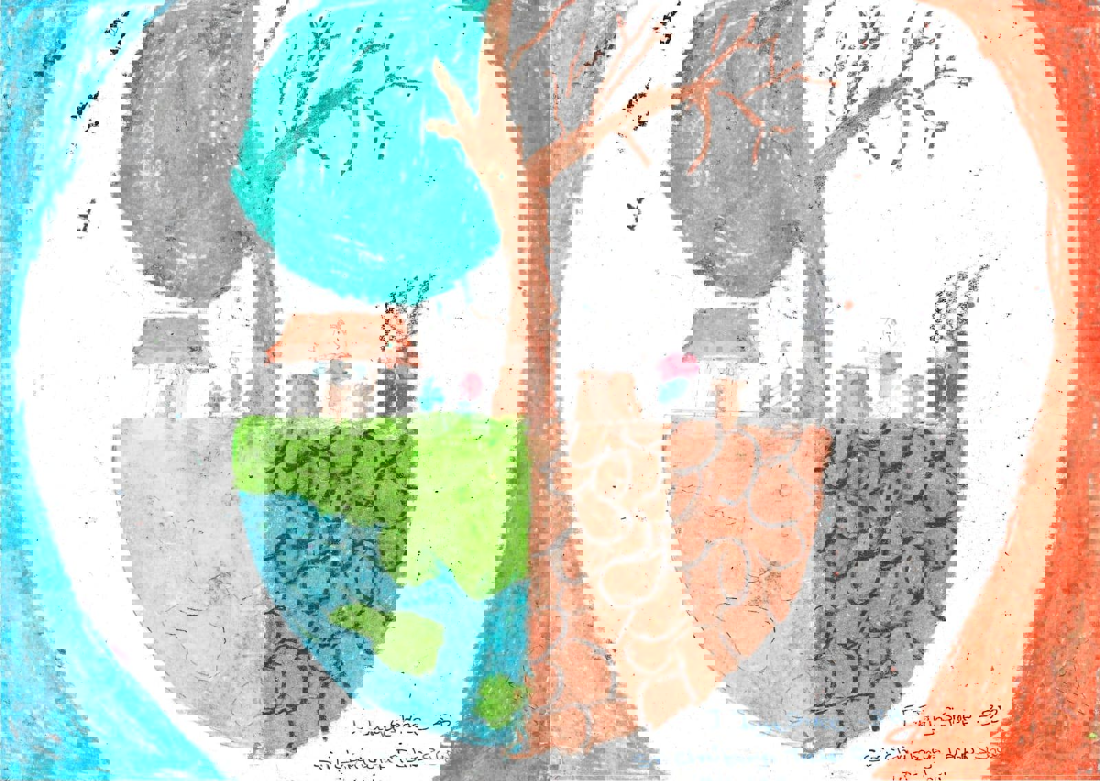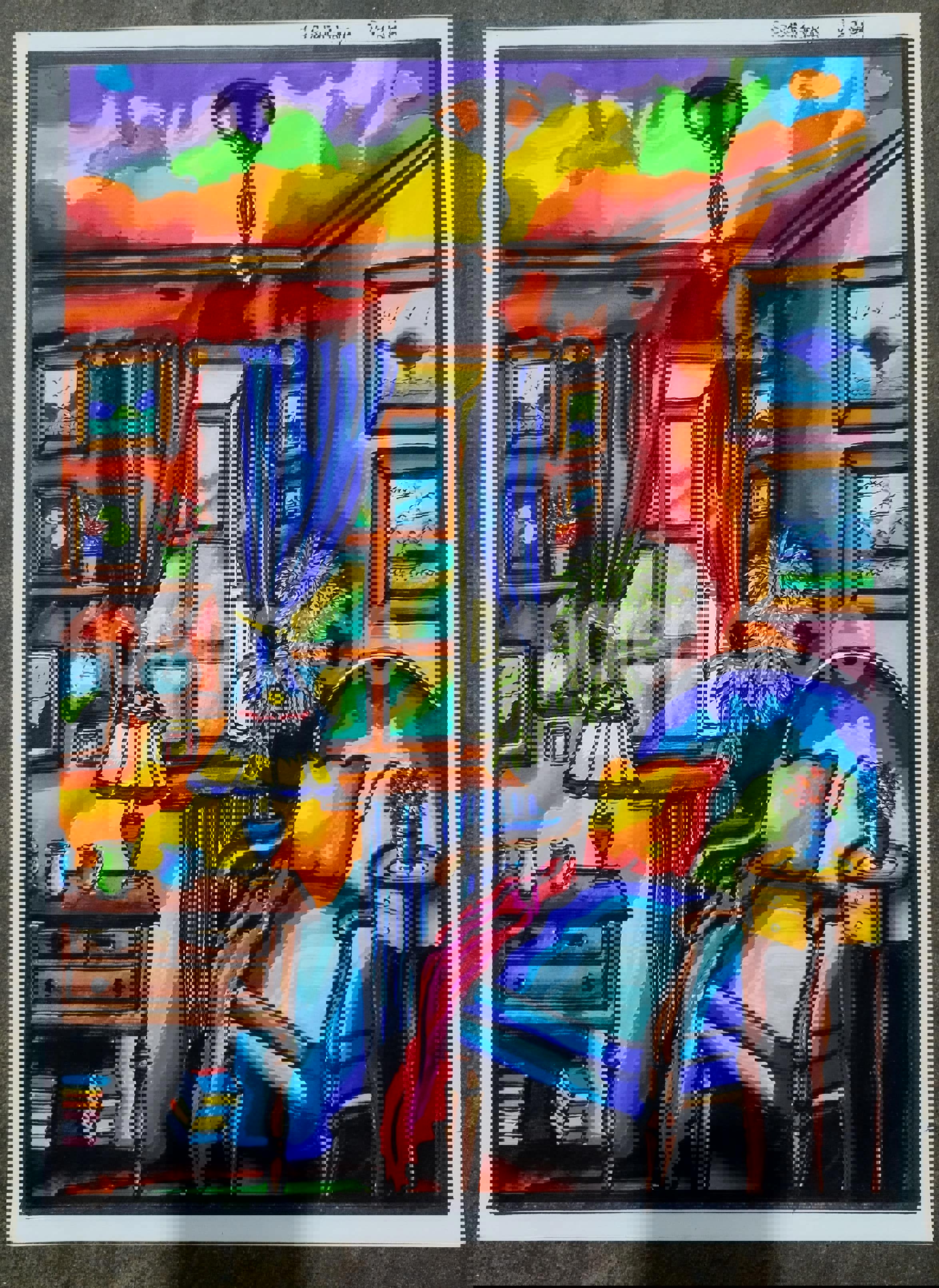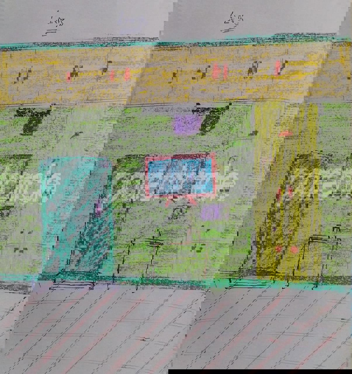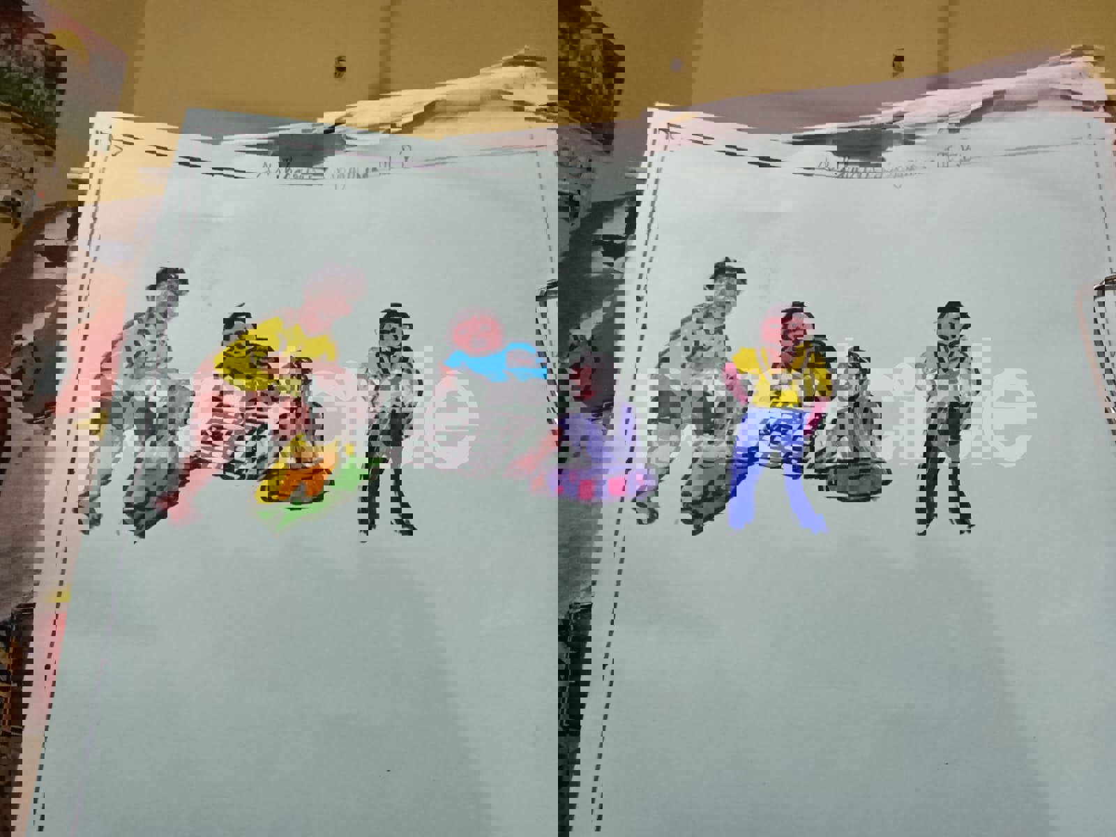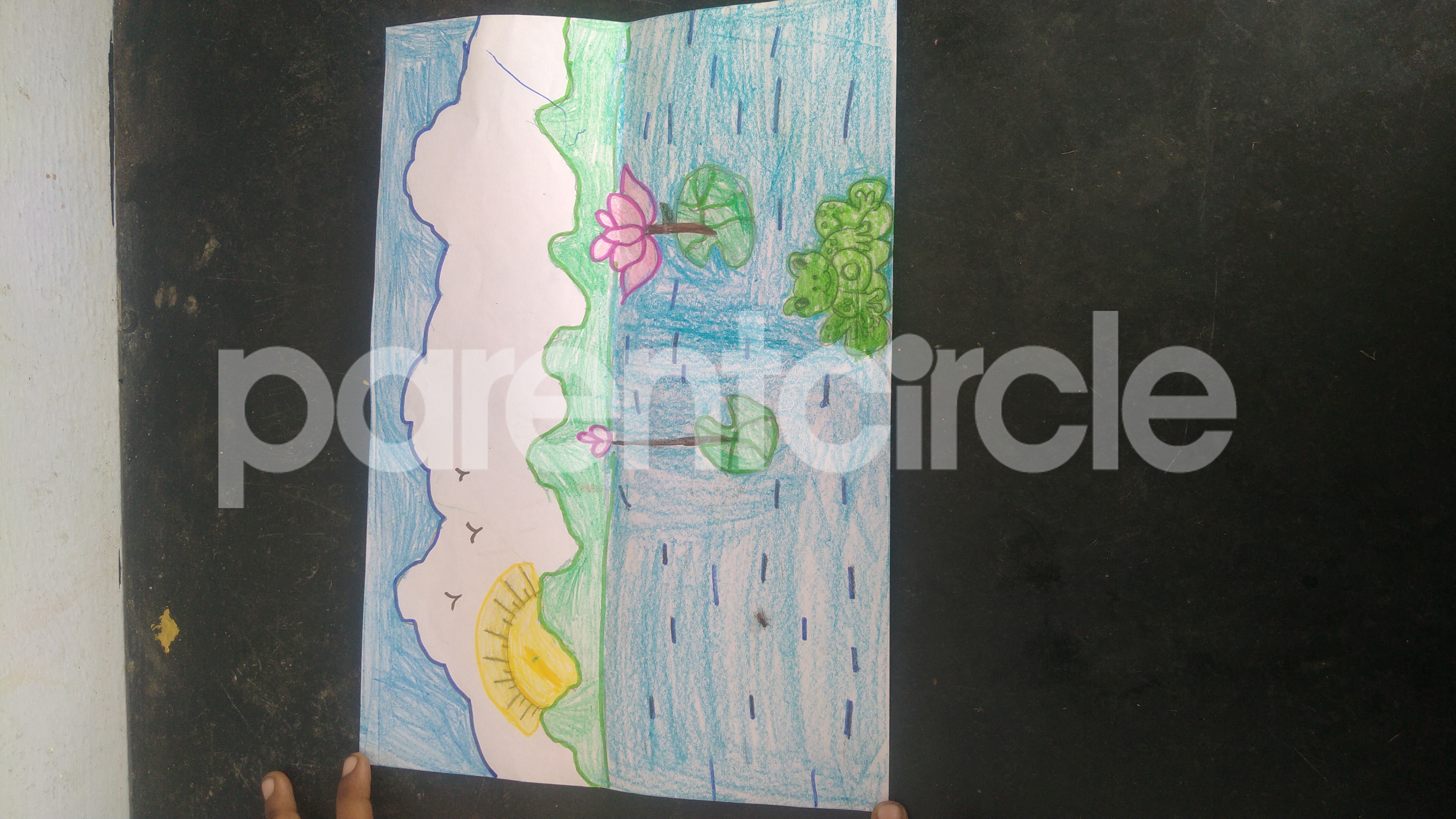 Diya has more than one favourite corner at home. The above drawing shows Study table along with her ART and CRAFT hanging, watching TV by sating on the Couch and finally her small garden in the balcony