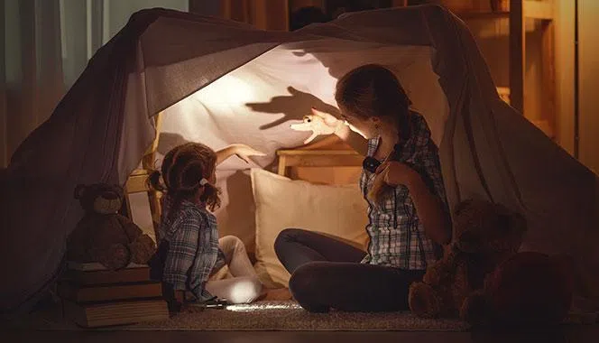 Build a fort: Nothing like a cozy little fort with cardboard boxes, blankets, pillows, cushions, and bed sheets for your little one. Let your child put their favorite soft toys inside the fort and sleep in for the night
