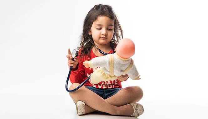 Doctor-Doctor: Hospitals and doctors can be scary for children. Make it fun by playing a role-playing game. You can be the doctor and your child can be the patient. Switch roles. Ask the right questions, and check their temperature and heartbeat! Pretend, enact, and play.