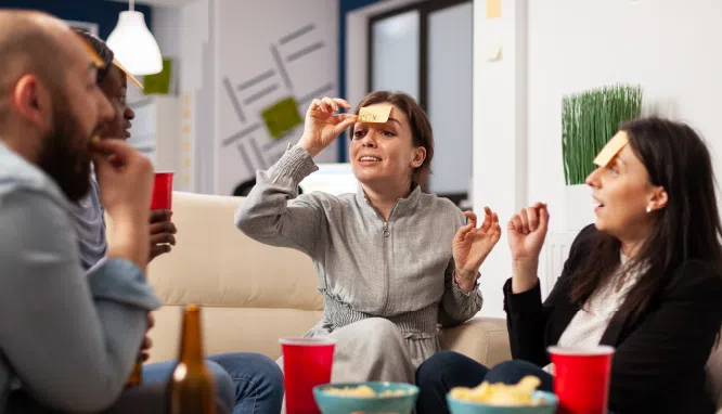 Parties are occasions to have fun. The dress-up game allows your creativity to go crazy. Except for one person who is to be the model, every member finds old clothes, make-up materials, shoes/slippers, and so on. Now, every member dresses the model in what they have. The model can be the judge and declare the winner.