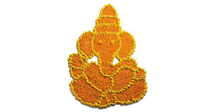 Rangoli is one of the few things that instantly brings a festive mood to any household. Make interesting Ganesh rangoli using flower petals. While you are free to use any flowers of your choice, we personally like the combination of yellow and orange marigolds.