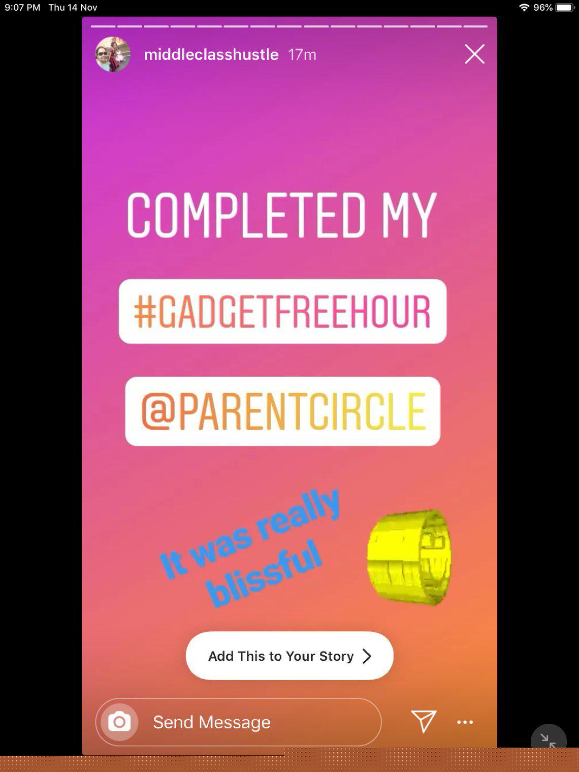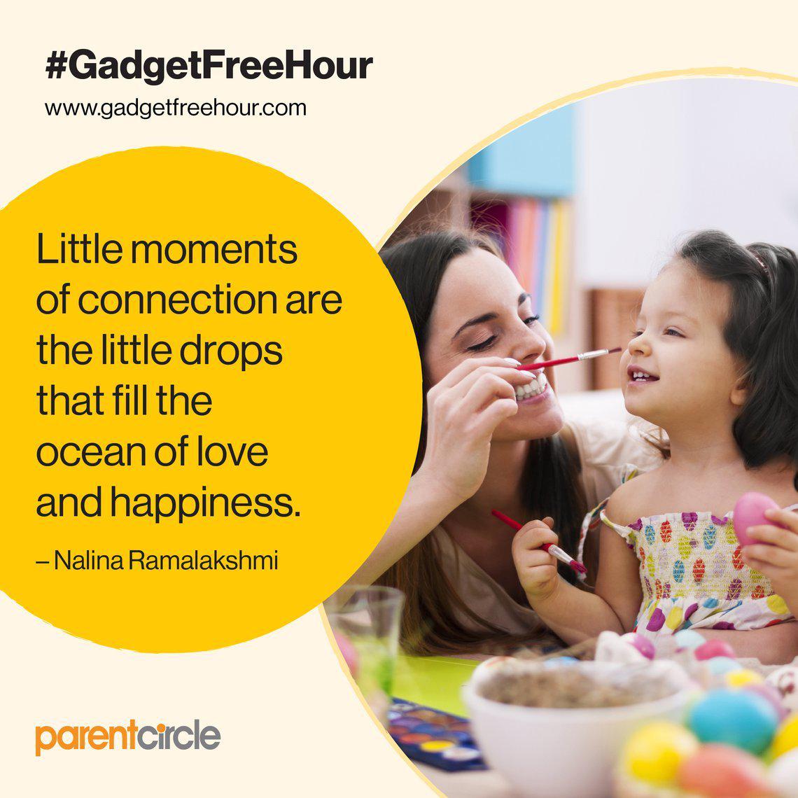 7:30 p.m. - It's time for your #GadgetFreeHour and time for us to log off, with the promise that we will be back at 8.30 pm to hear your great stories about the joy of connection. As promised, ParentCircle is shutting down now and will be back at 8.30 pm to make sure you are enjoying every moment with your children.