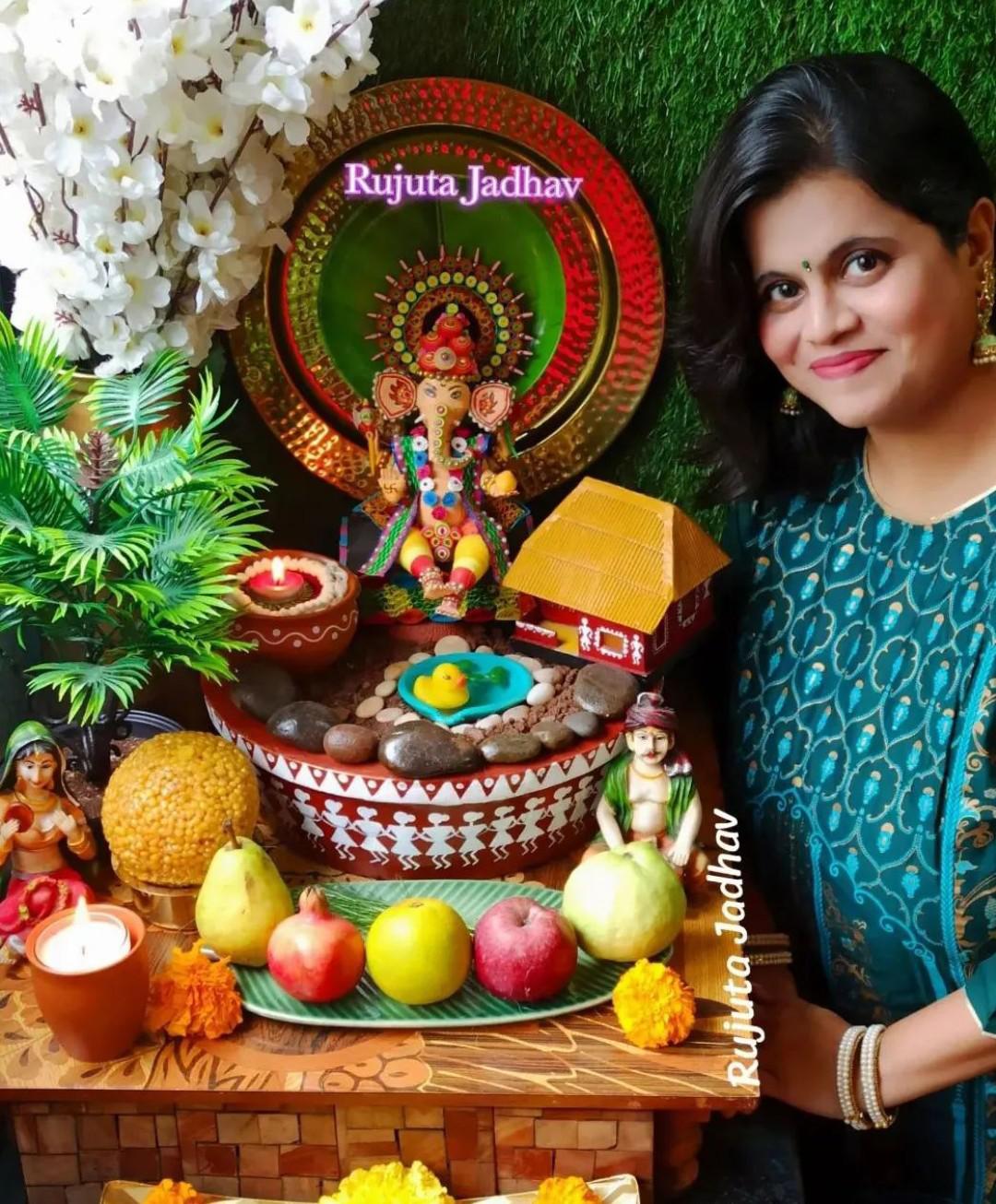 But here's the twist – it's an eco-friendly Ganesha. 🌿 Keeping it green this year! ♻️