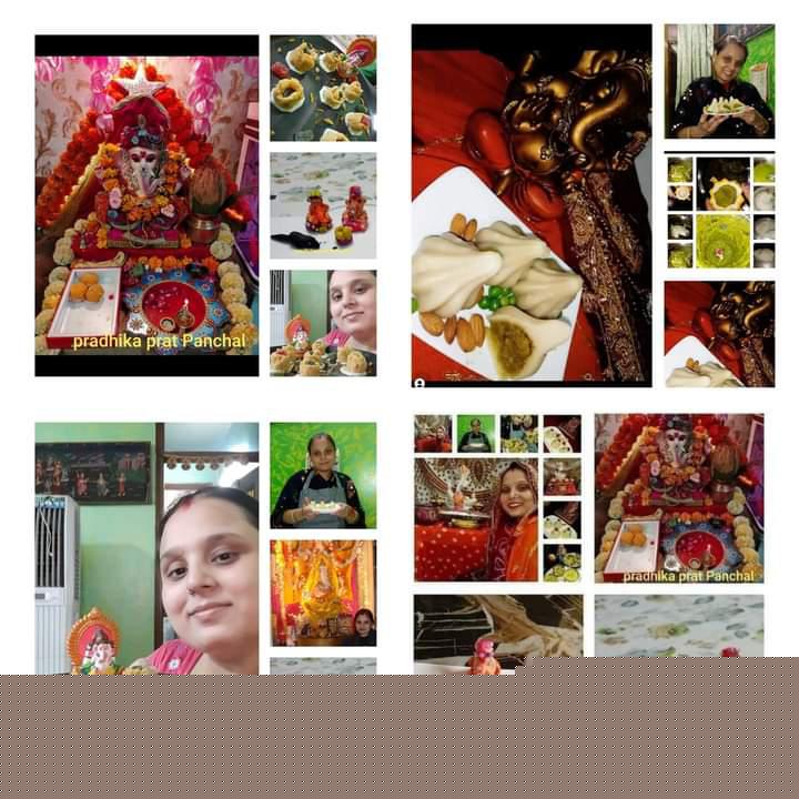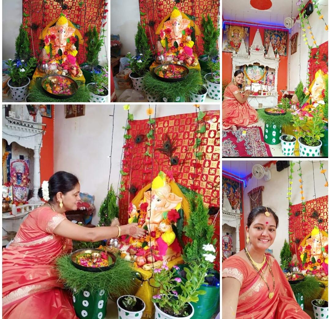In the morning whole family worships together. 10 days we brings lord Ganesh ji home and he become our family . We share all the joys and sorrows with him and in return he too gives us lots of love and blessing.