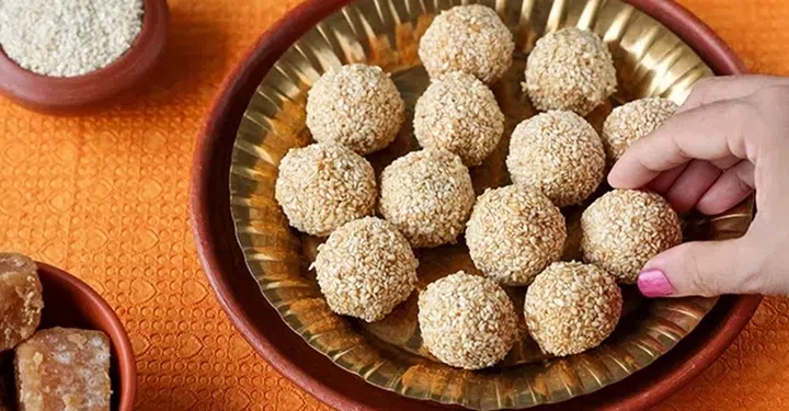 Sesame or 'til' is one of the crops harvested for Pongal, and it is significant for the festival. According to legend, these seeds are symbols of immortality. They are believed to have been created when drops of sweat trickled from Lord Vishnu's sweat and fell to Earth. Traditionally, during the winter months, sweets made of sesame and jaggery are prepared as they have a long shelf life and can be easily stored. These foods also have several health benefits like keeping the body warm, increasing immunity and protecting from illnesses during the winter.