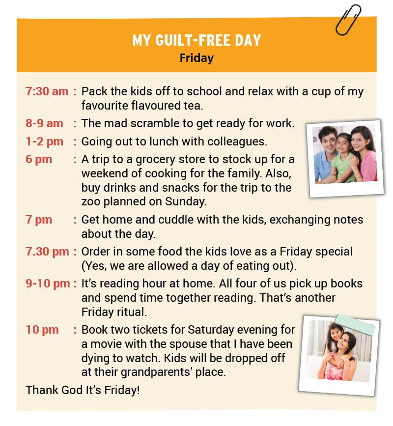 Accept that there will be trade-offs: There are bound to be trade-offs and compromises when you combine motherhood with career. You may not be able to attend the Annual Day event at your child’s school because of work pressures. Talk to your child about it, let her express her disappointment if it makes her feel better. She is more likely to appease your guilt when you share your dilemma. She is then likely to give you a thumbs up. Ask her how you can make it up. Plan together. For instance, you can take her to the zoo on the weekend.