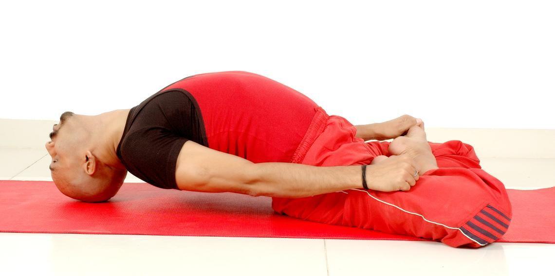 2. Dhanurasana (Bow pose): Lie flat on your abdomen with legs and feet together and the arms on either side of the body. Bend the knees and bring the heels close to the buttocks. Place the chin on the floor and clasp hands around the ankles. Take a deep breath and raise the head and trunk above the ground in order to lift the legs while pulling hands and legs in opposite directions. Support the entire body on the floor. Hold the position for as long as you can. Then relax the leg muscles and slowly lower the legs, chest and head to the start position. Practice this posture at least thrice daily.