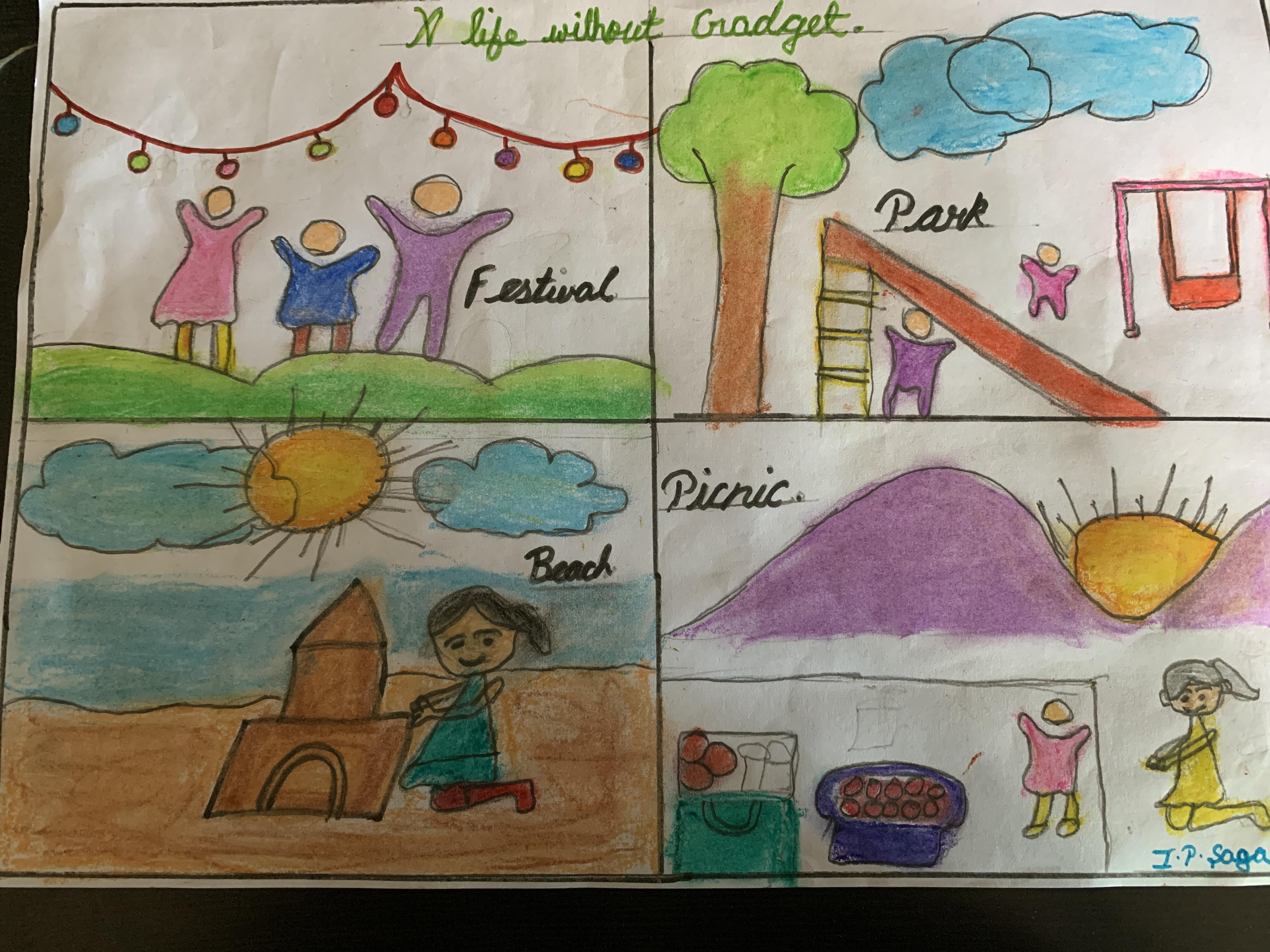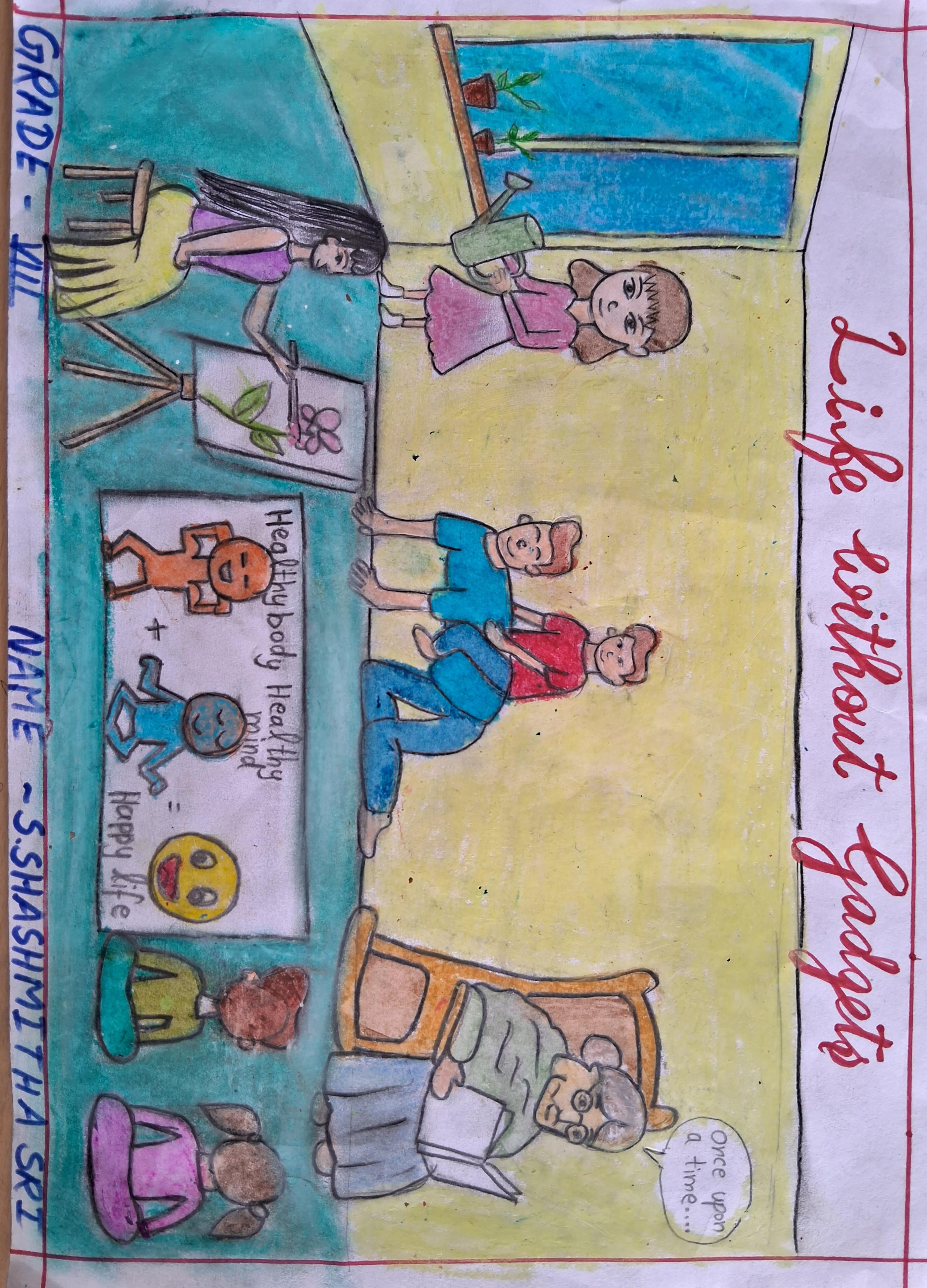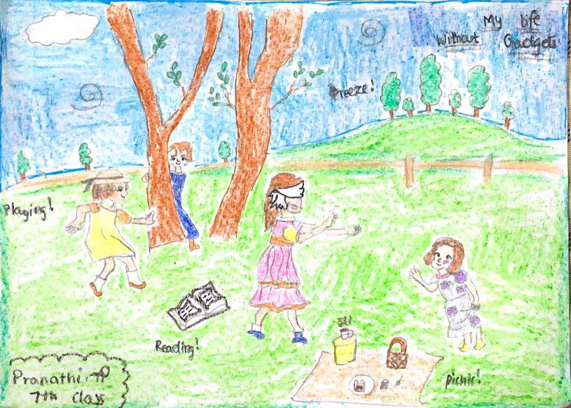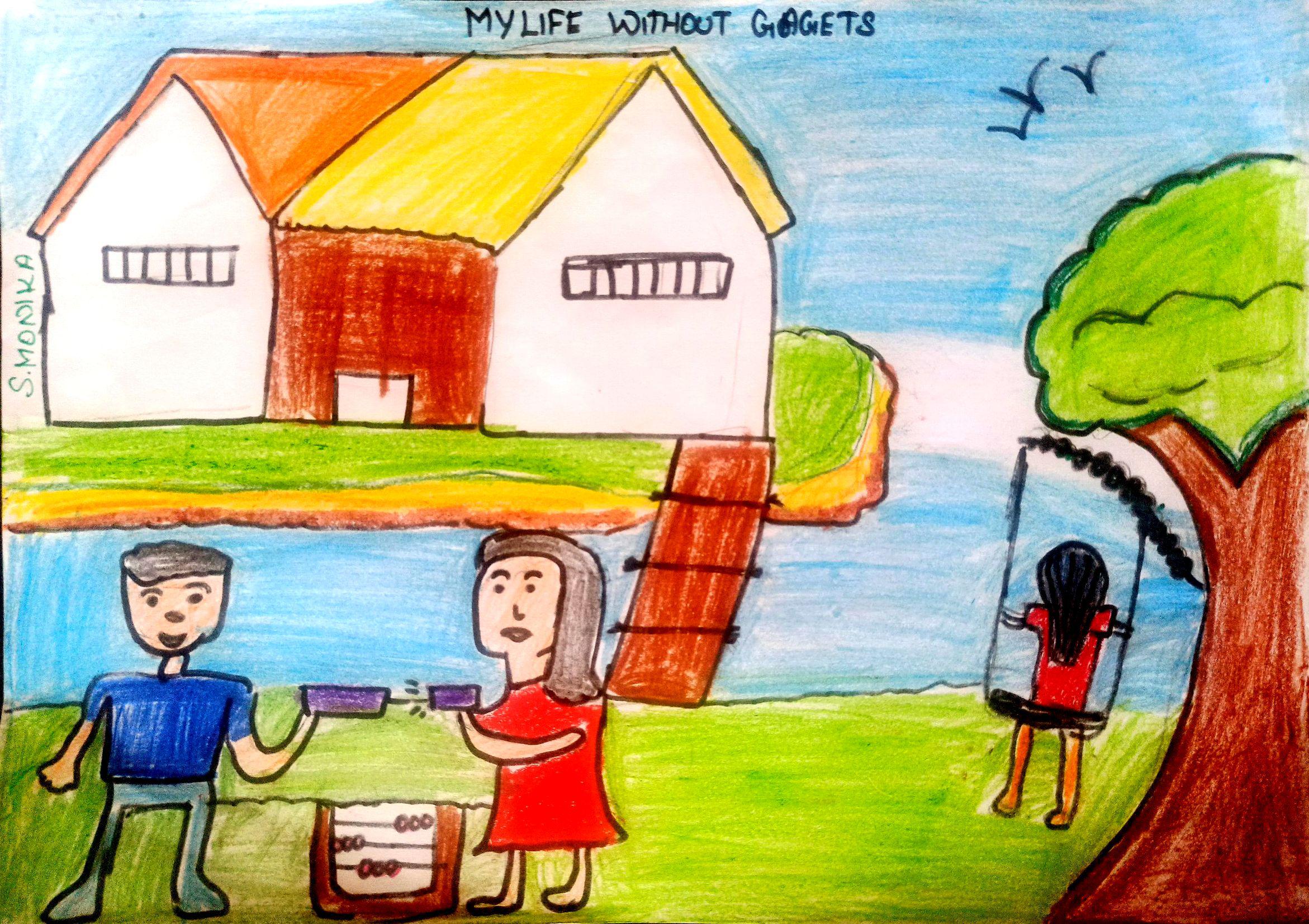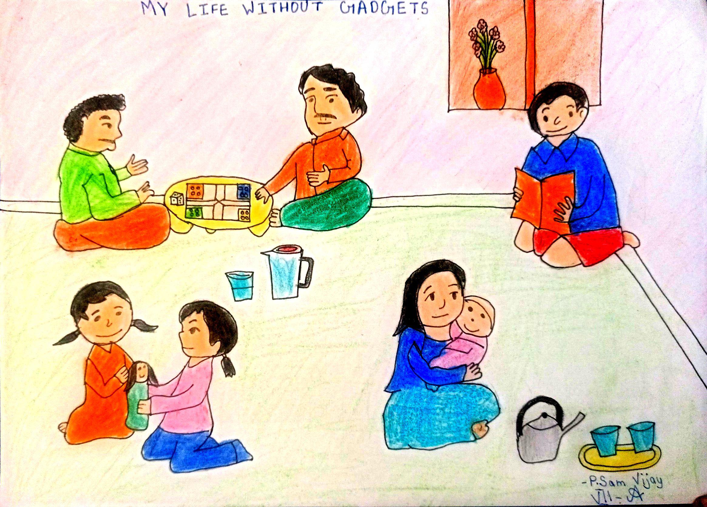 Without screen time, my life is full of happiness, fun moments with the family like you see in my drawing.