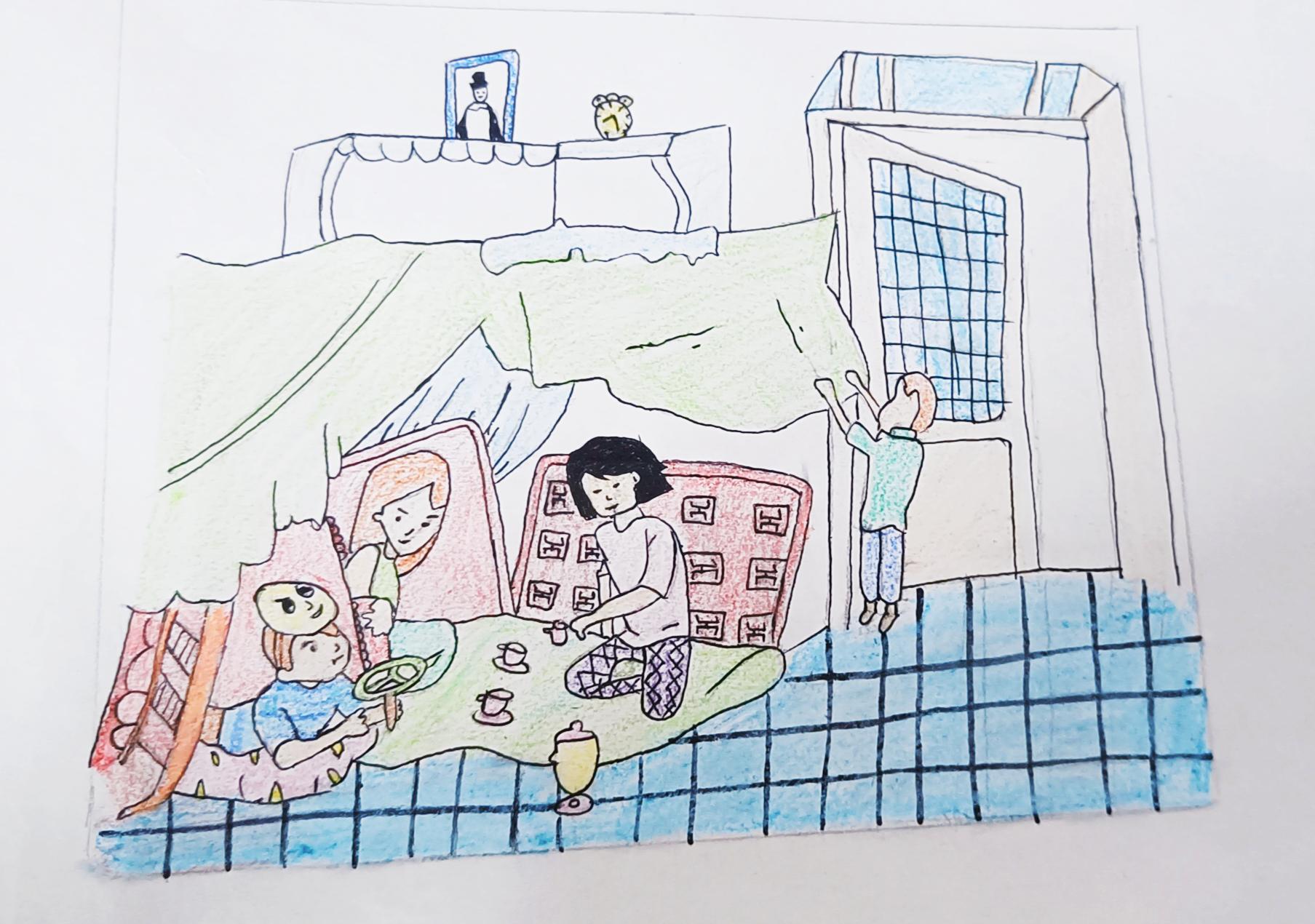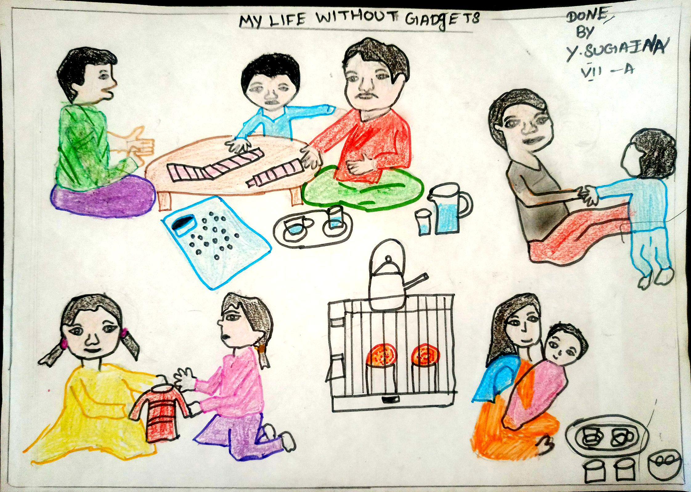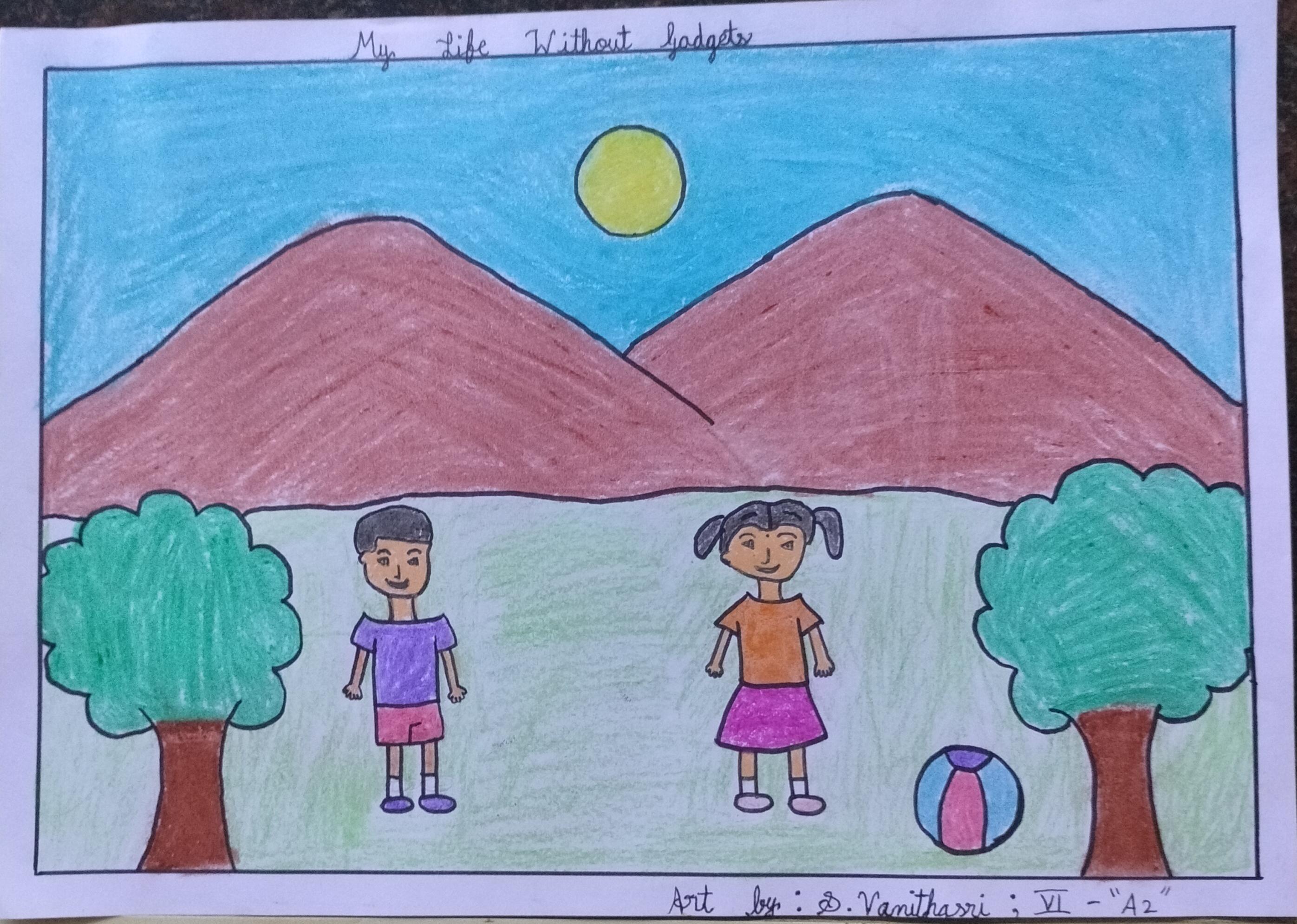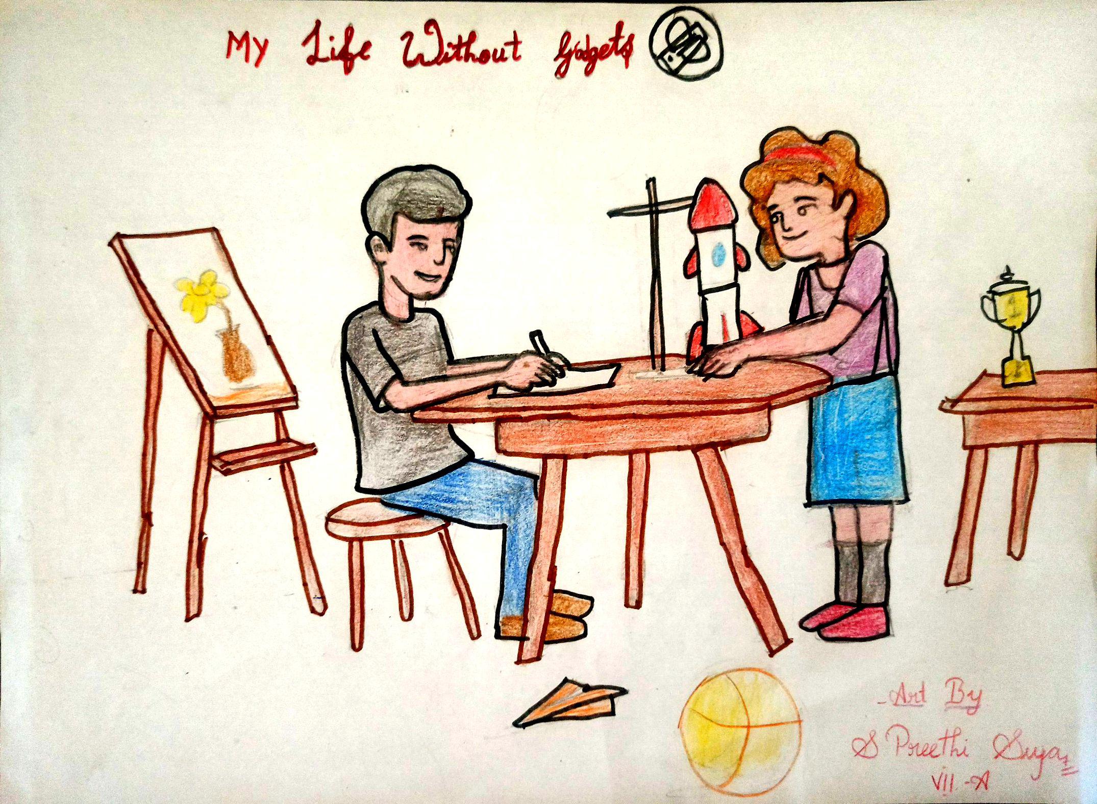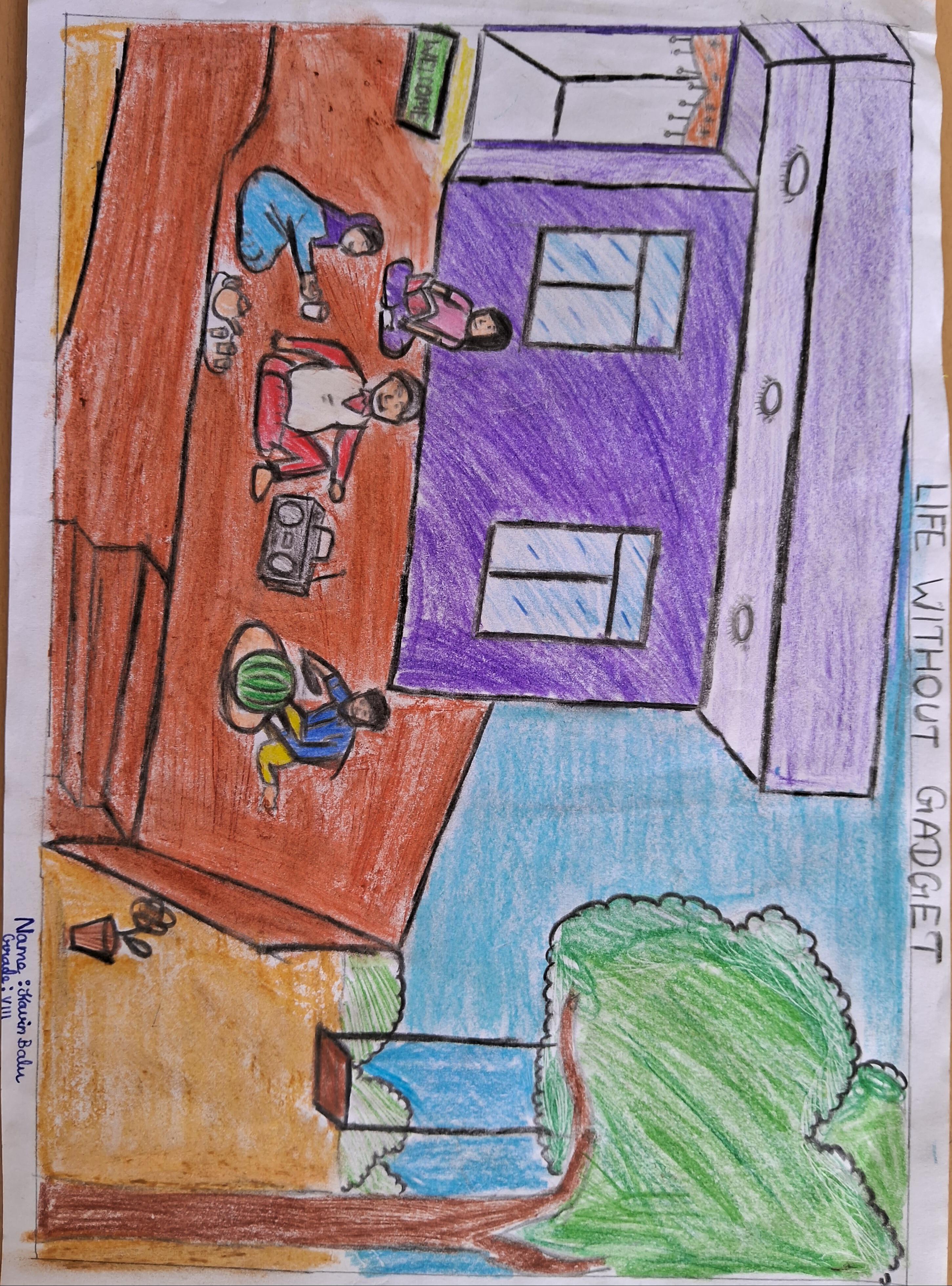Without screen time, my life is full of happiness, fun moments with the family like you see in my drawing.