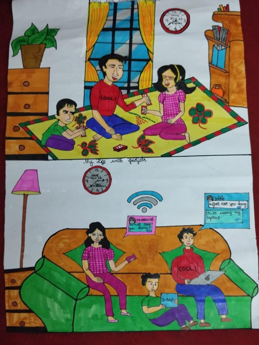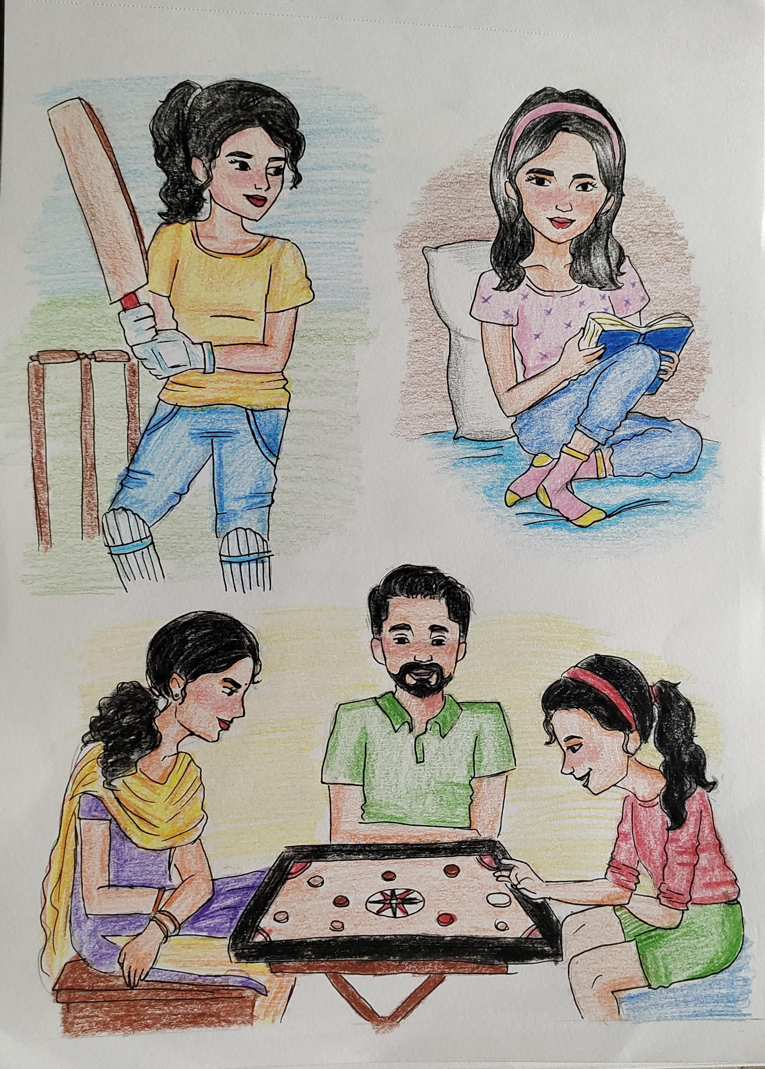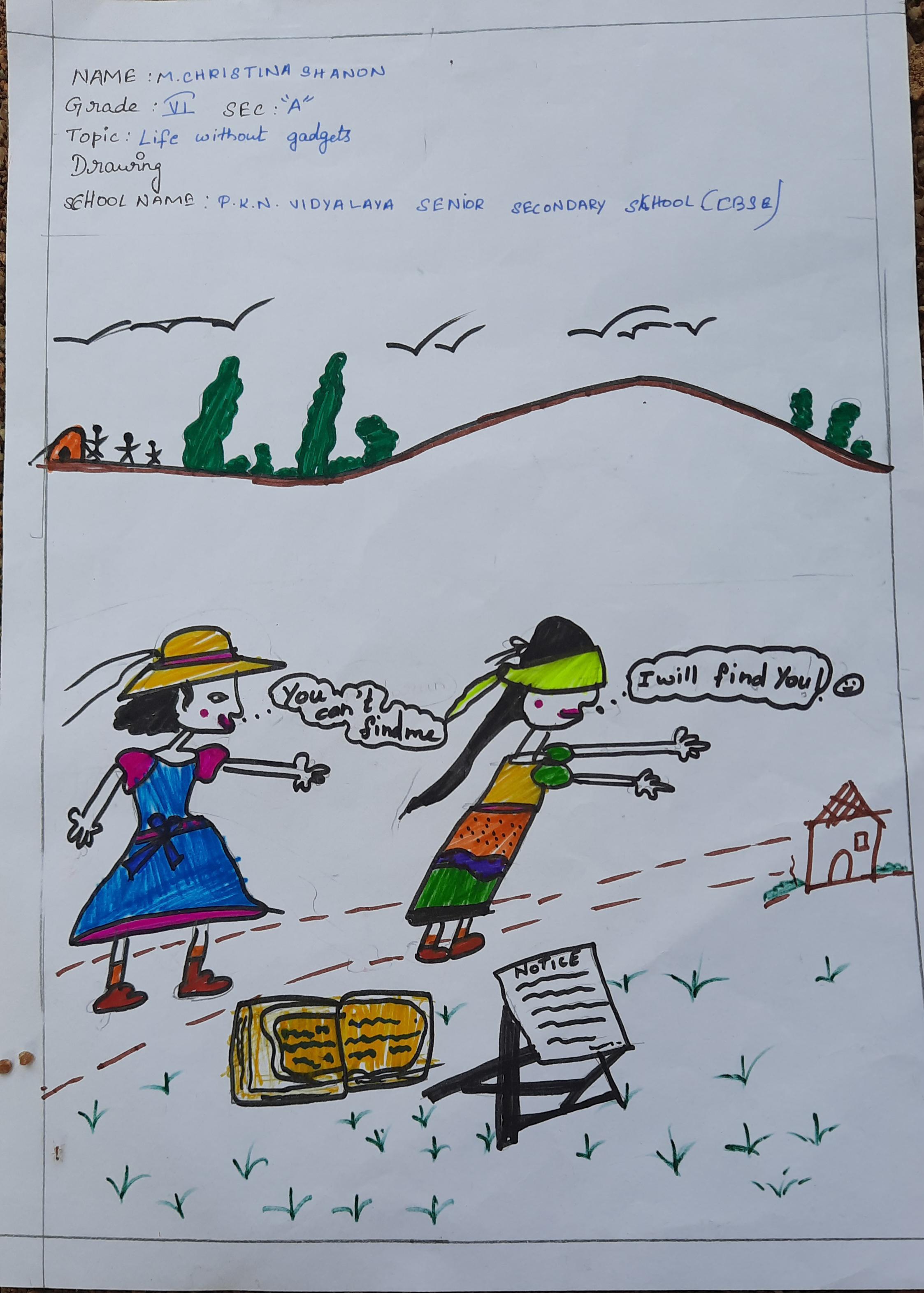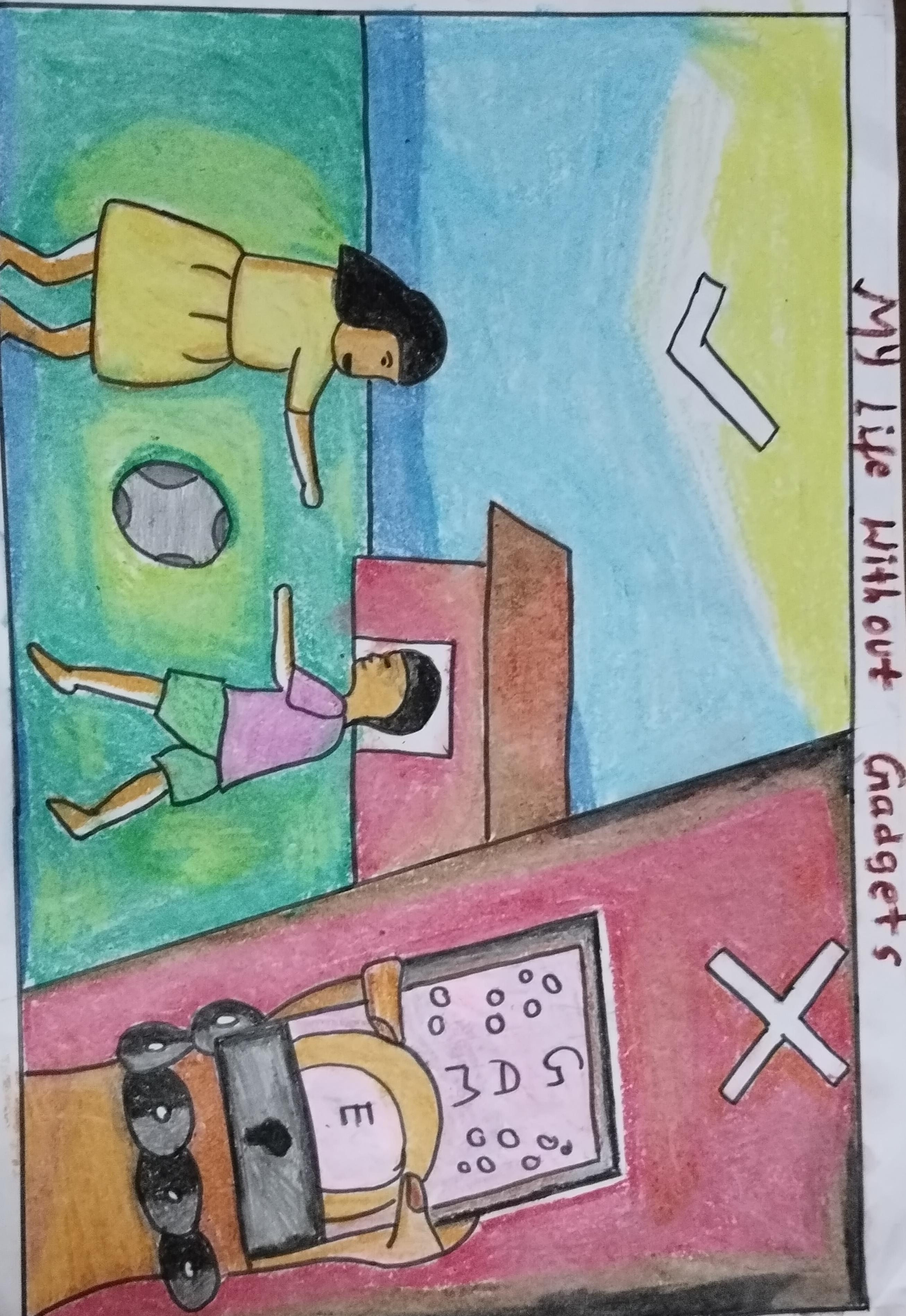 Without screen time, my life is full of happiness, fun moments with the family like you see in my drawing.