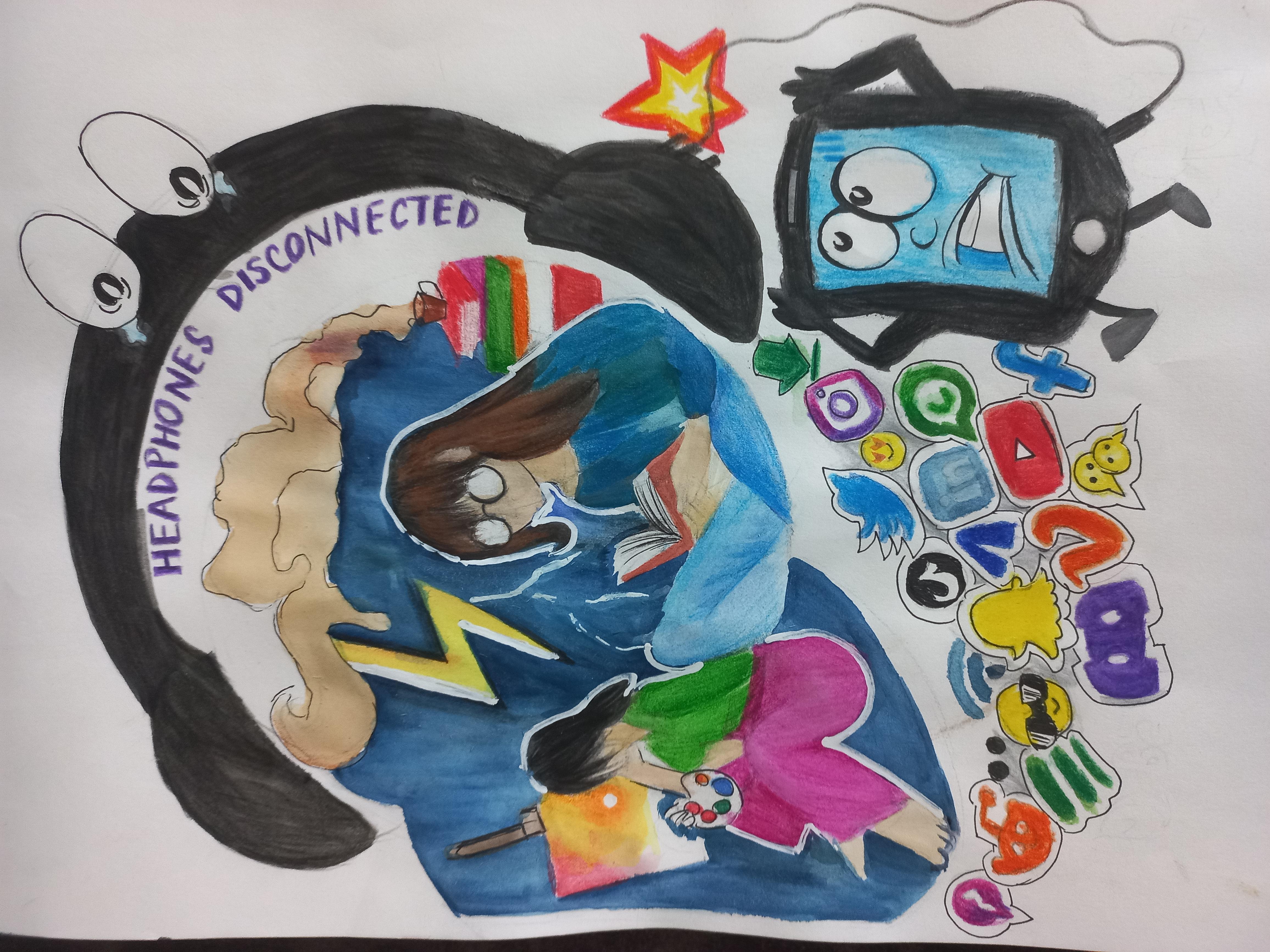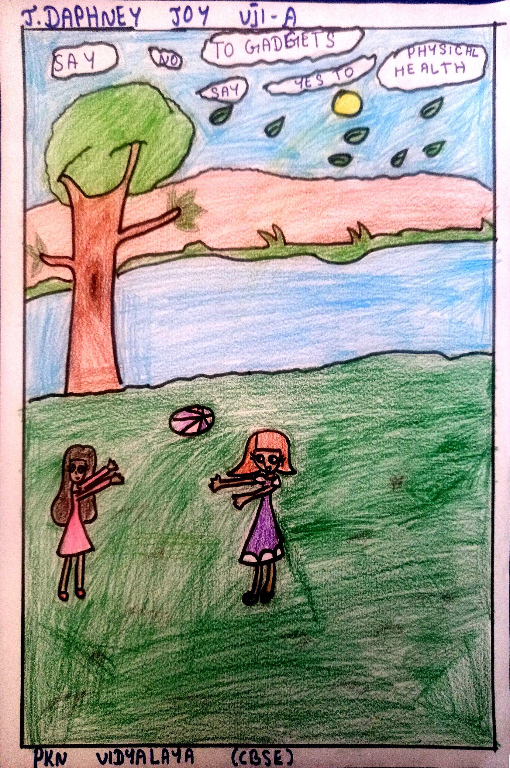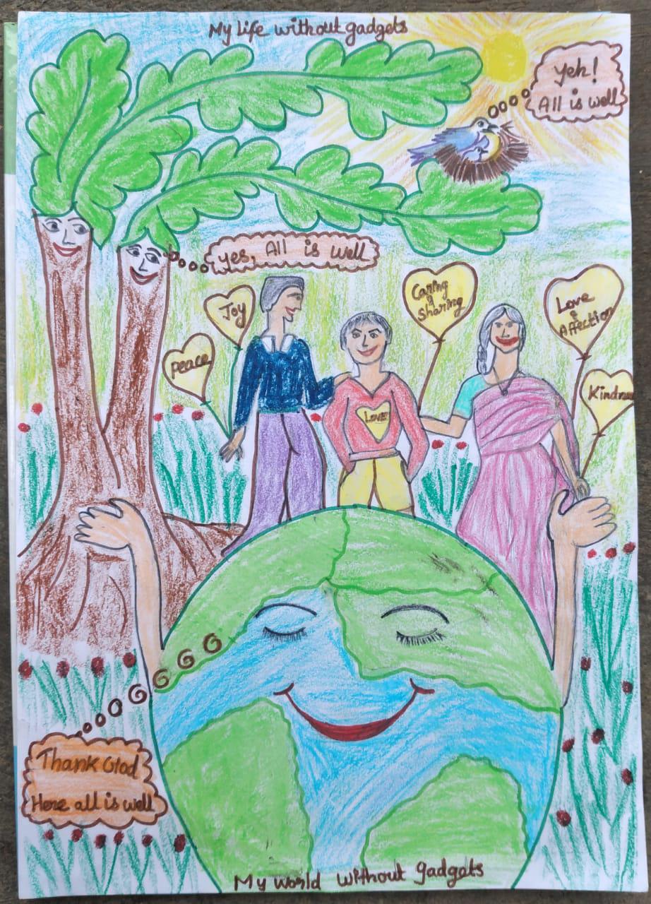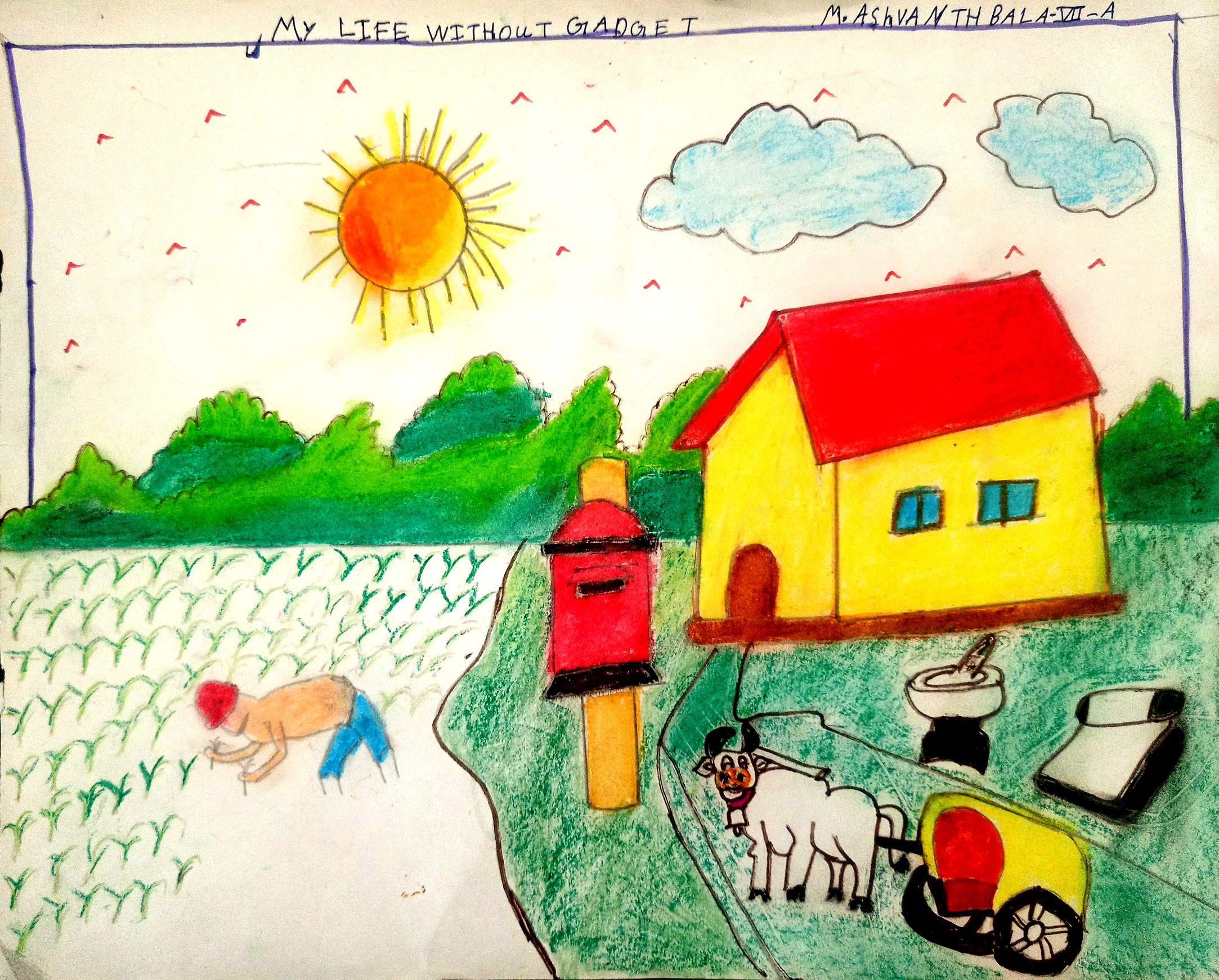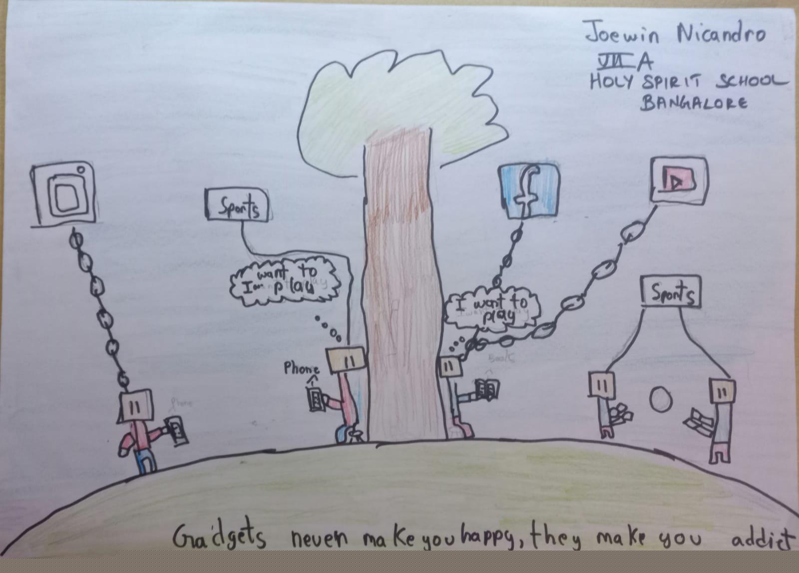 Without screen time, my life is full of happiness, fun moments with the family like you see in my drawing.