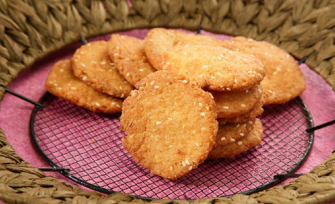 Line up the mathris in rows on a baking tray. Bake in the oven for 15 minutes, until they are golden.