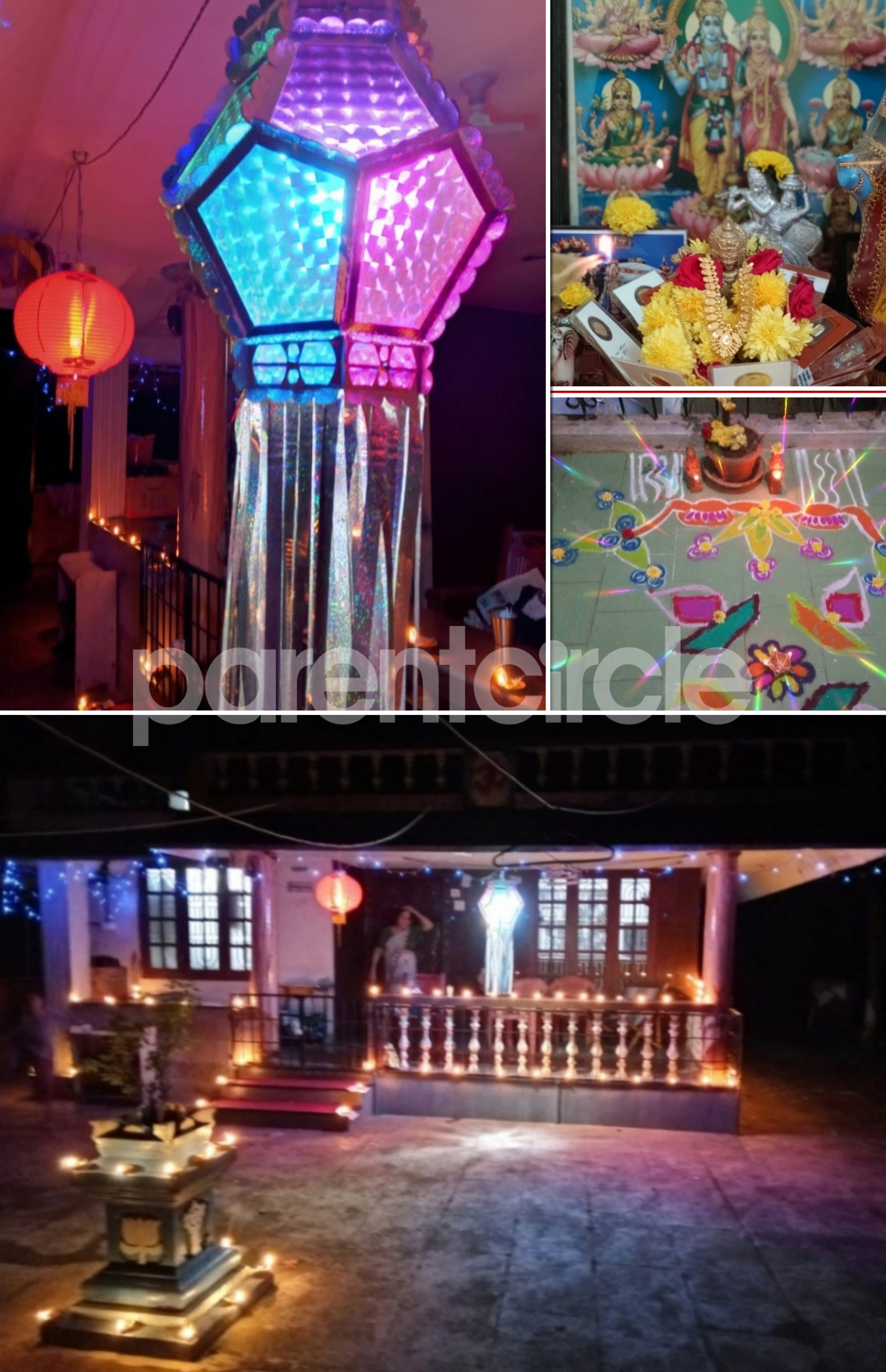 Every Diwali morning begins with the excitement of decorating our home. My daughters and I start by drawing a colorful rangoli at the entrance, filling it with bright powders, flower petals, and even tiny diyas. This tradition began when I was a child, watching my mother carefully craft intricate designs outside our old house. Carrying it forward, I let my children add their playful touch — sometimes imperfect, but always full of joy. As evening falls, we light rows of clay diyas across the balcony, windows, and garden, turning the house into a glowing jewel. My husband loves hanging lanterns, while my mother-in-law arranges flowers near the puja altar. What makes this ritual special is the way each of us adds a little bit of ourselves, turning simple decorations into memories that shine brighter than the lamps.