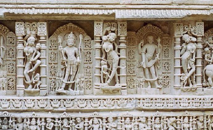 These Intricately carved walls are part of Rani Ki Vav Located on the banks of the river Saraswati, Rani Ki Vav is one of the best examples of the long tradition of step wells of ancient India. (Image on top) Built over seven levels in the form of an inverted temple, the structure was not only employed to reserve water but also to underscore the sanctity of the resource. Intricately carved religious, mythological and secular sculptures adorn every surface of the well. It was added to the UNESCO World Heritage Sites list in 2014.