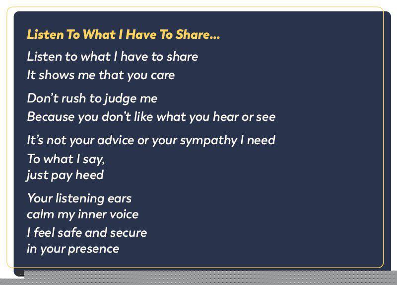 6. Lend your listening earsYour child may be experiencing some difficult emotions. She may be upset or disappointed or frustrated over something that happened either in school, at home, or with friends. During such times, she needs someone she can turn to who will understand and empathize with her, someone who will soothe her and help her calm down. It’s a moment to connect.